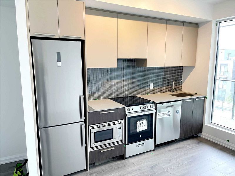 Welcome to 4208 dundas street west, suite 322. This well-designed one-bedroom unit features smooth 9-foot ceilings, large windows, laminate flooring, mirrored closets, and a modern kitchen with stainless steel appliances, quartz countertops, and ceramic backsplash. Enjoy a private walk-out balcony with north-facing city views, a bedroom with sliding doors, and a 4-piece bath.. Building amenities include concierge, fitness centre, party and lounge spaces, outdoor terrace with bbqs, and visitor/bike parking. Steps to humber river trails, close to shopping, dining, royal york station, and just 15 minutes to downtown toronto.
