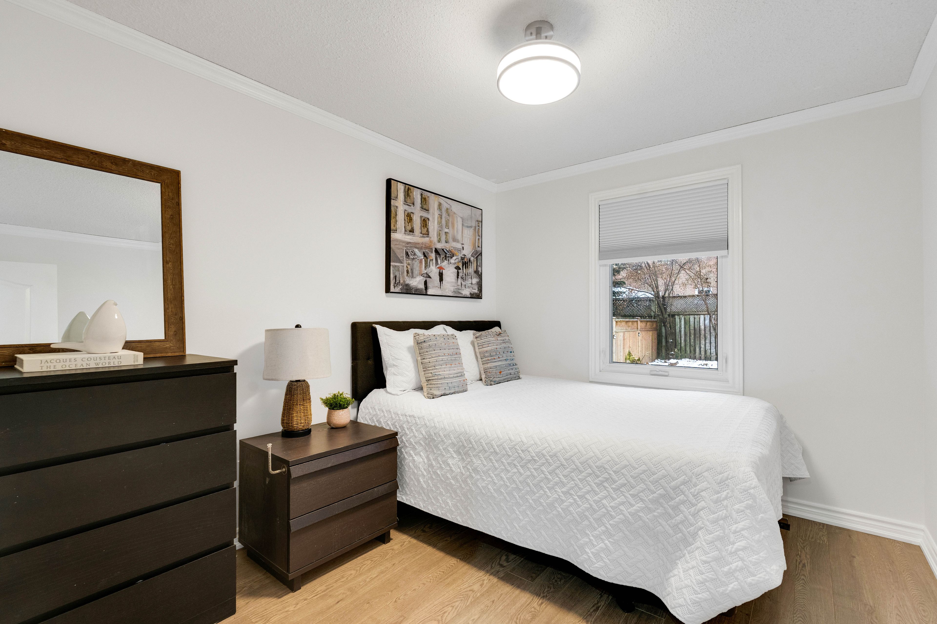 Welcome to 4208 stonemason crescent, an exceptional opportunity to own a beautifully updated and affordably priced home in the heart of erin mills' prestigious sawmill valley community. This charming 3-bedroom, 2-bath residence offers a perfect balance of comfort, style, and thoughtfully executed modern upgrades. Step inside to a bright, open-concept living space enhanced by designer paint tones, contemporary flooring, and expansive windows that flood the home with natural light. The renovated gourmet kitchen is both stylish and functional, featuring granite countertops, stone backsplash, pot lighting, and ample cabinetry-ideal for everyday living and effortless entertaining. The versatile layout includes a main-floor bedroom, perfect for guests, in-laws, or a home office, while two generously sized upper-level bedrooms provide private and comfortable family retreats. Both updated bathrooms showcase elegant granite finishes and refined detailing. The professionally finished basement adds valuable living space, offering a warm and inviting recreation room complete with a wood-burning fireplace-perfect for cozy evenings, movie nights, or relaxing after a long day. Step outside to your private backyard oasis, featuring a large deck, perennial gardens, and plenty of space for outdoor dining, play, or quiet relaxation. Located on a quiet, family-friendly street just steps from walking trails, parks, and conservation areas, this home combines natural surroundings with everyday convenience. Situated in an excellent school district and minutes from transit, major highways, credit valley hospital, shopping, and amenities, this is truly a turnkey home in one of mississauga's most sought-after neighbourhoods. Simply move in and enjoy.