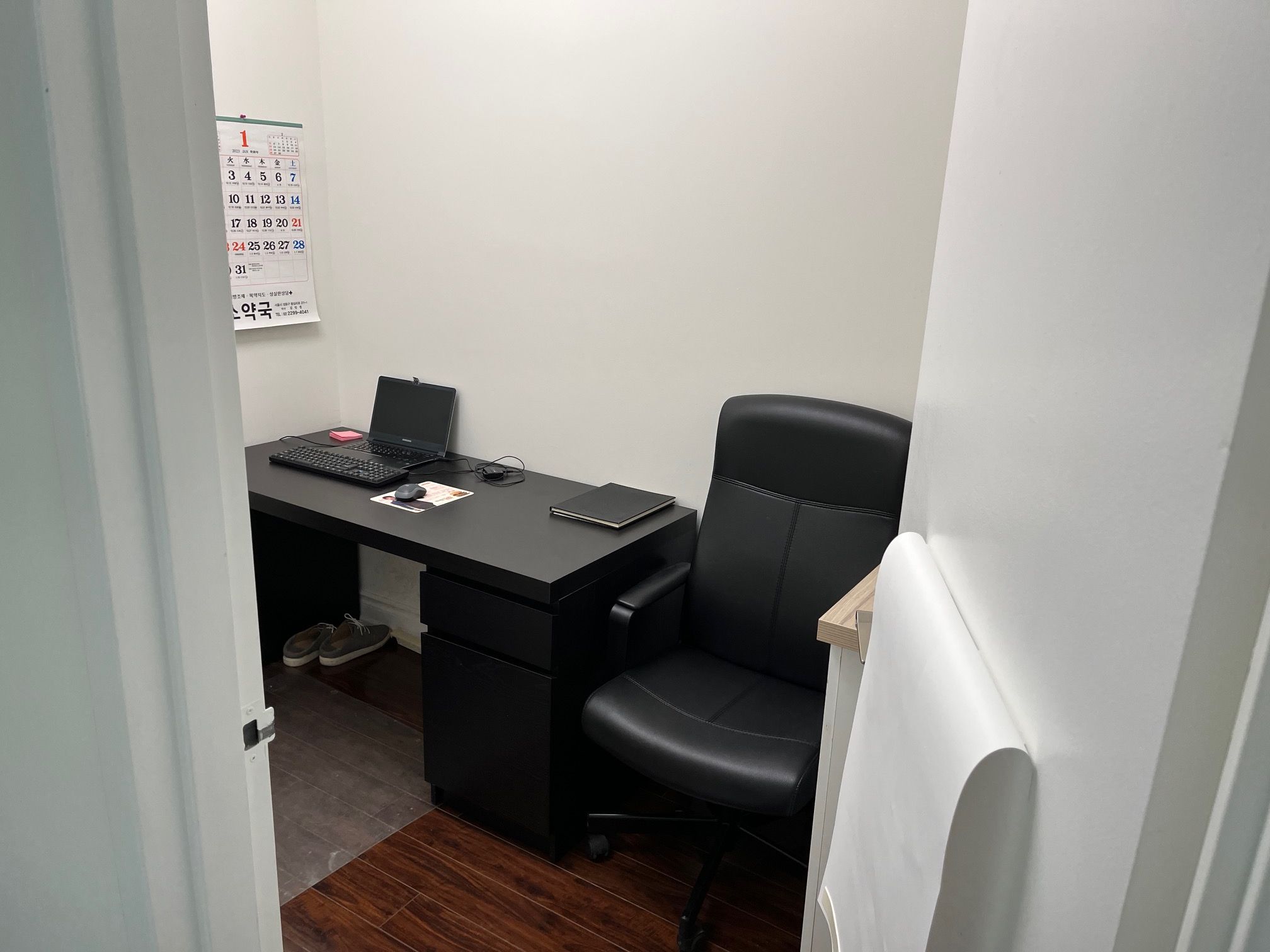 • Bright windows provide ample natural light for a welcoming workspace.