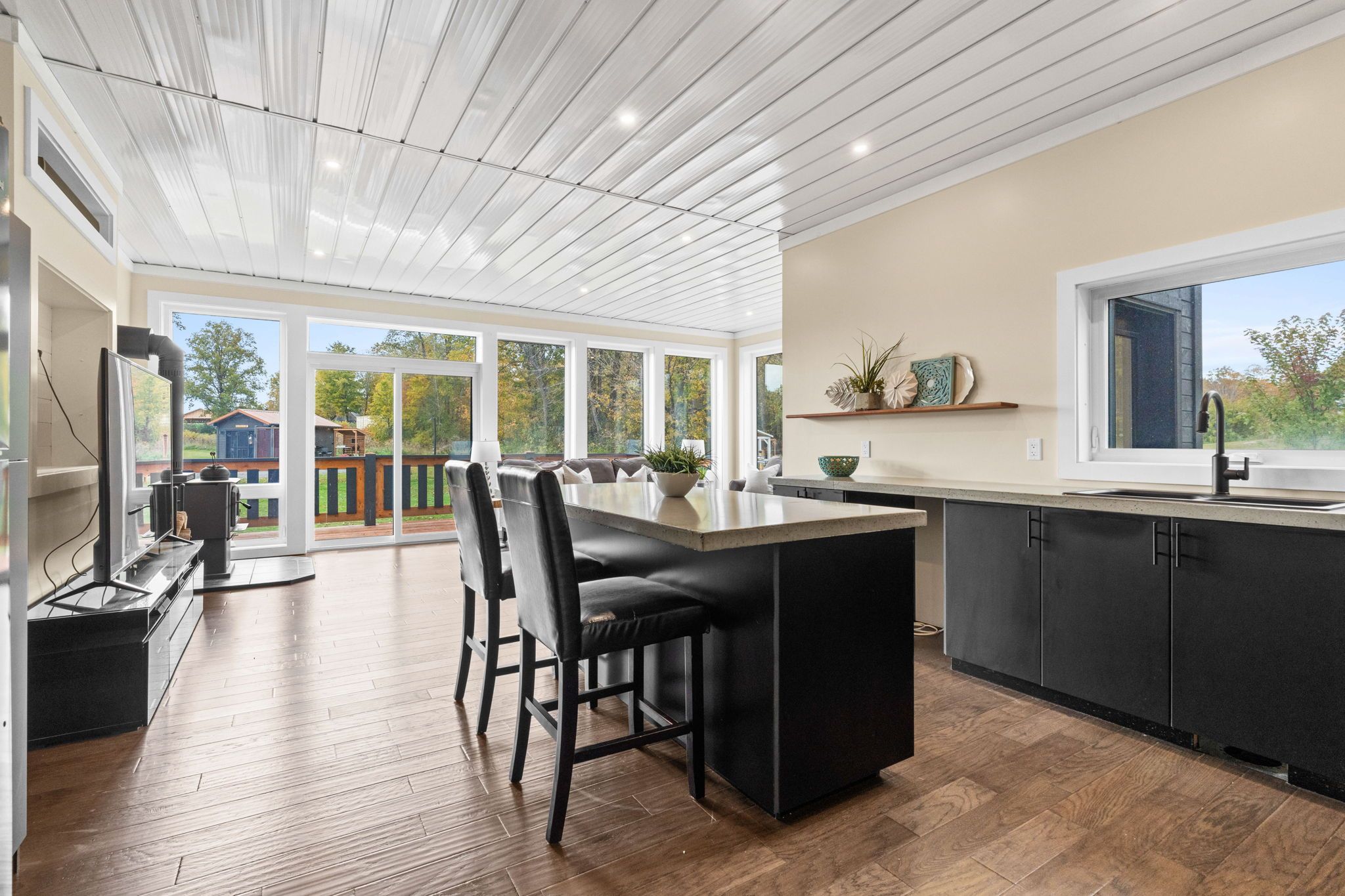 Partially zoned tourist commercial, this unique 2-acre property in tay valley township offers a rare opportunity for entrepreneurs or investors looking to capitalize on the area's growing tourism market. With approximately 1. 1 acres commercially zoned and 0. 9 acres residential, the property allows for a wide variety of potential uses while still offering the comfort of a beautiful owner-occupied home. Ideally located between perth and westport and directly across from the pike lake boat launch, the location provides easy access to boating, fishing and year-round outdoor recreation that continues to attract visitors to the region. Currently operating as a successful airbnb glamping retreat, the property includes a custom-built home (2020) along with two fully serviced bunkies with hydro, wi-fi and wood stoves, multiple additional outbuildings, an oversized garage and thoughtfully designed outdoor spaces. Guest-focused amenities include a hot tub, sauna, heated outdoor shower and outdoor gathering areas that create a true retreat-style atmosphere. While the existing bunkie rental business is well established, the tourist commercial zoning provides flexibility for many other potential ventures. Future owners may wish to continue or expand the short-term rental concept, or explore opportunities such as a wellness retreat, boutique hospitality business, workshop or event space, outdoor recreation base, creative studio, or other tourism-focused enterprises suited to this sought-after area. A versatile property with established infrastructure, mixed zoning and exceptional lifestyle appeal, offering both business potential and residential enjoyment in one beautiful setting.