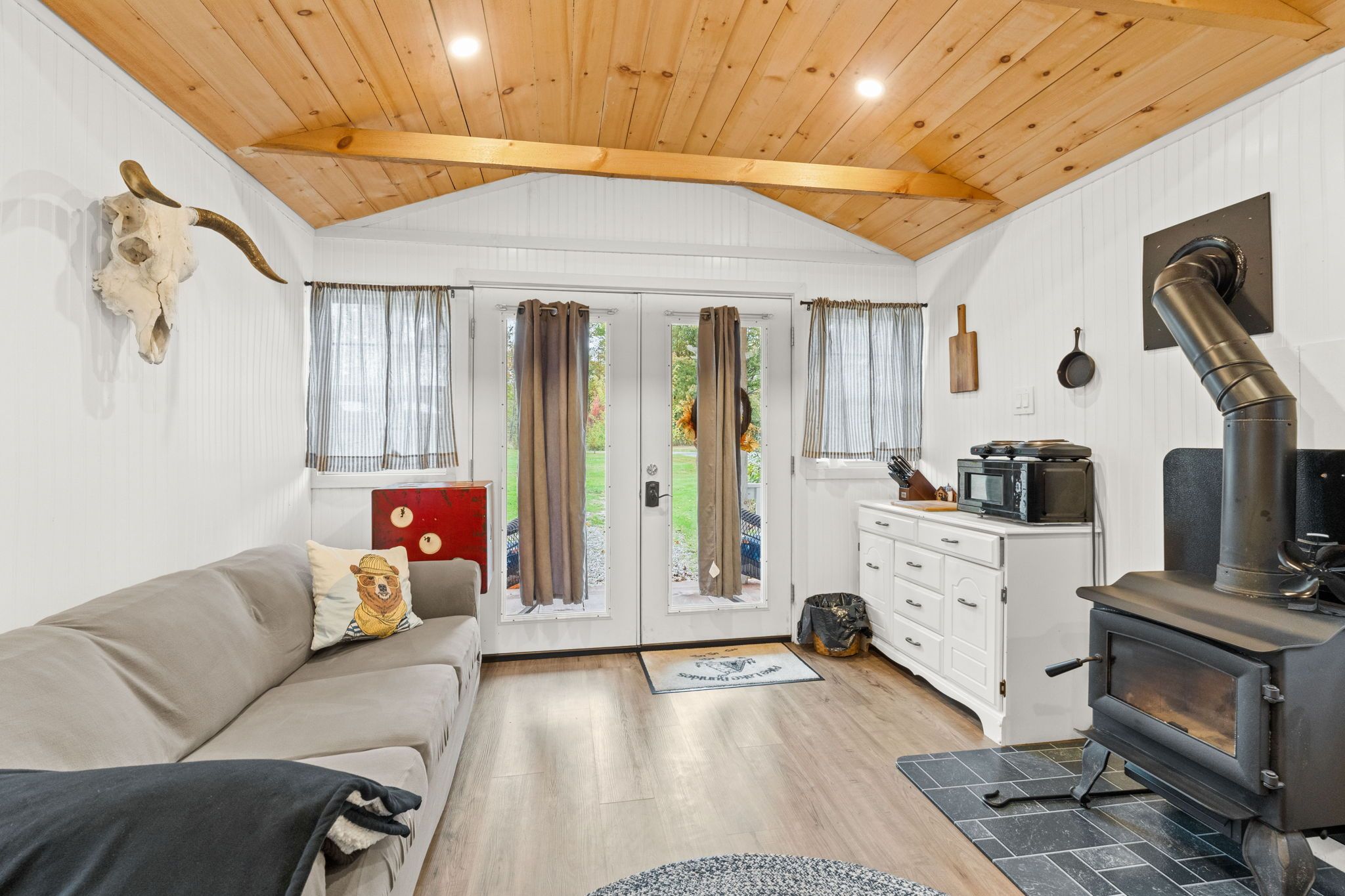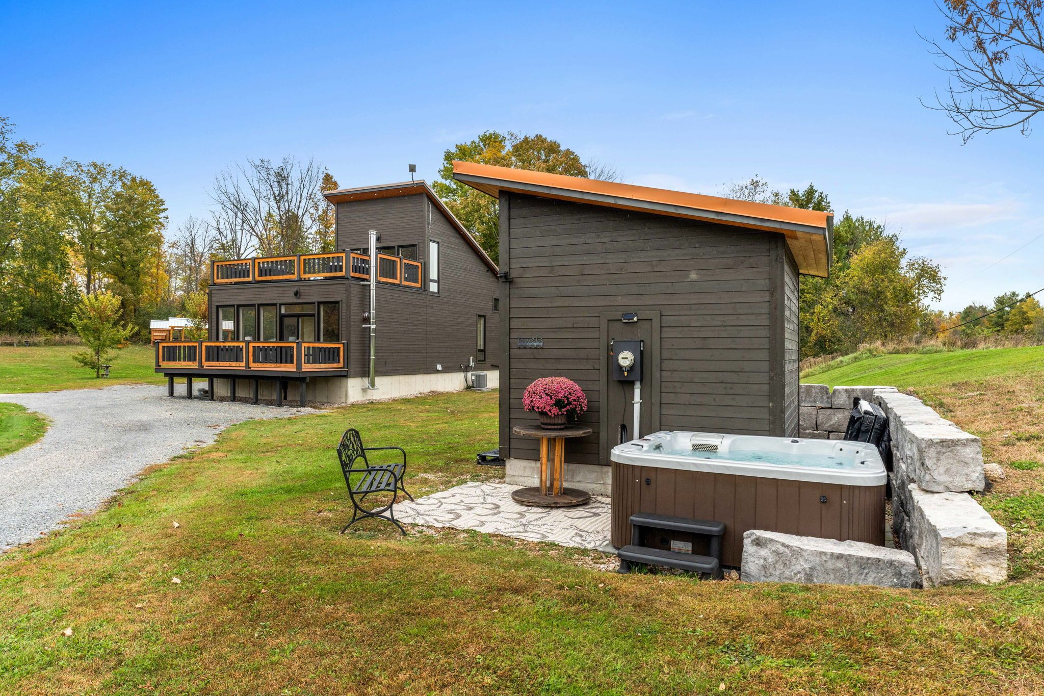 • Includes a custom-built home and two serviced bunkies with guest amenities.