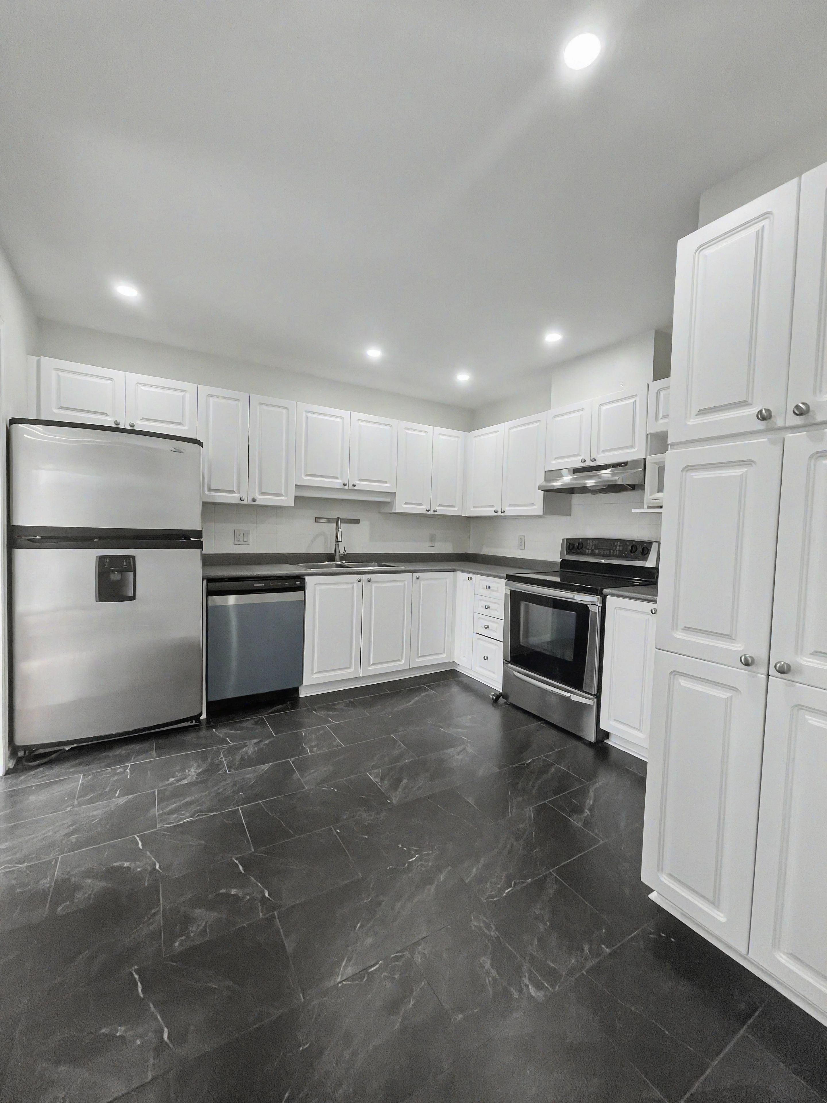 • Modern kitchen features stainless steel appliances and refreshed cabinetry.