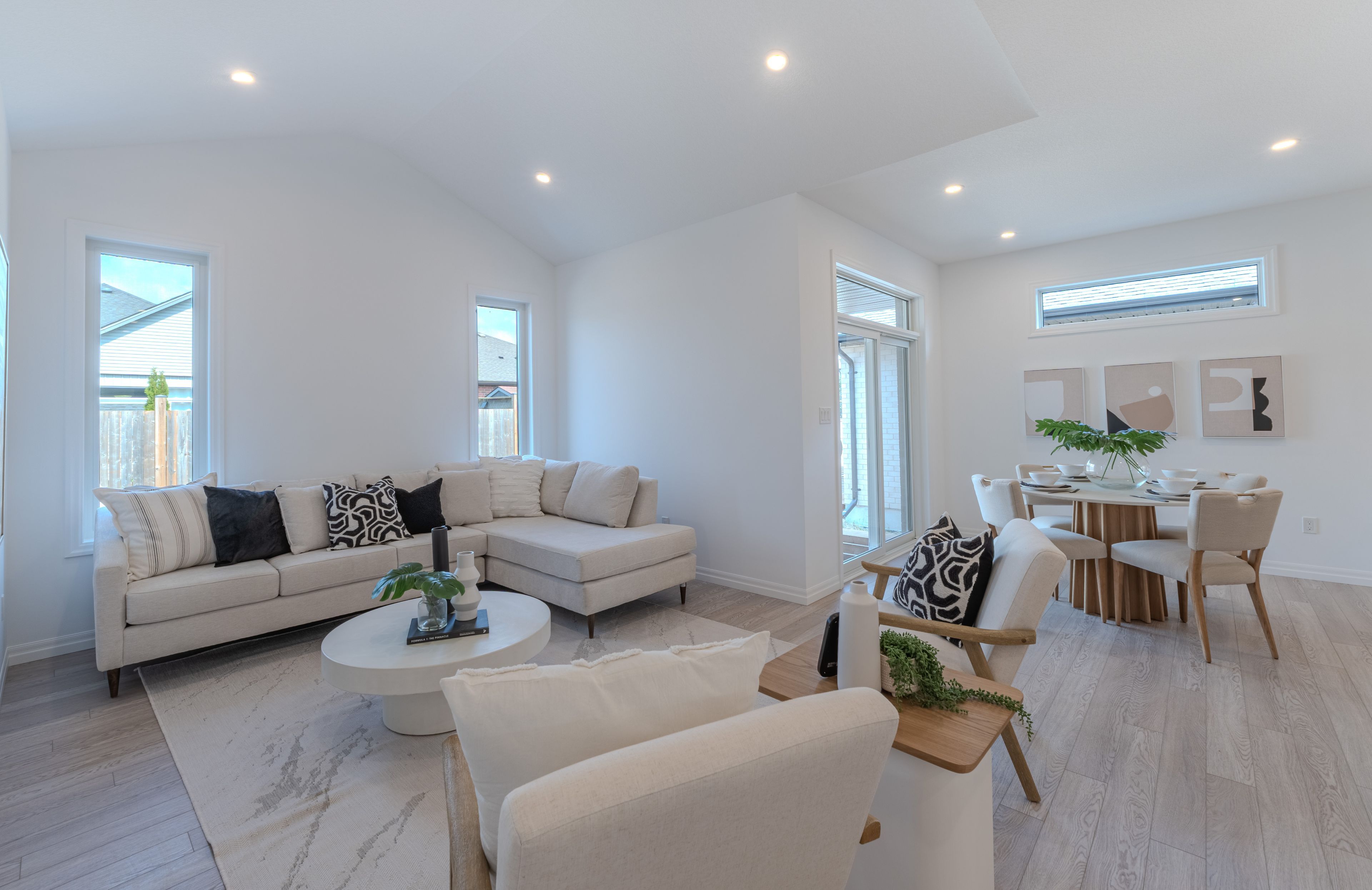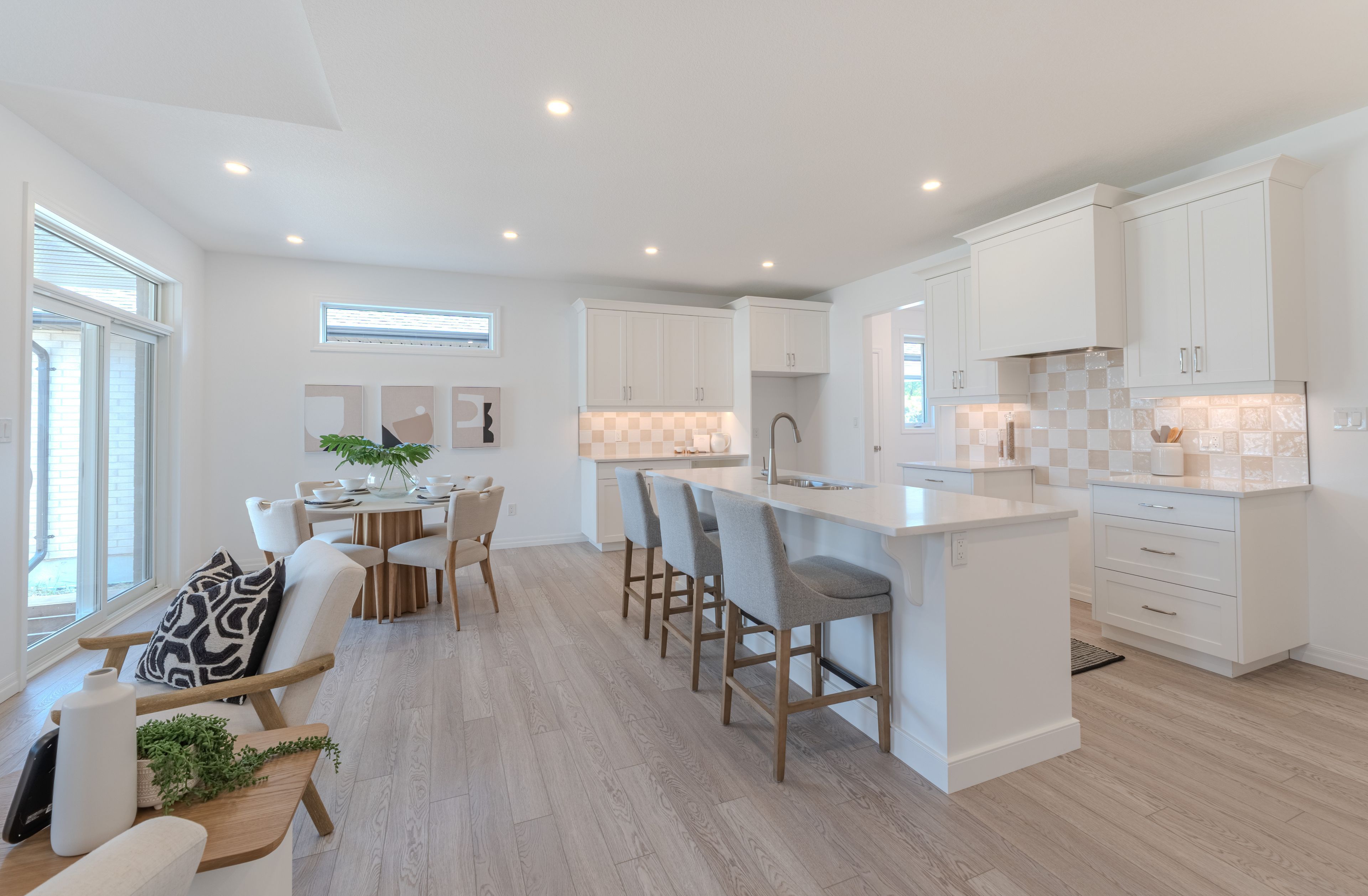 Move-in ready, the kempston bungalow crafted by hayhoe homes offers stylish single-level living with 2 bedrooms, a main floor office, and 2 bathrooms, including a private 3-piece ensuite in the primary bedroom. The open-concept layout features a designer kitchen with quartz countertops, island, tile backsplash, and pantry, flowing into a spacious great room with cathedral ceilings, and dining area with patio doors leading to the rear deck. The unfinished basement offers excellent development potential for a future family room, additional bedrooms, and bathroom. Additional highlights include 9' main floor ceilings, luxury vinyl plank flooring (as per plan), convenient main floor laundry, bbq gas line, double garage, and numerous upgrades throughout. Located in the desirable lynhurst heights community with easy access to london, highways, and just minutes from parks, grocery stores, and restaurants. Taxes to be assessed.