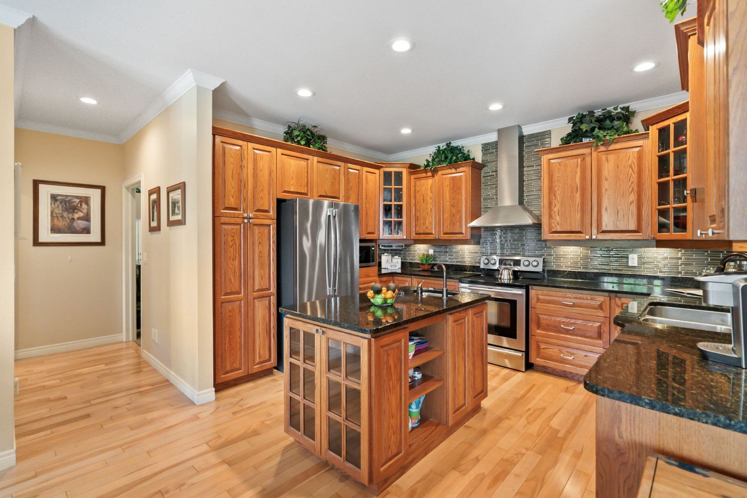 • Chef's kitchen with stainless steel appliances and granite countertop for culinary enthusiasts.
