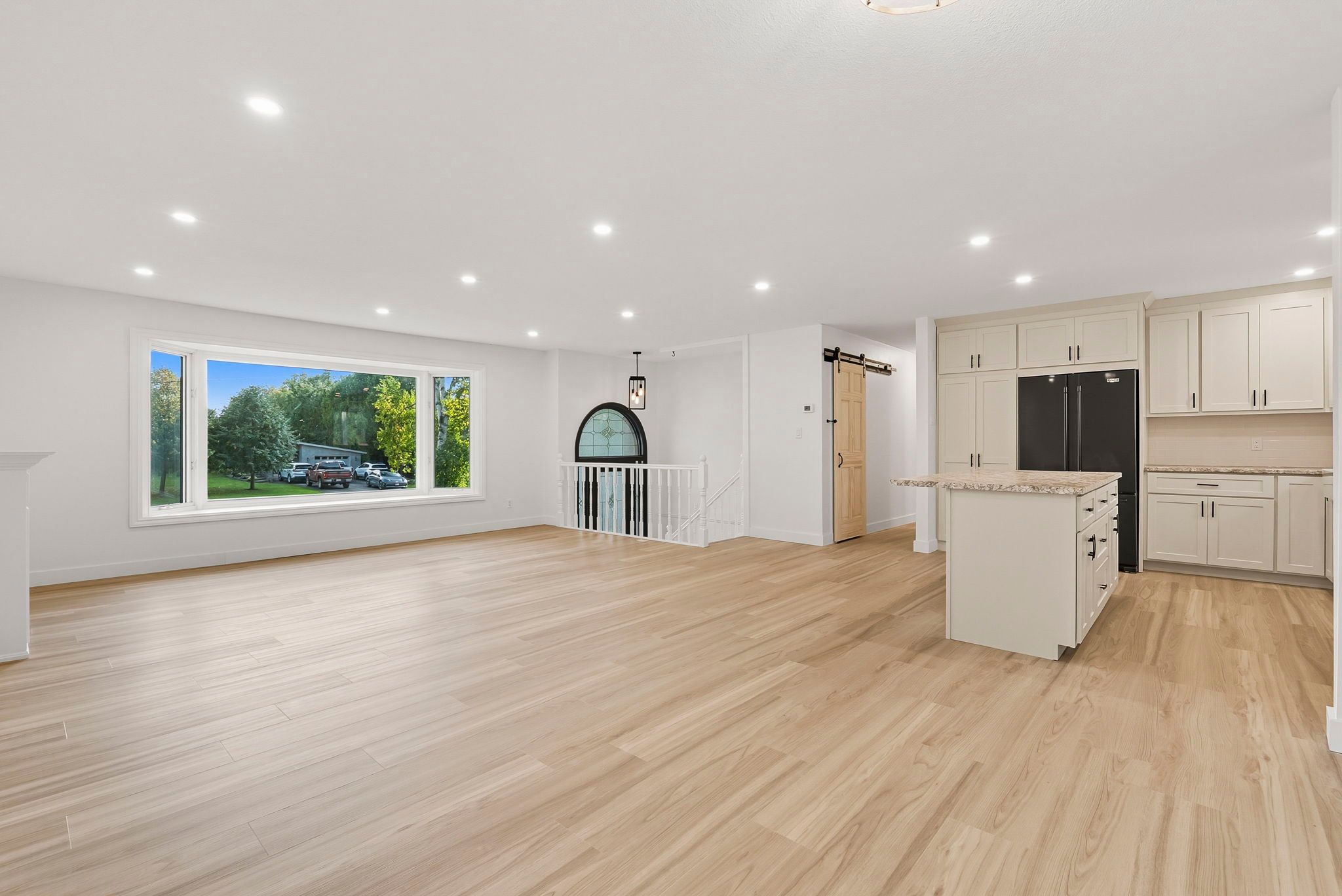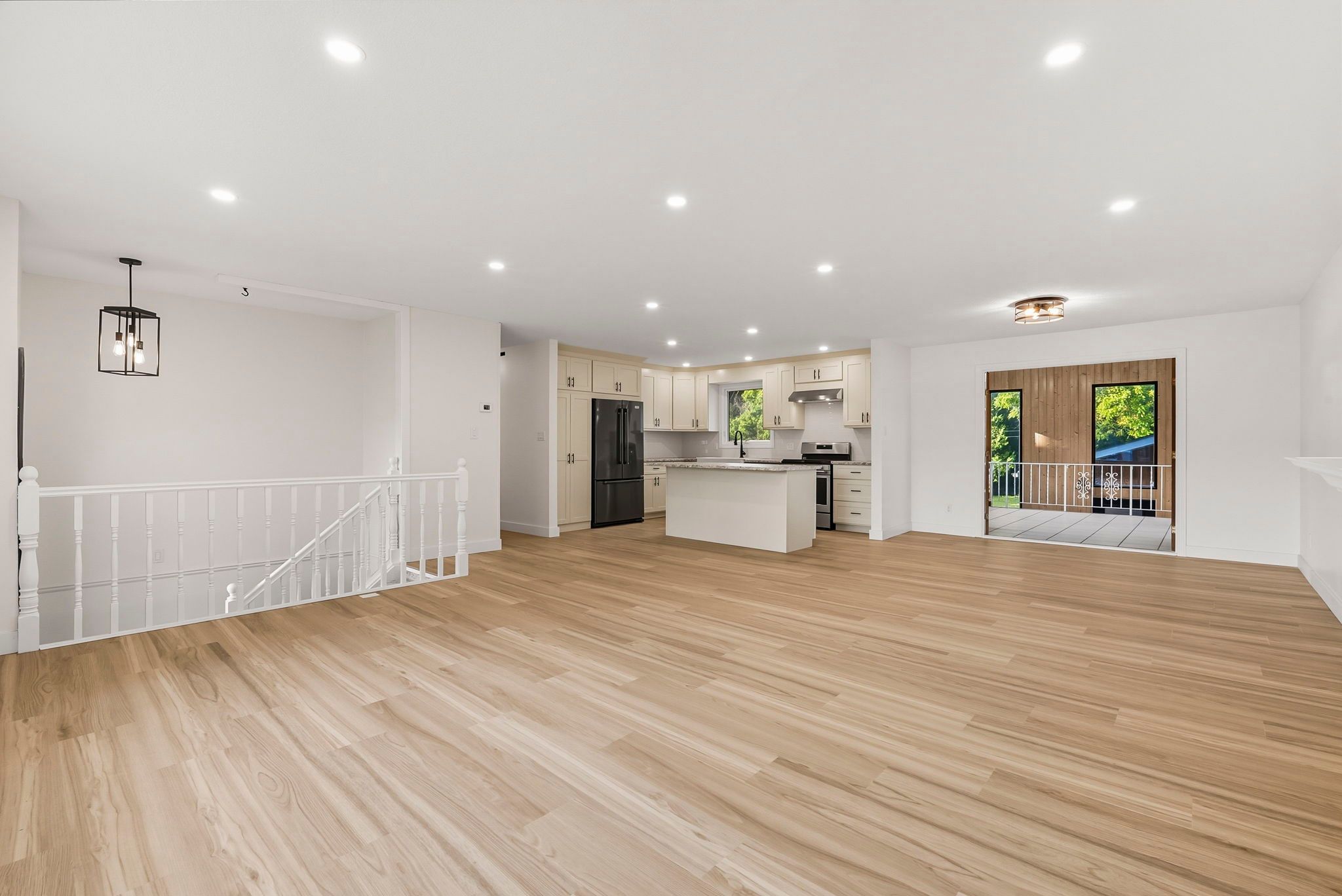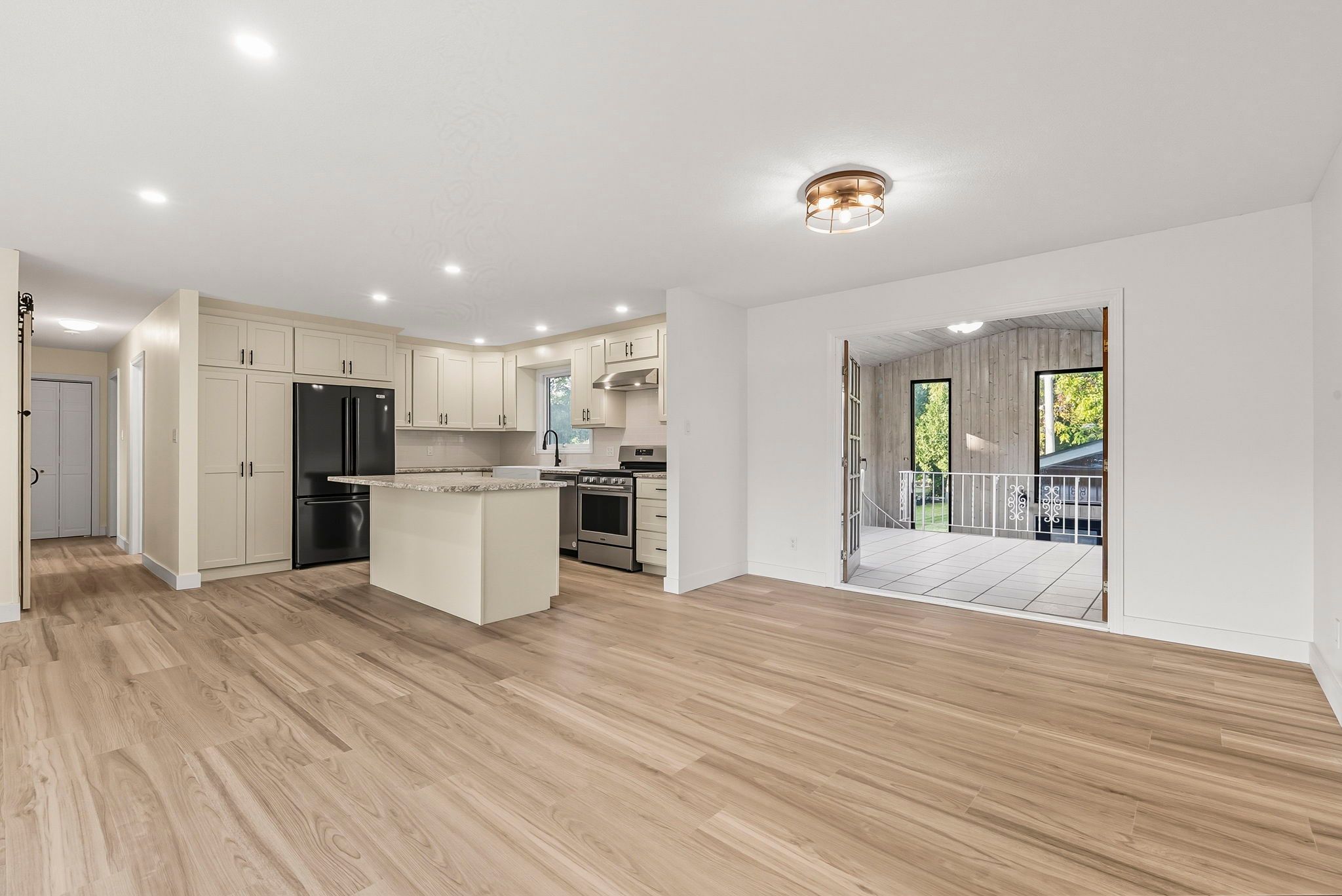 • Custom Mennonite-made kitchen with open-concept living and dining areas.