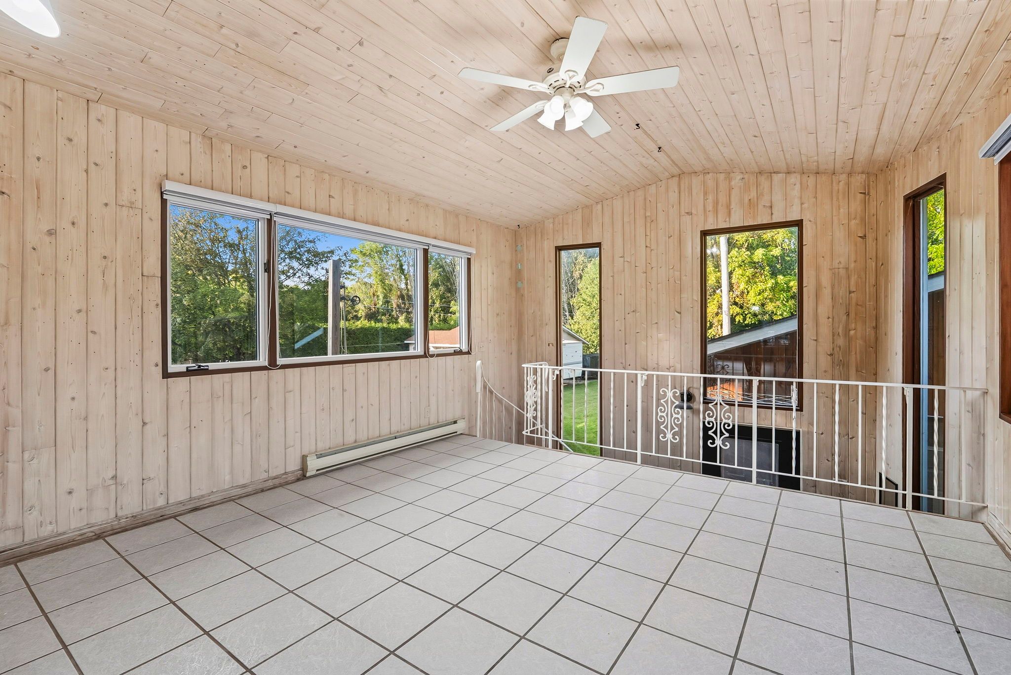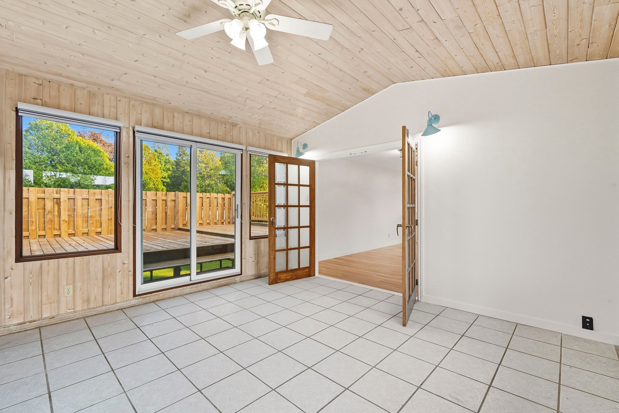• Bright sunroom leads to a refinished deck for relaxing and entertaining.