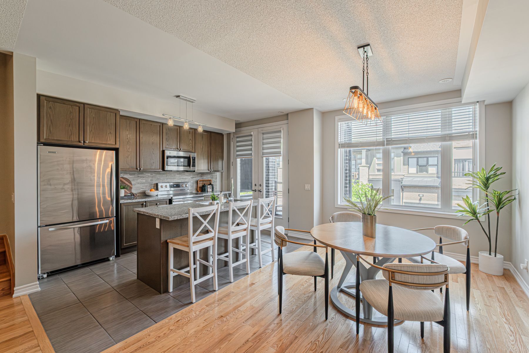 Welcome to 422 athabasca common, in one of oakville's most vibrant communities joshua meadows. Built in 2018, this beautiful 2 bedroom, 2. 5 bath freehold offers a perfect space for relaxing and entertaining. Walk in to engineered hardwood floors, 9-ft ceilings, modern kitchen with breakfast island, stainless steel appliances and an open-concept main floor perfect for gatherings or quiet evenings at home, featuring lots of natural lighting and french doors that open to a private terrace to enjoy a coffee while checking your emails. Upstairs, you'll find your dream primary bedroom with 4 pc ensuite and walk in closet. Laminate flooring and spacious 2nd bedroom, this home also offers a niche perfect for a small office to work from home beside sliding doors that lead to your rooftop oasis featuring dining and entertaining space for friends and family with a hook up for your bbq. Located directly across from william rose park with pickleball, tennis, and basketball courts plus a splash pad, this home offers an active, family-friendly lifestyle. Walking distance st. Cecilia catholic elementary school, scenic trails including athabasca pond, oakville trafalgar hospital, shopping, and major highways. Now's your perfect chance to make this home yours!. Don't miss this opportunity!!!