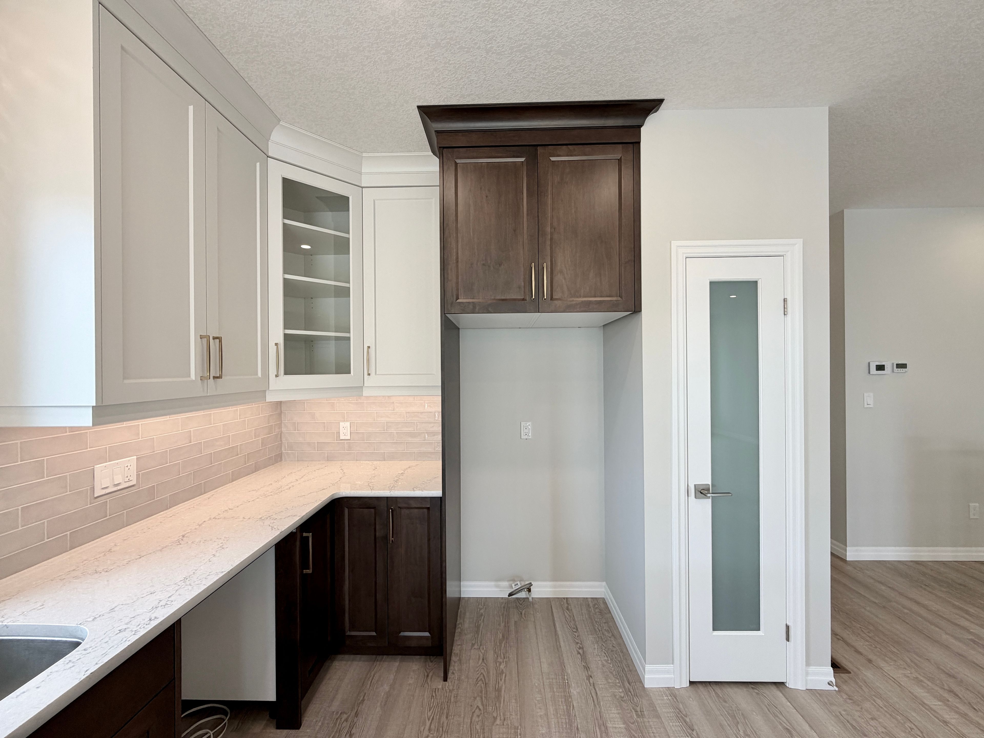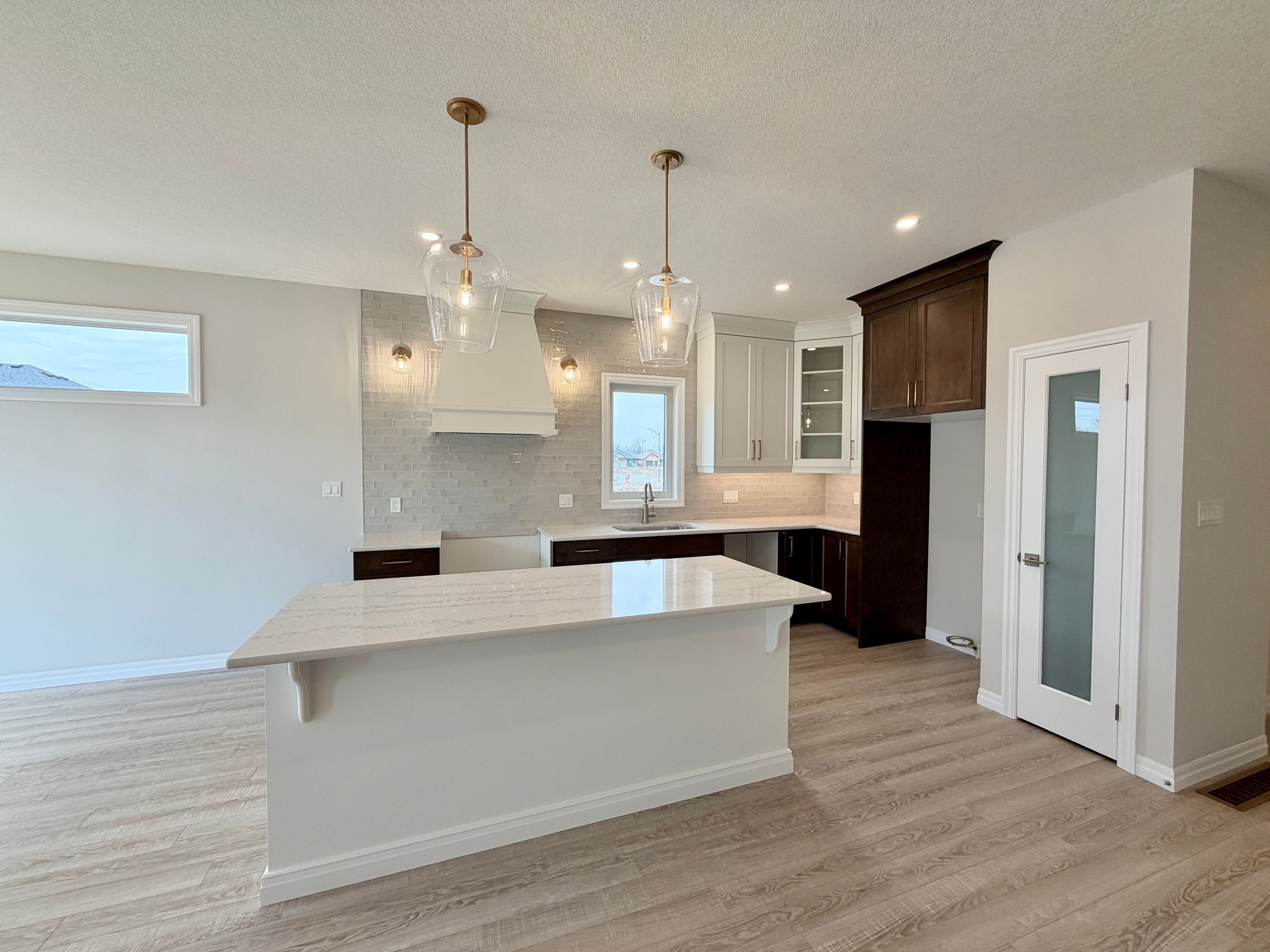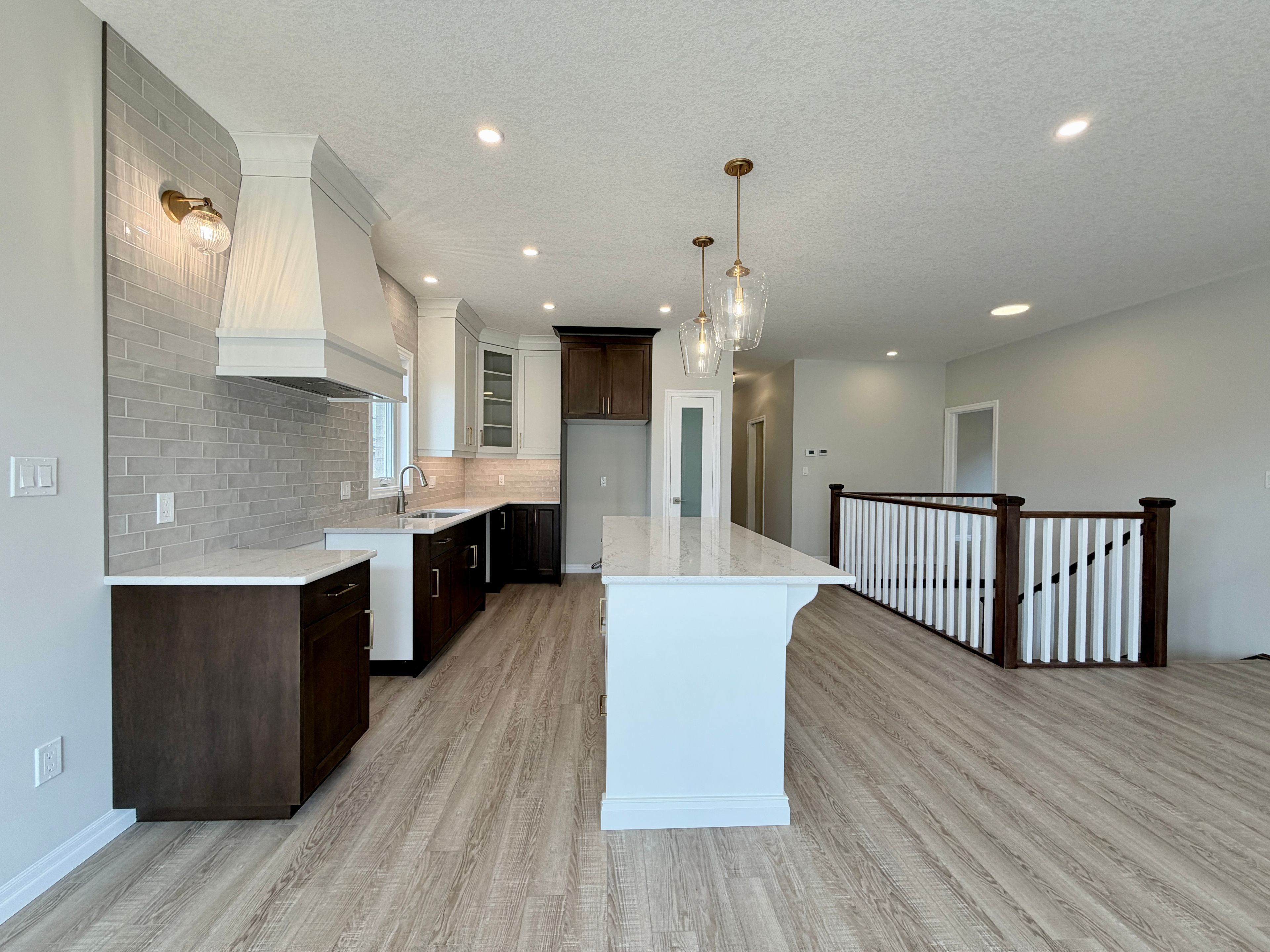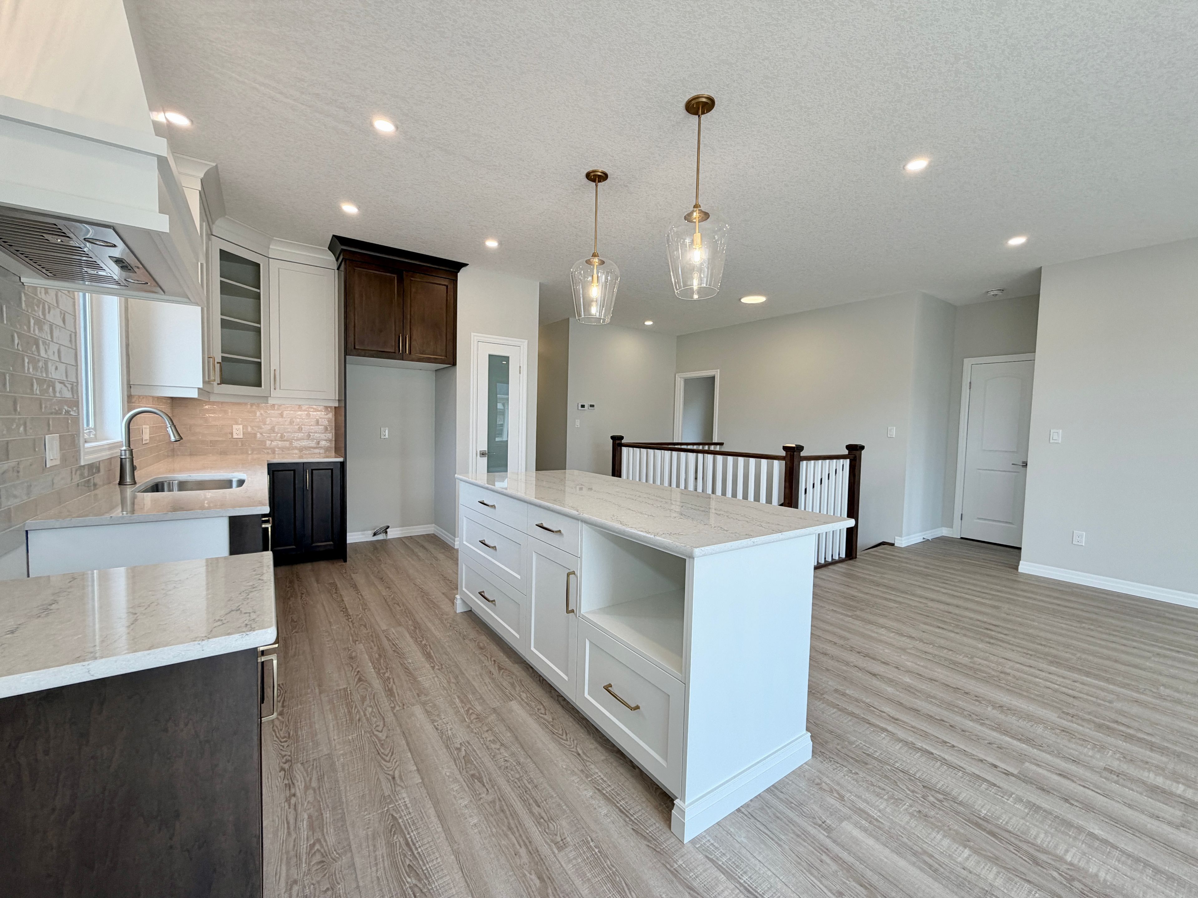 • Designer kitchen featuring quartz countertops and central island.