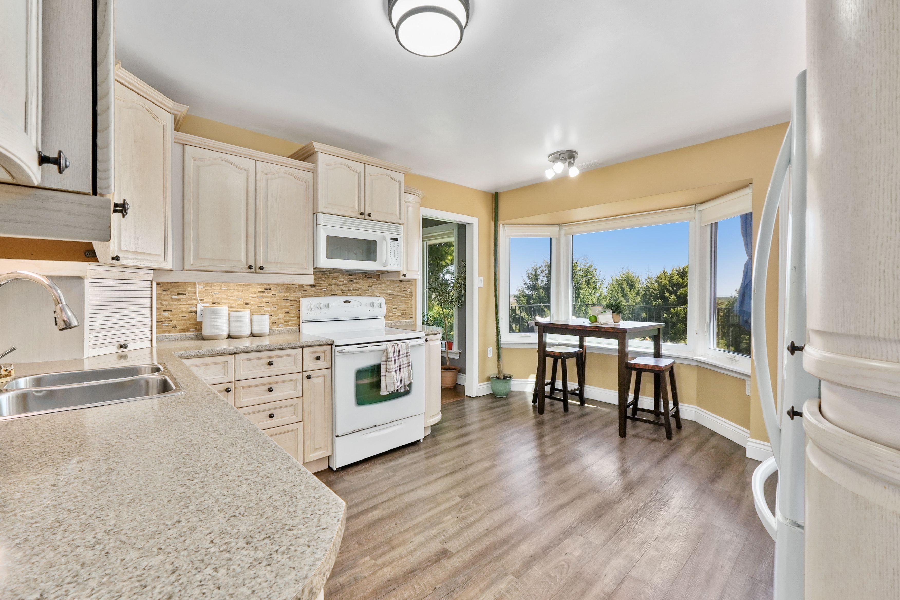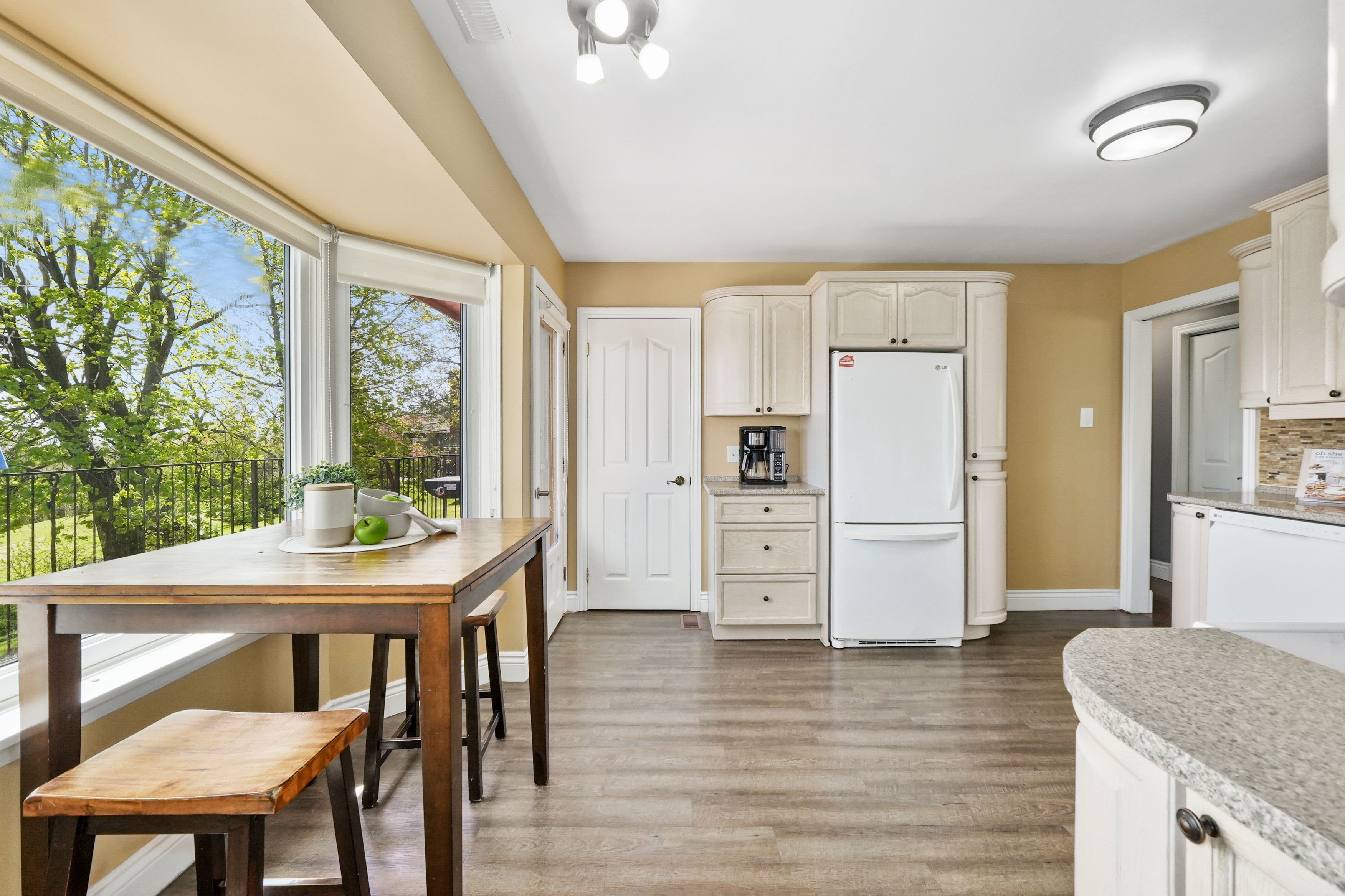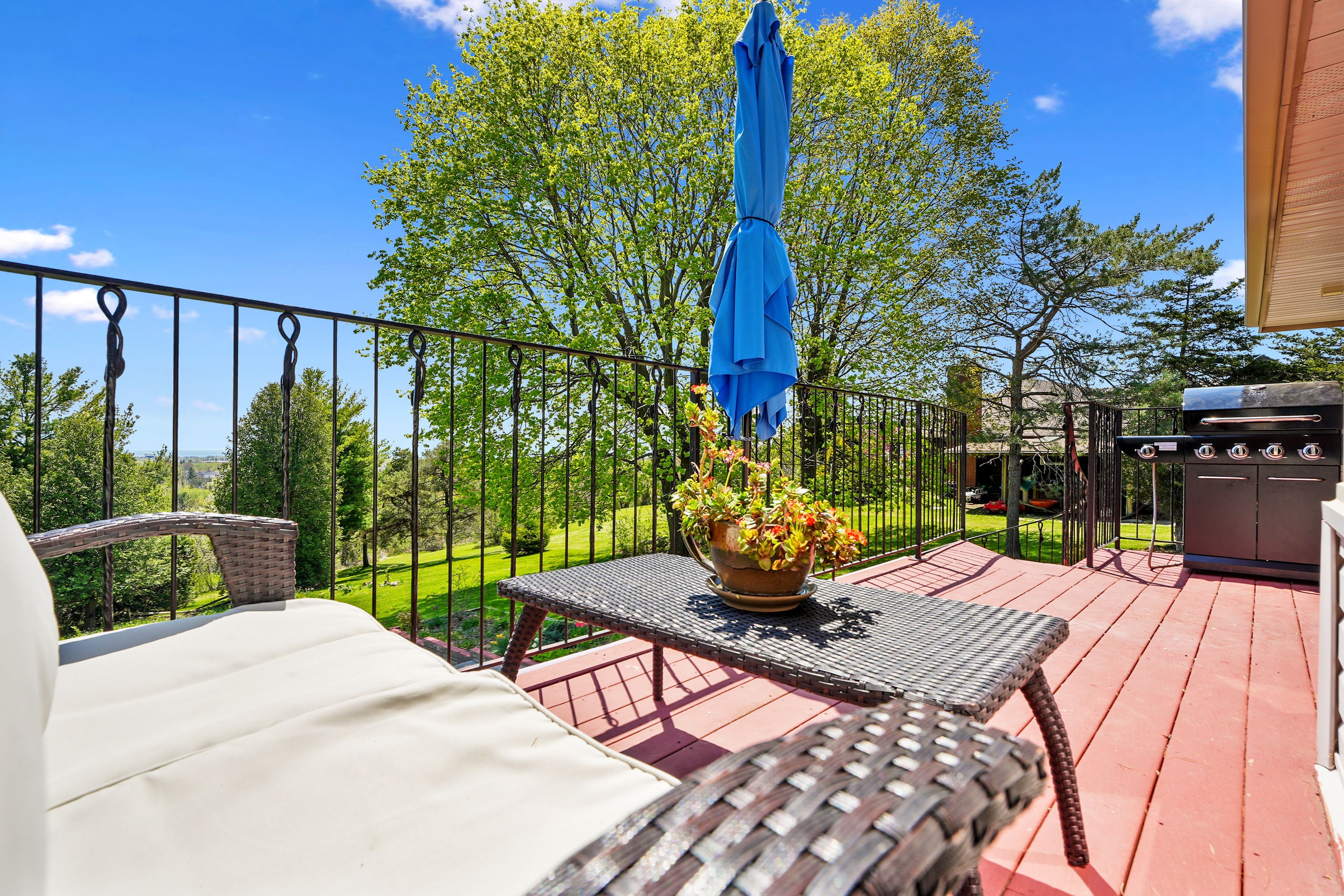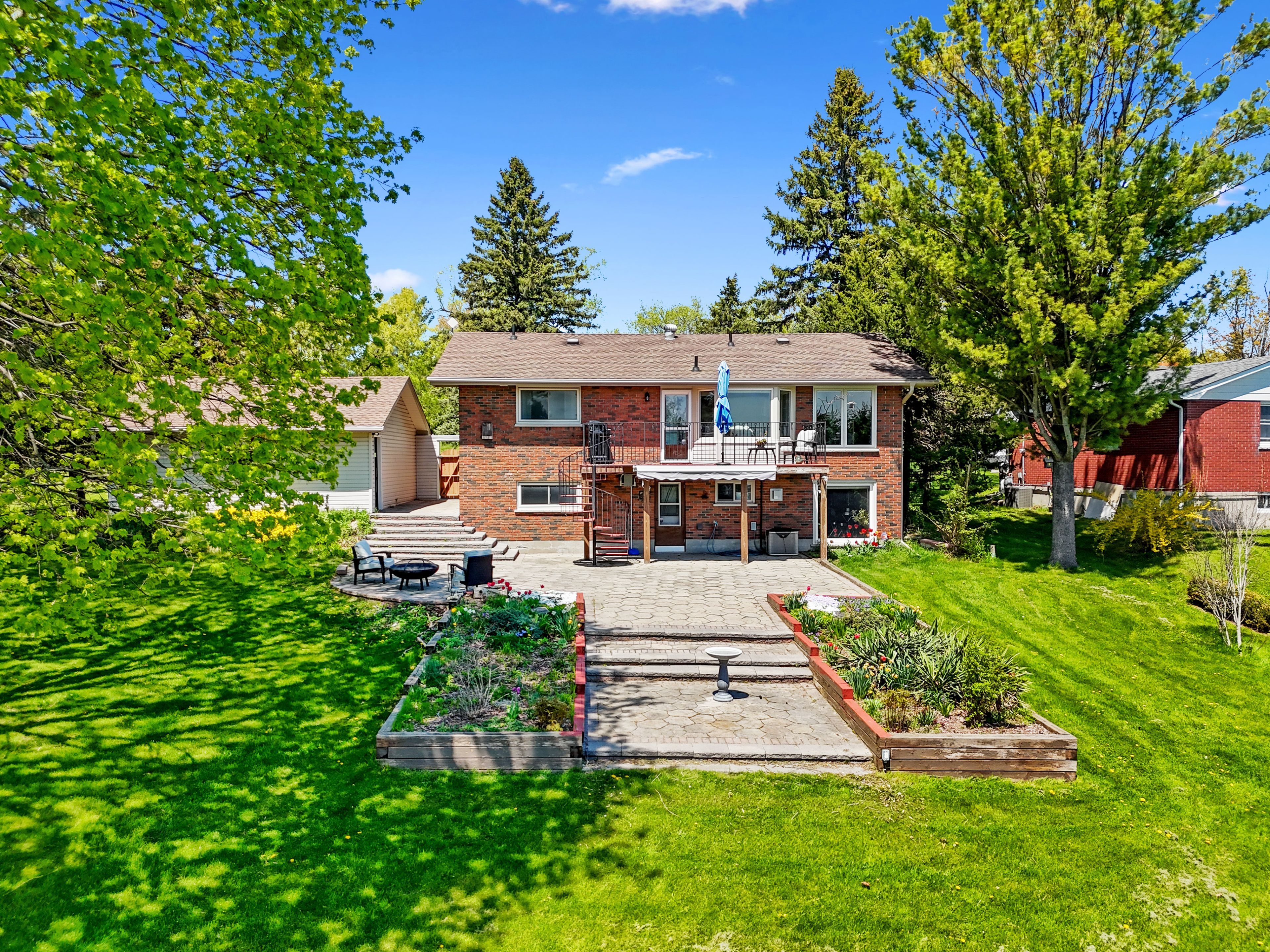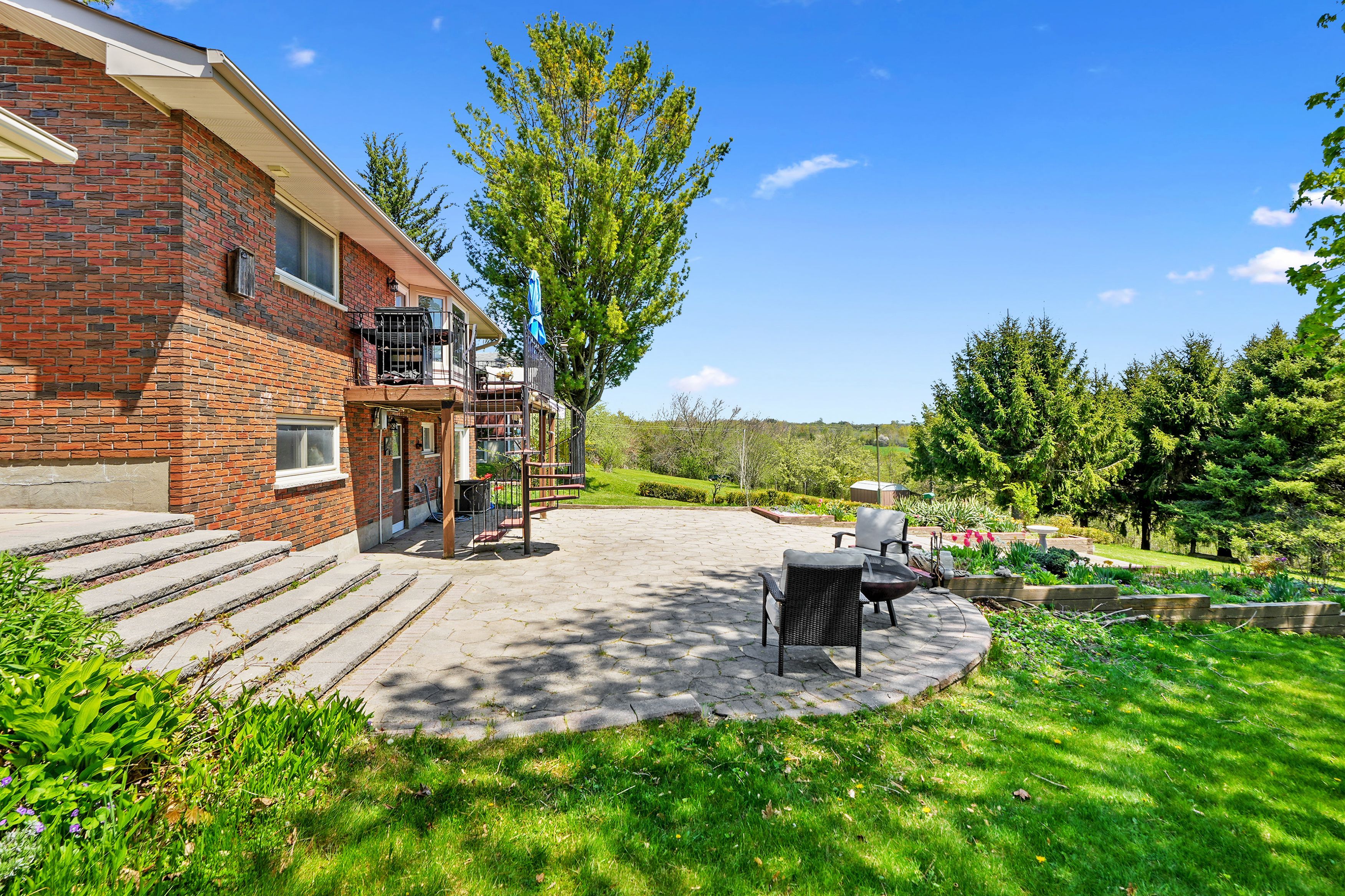 Nestled on the north end of cobourg, this spacious 1-acre property offers a carpet-free layout with plenty of room to grow, including the potential for an in-law suite on the lower level. The main floor features a bright, airy living room with crown moulding and wall of windows that flood the space with natural light. Flowing seamlessly into the dining area, its perfect for family gatherings and entertaining. The kitchen is functional and stylish with a bayed breakfast nook, coffee bar, tile backsplash, generous cabinetry and counter space, a pantry for extra storage, and a walkout to the back deck, which is ideal for summer bbqs and outdoor living. The main level is complete with two well-appointed bedrooms and a bathroom with a walk-in shower enclosure. Downstairs, the lower level offers incredible versatility for multigenerational living. It features a separate entrance, spacious rec room with a cozy fireplace, and a flexible area for a games room or office. Two additional bedrooms, full bathroom, and laundry room provide comfort and convenience for extended family or guests. Step outside to your private backyard retreat. The upper-level deck off the kitchen provides sweeping views of the forested northumberland hills. A spiral staircase leads to a lower patio perfect for al fresco dining. Mature trees and landscaping enhance privacy, while raised flower beds and generous green space offer room to garden, play, or simply unwind. Located just minutes from cobourg's downtown amenities and with easy access to highway 401, this property offers tranquility and convenience.