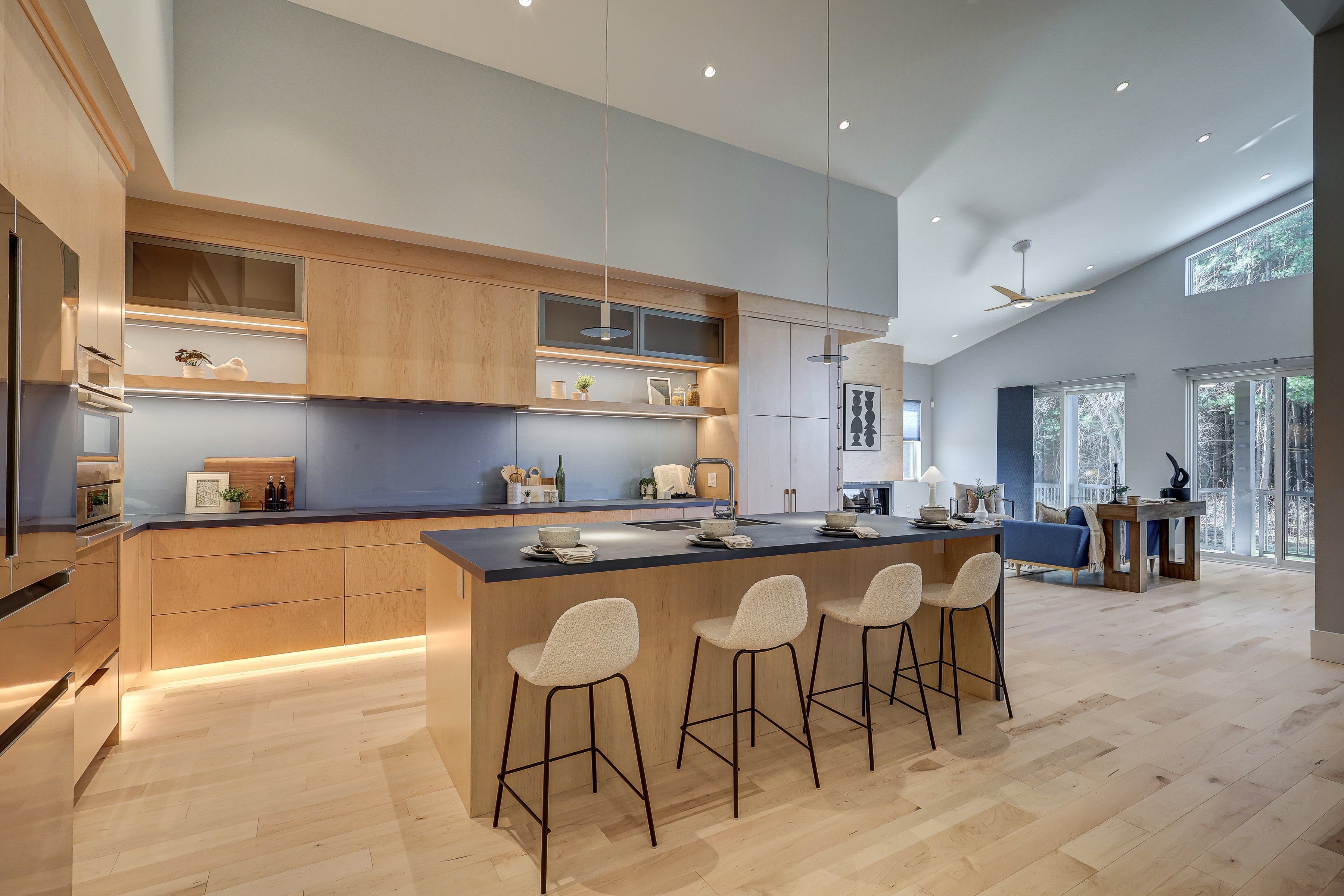 • Modern Scandinavian design with upscale finishes and natural textures.