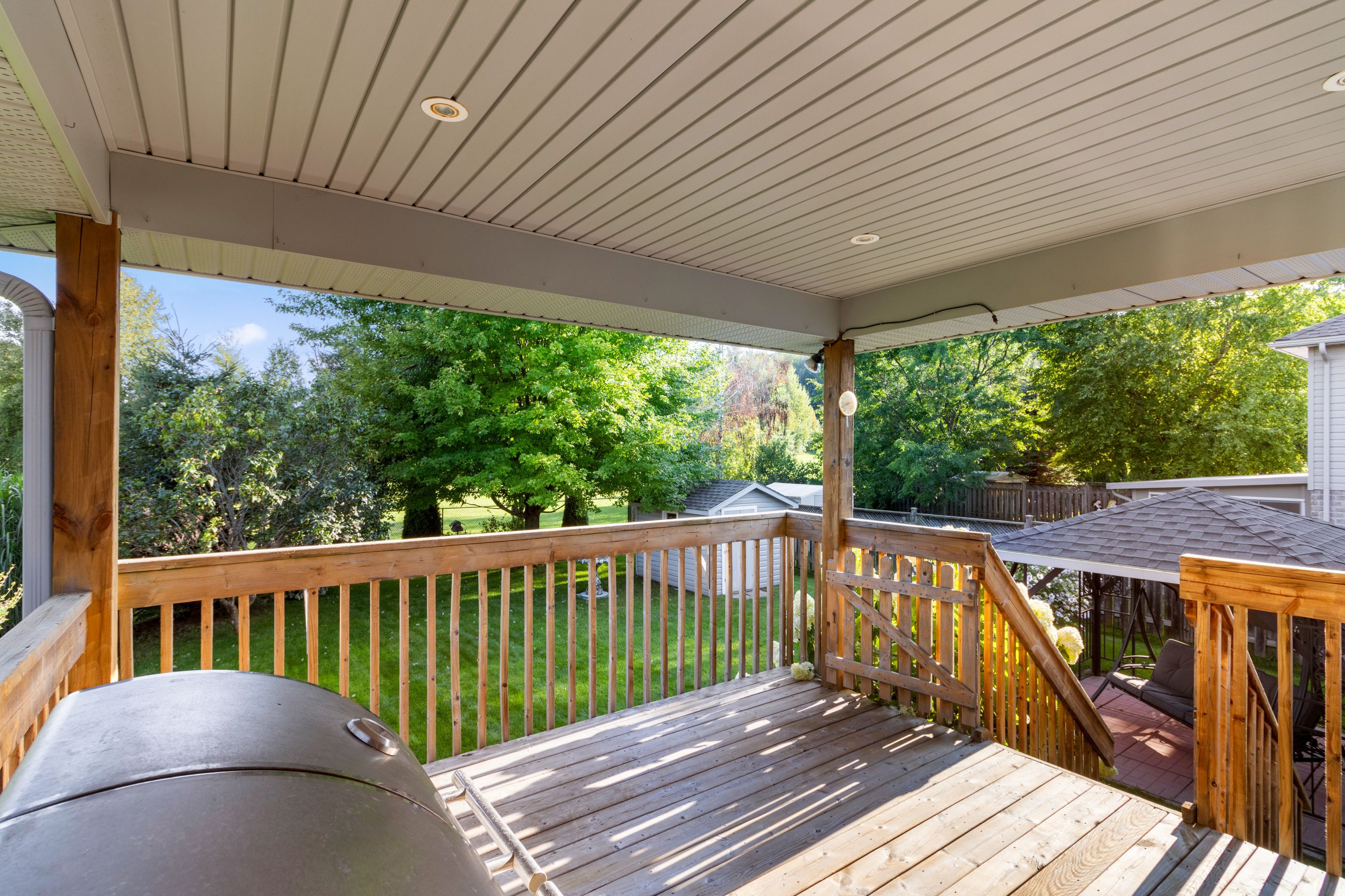 • Covered deck perfect for outdoor dining overlooking a landscaped yard.