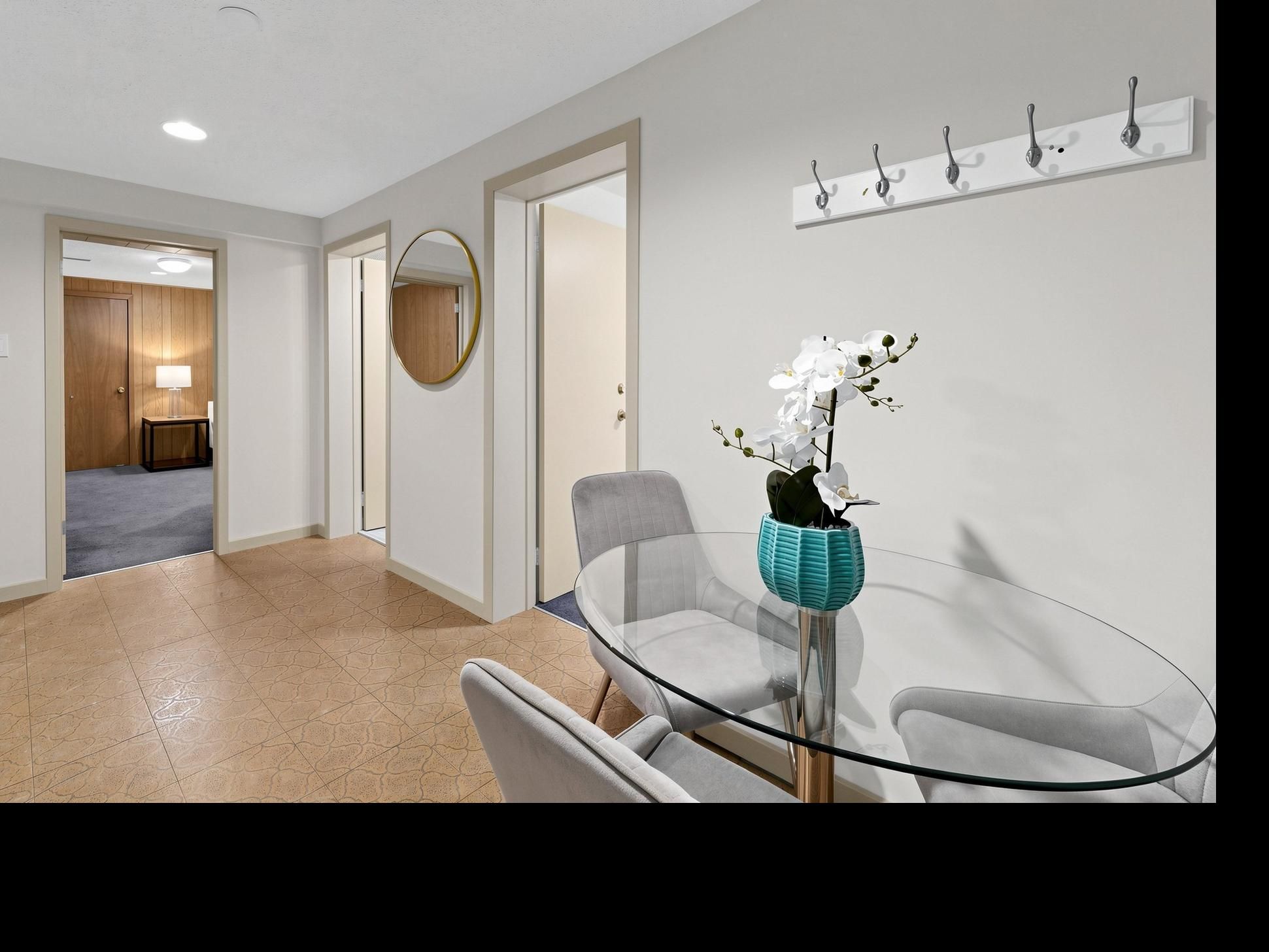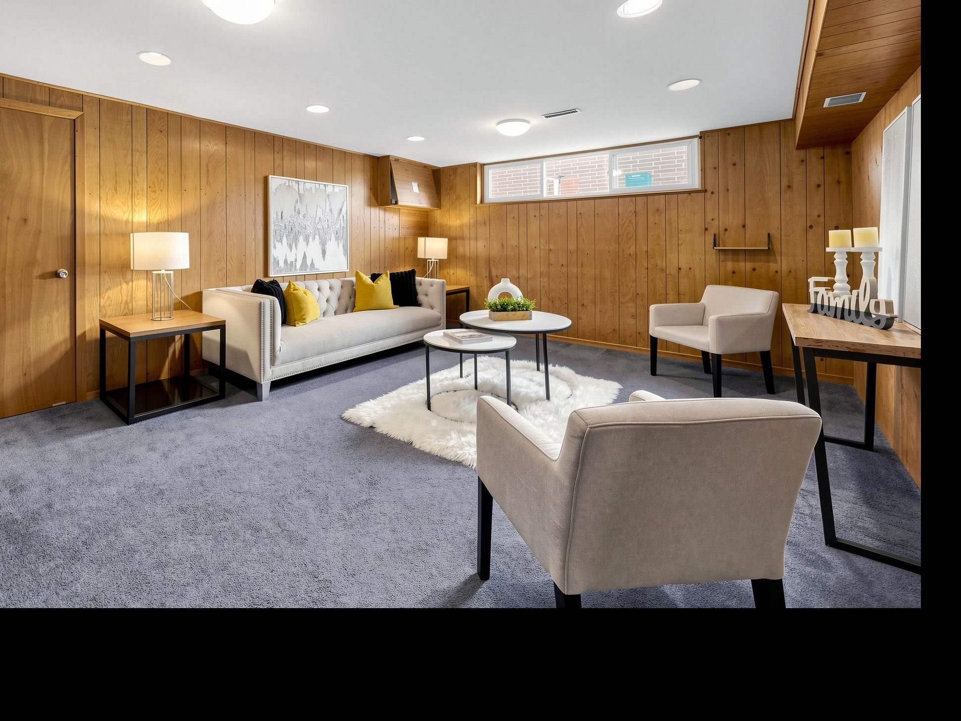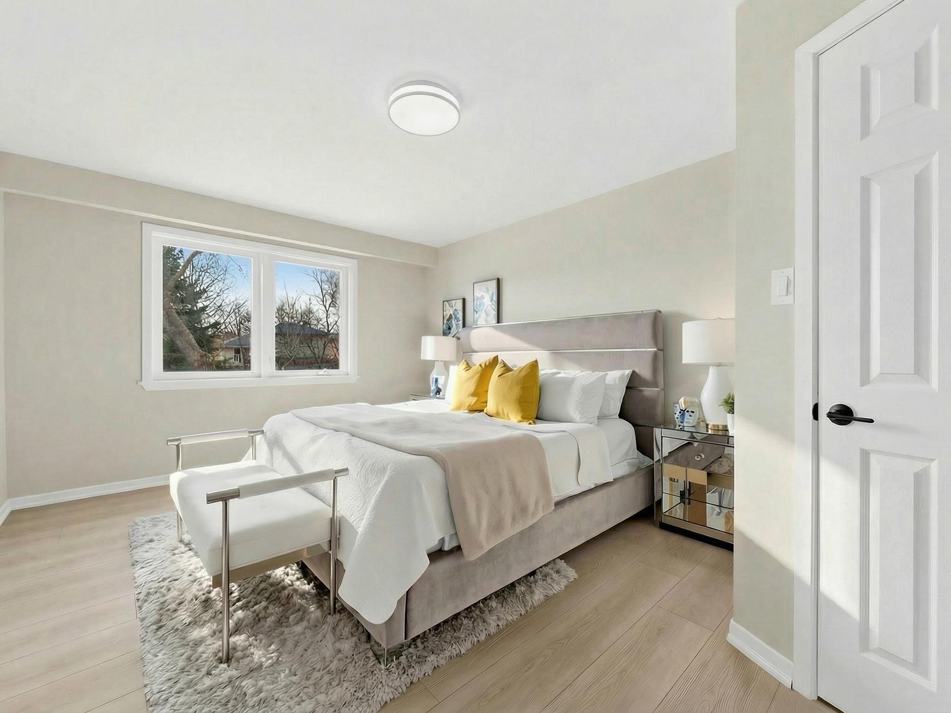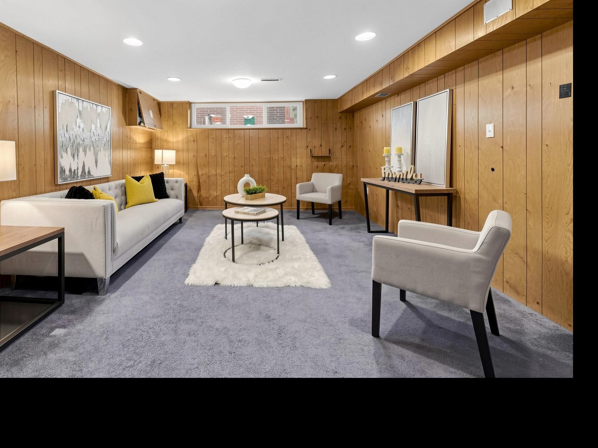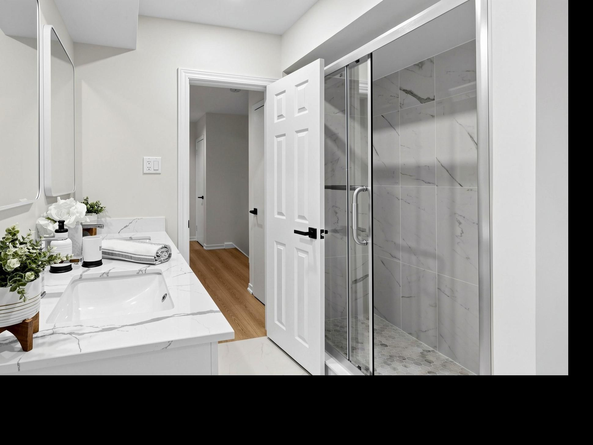 • Bright walk-out level with floor-to-ceiling windows and modern kitchen.