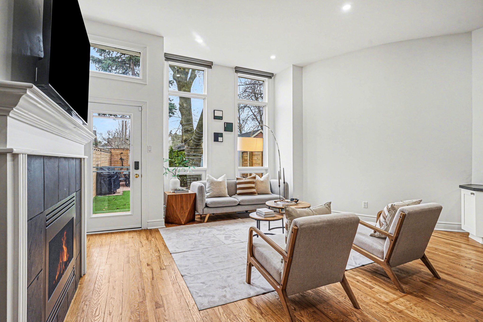 • Spacious and airy with 11-foot ceilings and oversized windows for natural light.