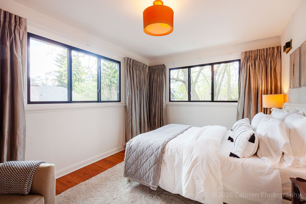 This home has been completely reimagined, meticulously renovated to honour its architectural roots while integrating high-end contemporary design, creating a true mid-century modern masterpiece. Step inside to a welcoming foyer with slate flooring that flows seamlessly into rich hardwood throughout, highlighted by oversized windows that flood every room with natural light. The living room features a striking ledge-stone fireplace, elegant cove mouldings, and a full wall of windows, opening into the dining room, which continues the wall-of-glass aesthetic. The kitchen offers sleek quartz countertops, an oversized island with seating for four, premium appliances, and abundant cabinetry with extensive drawer storage. A dedicated coffee bar with a drink fridge and sink enhances daily living, while the kitchen connects directly to the family room and enlarged patio doors, extending entertaining outdoors. The main-floor primary suite feels like a private retreat, complete with a custom walk-in closet and spa-inspired ensuite. Tiled floors, a glass shower, separate water closet, double sinks, and a deep soaker tub create a serene sanctuary. Garden doors lead to a covered porch, offering a quiet escape steps from your bed. Upstairs are three additional bedrooms and a beautifully restored 1950s bathroom that honours the home's heritage while remaining fresh and timeless. The lower level adds a games area, recreation room with another stone fireplace, a two-piece bath, and a dream laundry room. Outside, professionally designed grounds feature multiple outdoor "rooms": a flagstone entertainment area, a secluded seating nook, and a vegetable garden, all enclosed by a privacy fence. Ideally located near lhsc victoria hospital and wortley village, and steps to the thames valley parkway, this home also offers quick access to downtown. Pride of ownership shines through in every detail of this home, which is only on its second owner.