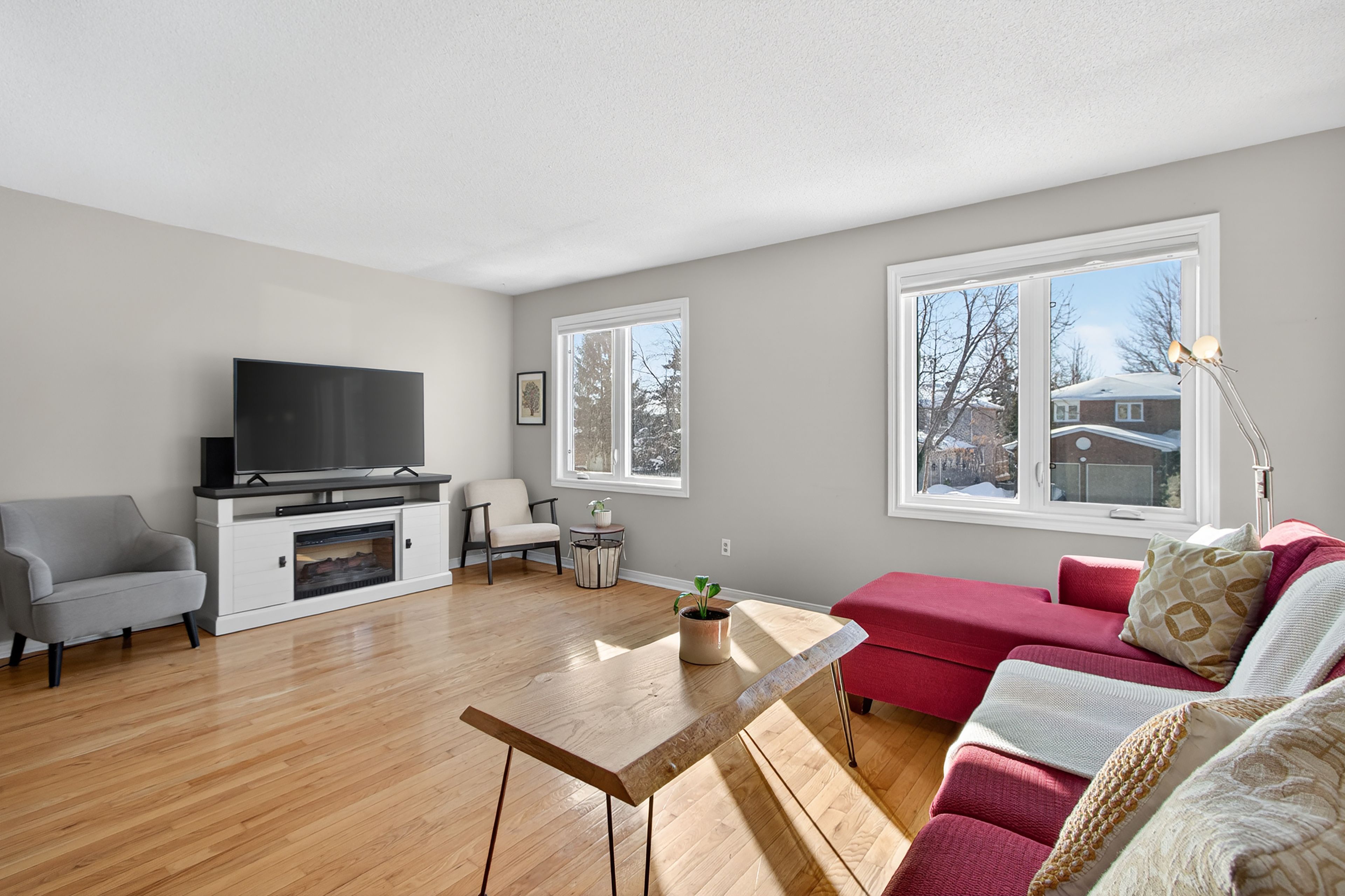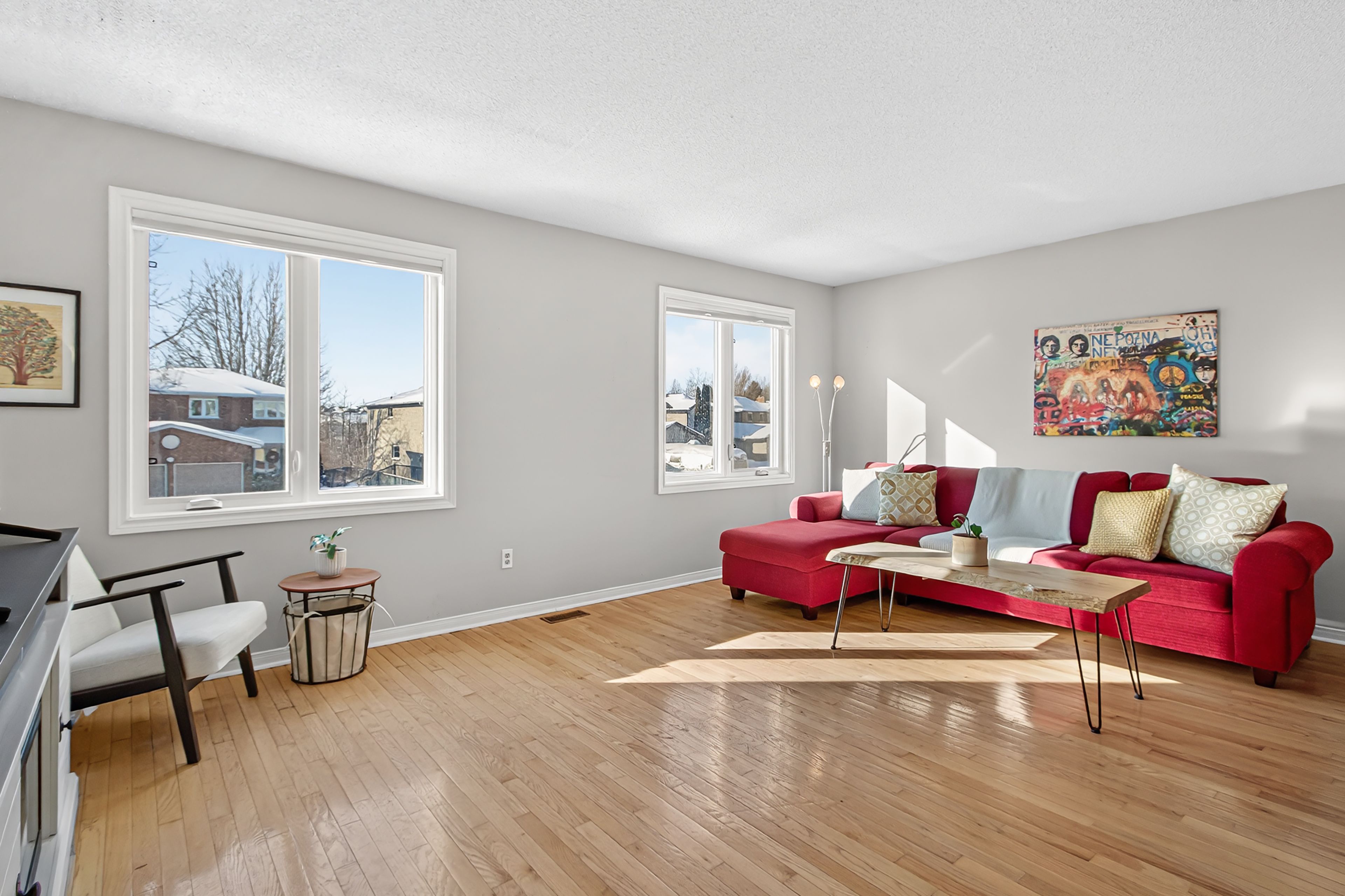 • Bright and inviting main living area with hardwood floors and large windows.