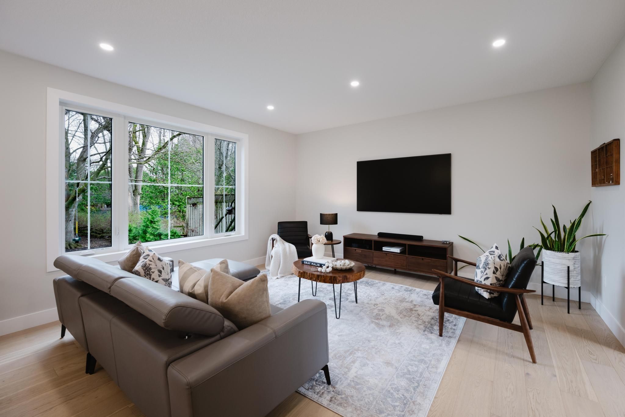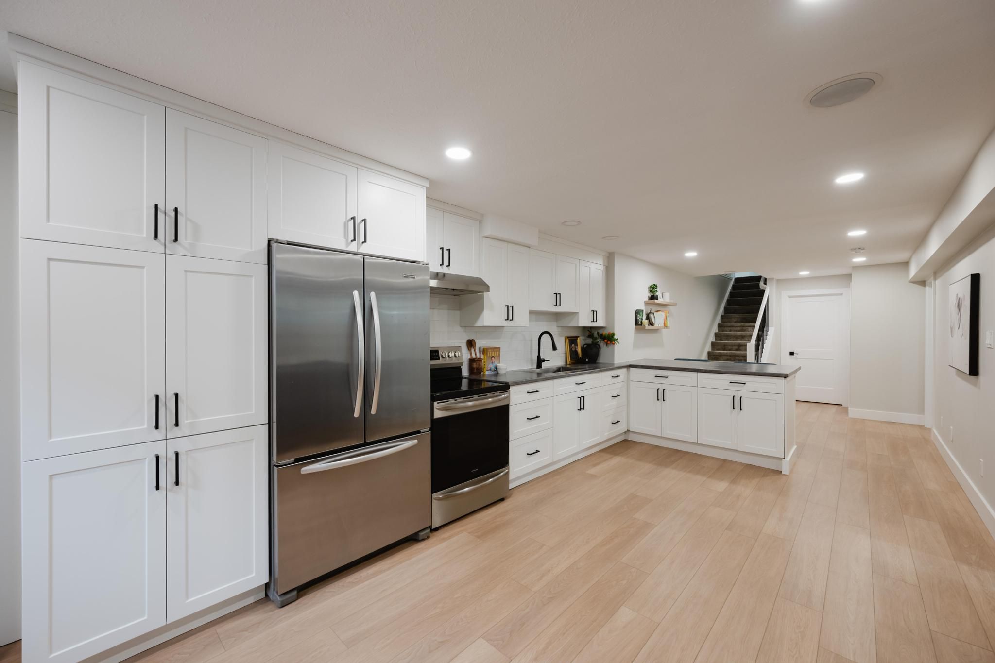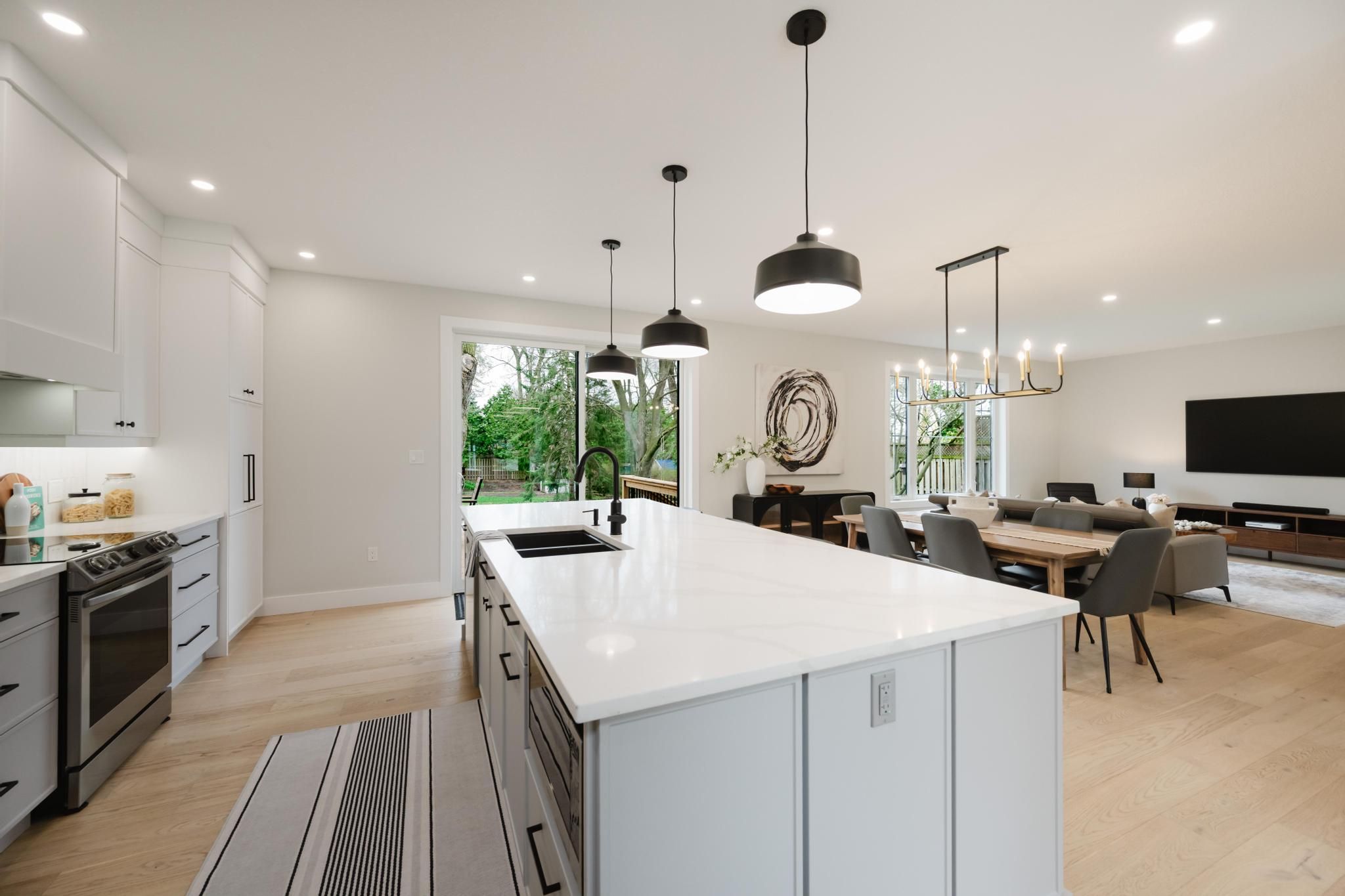 • Extensively renovated and expanded two-storey home with modern finishes.