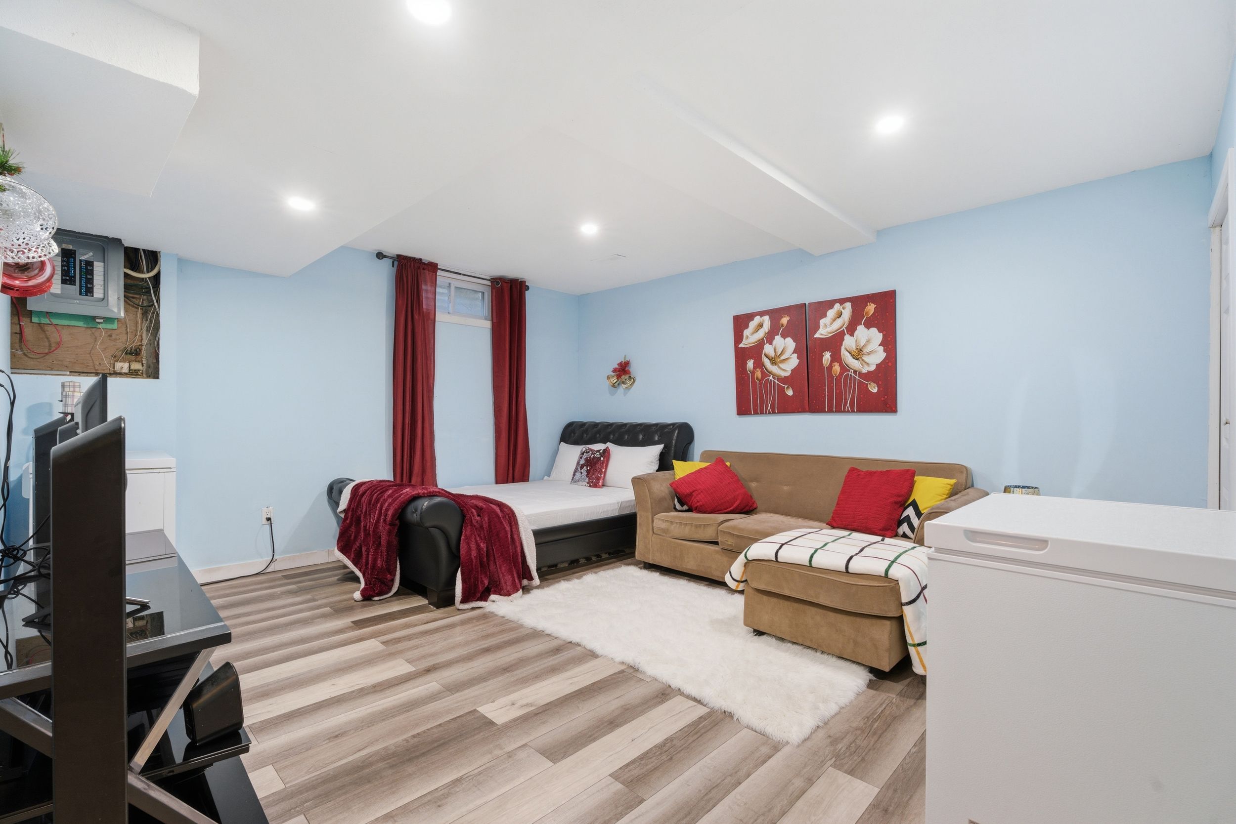• Finished lower level offering extra living space, a bathroom, and laundry area.