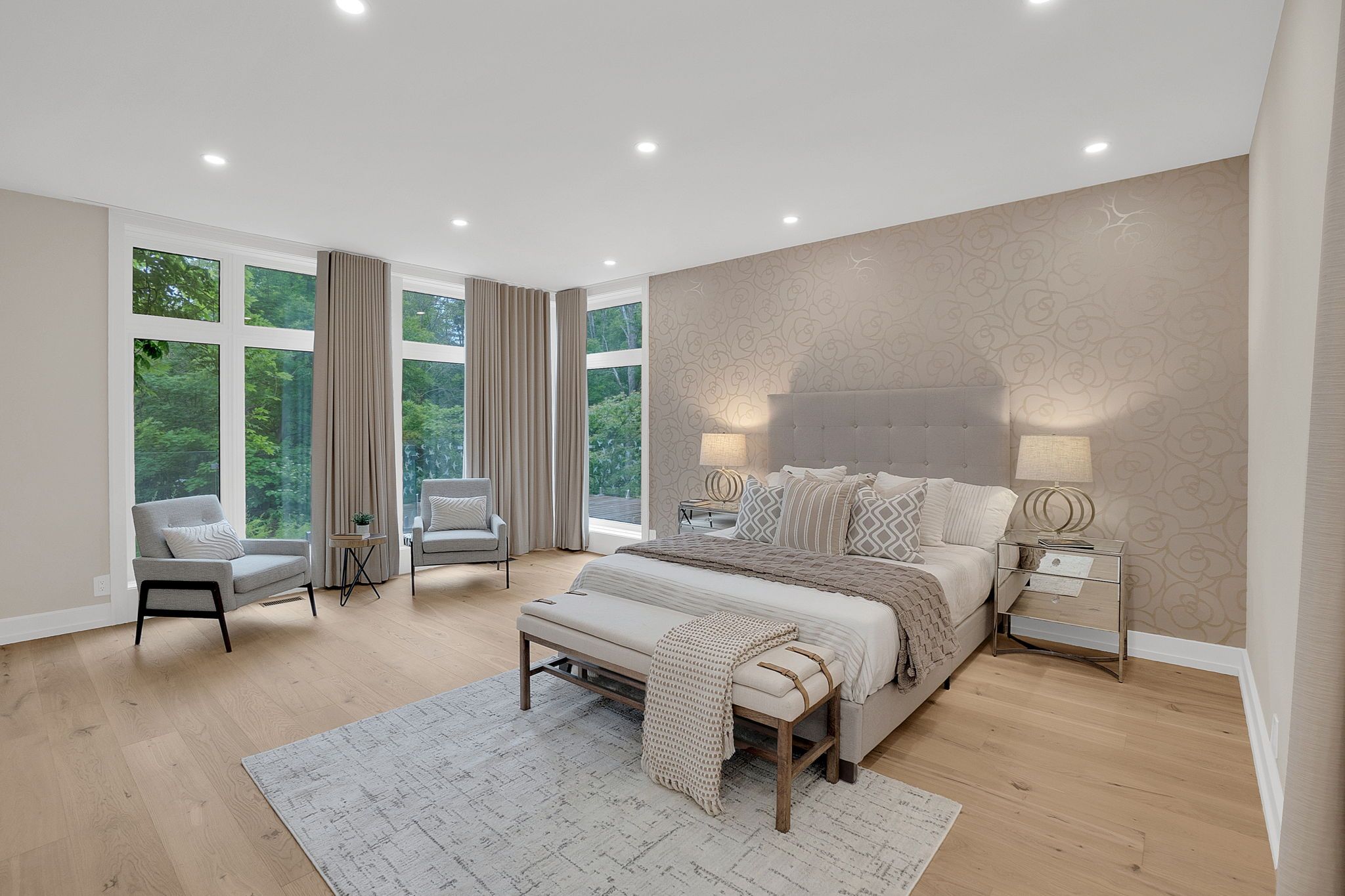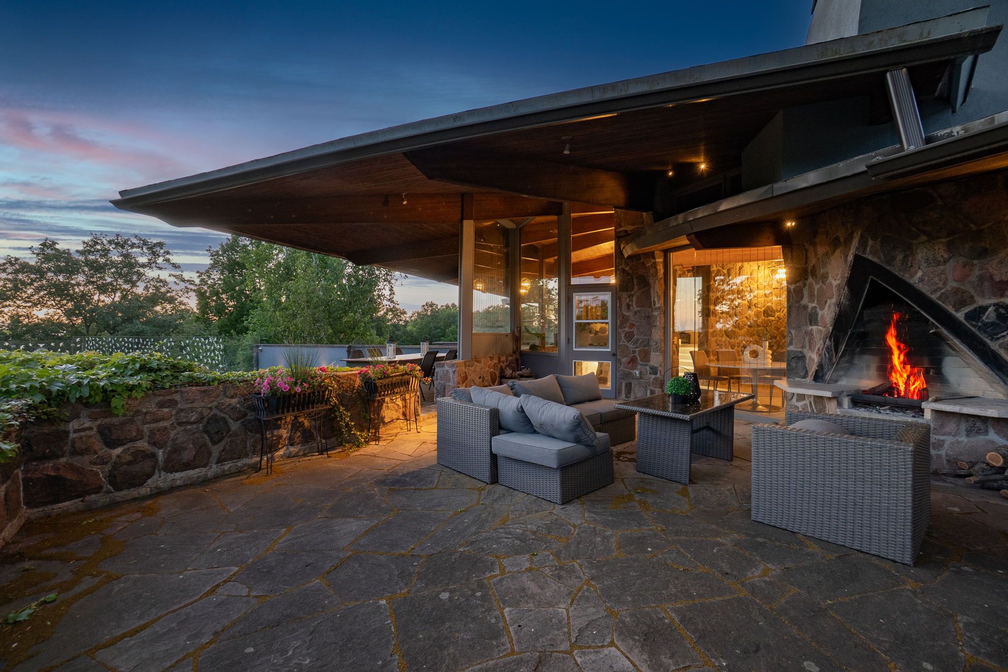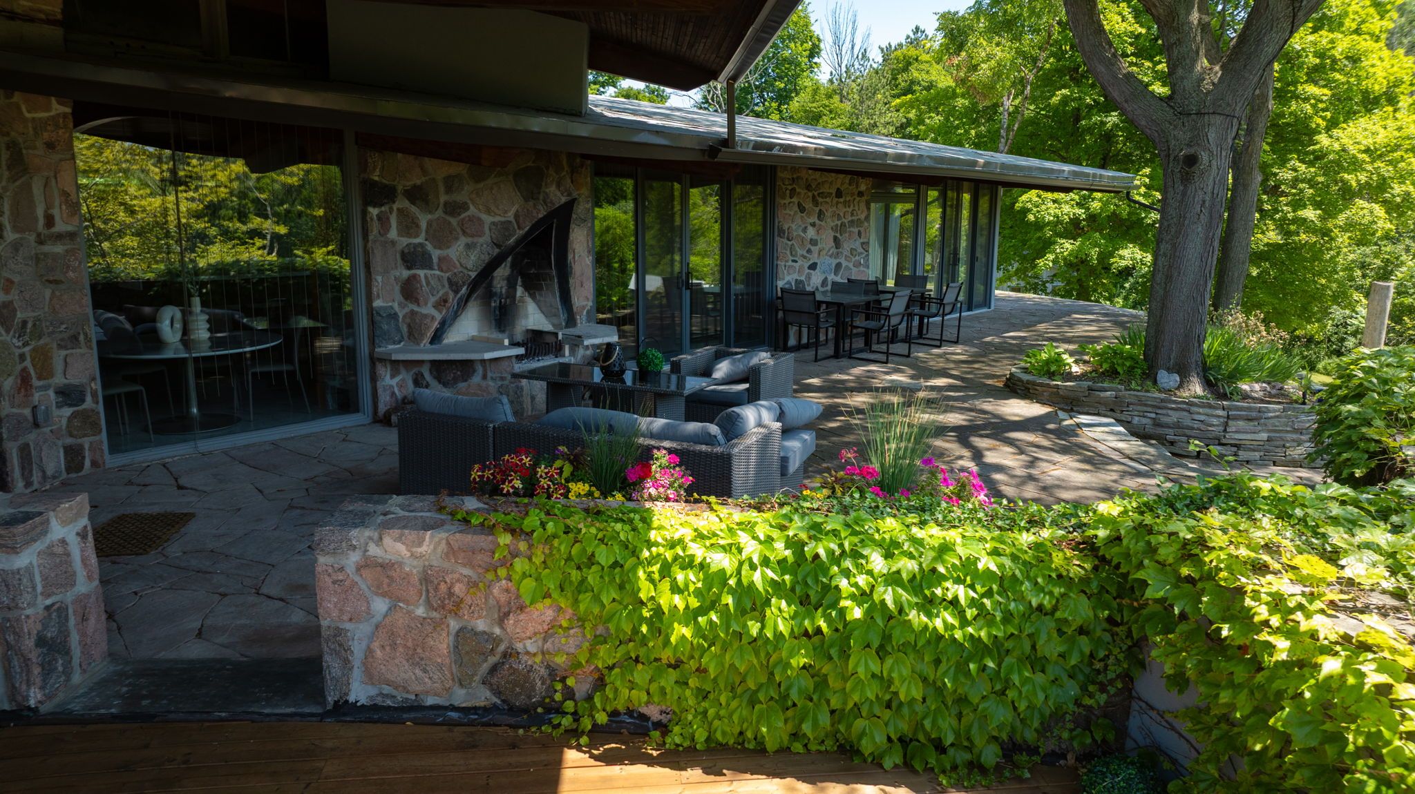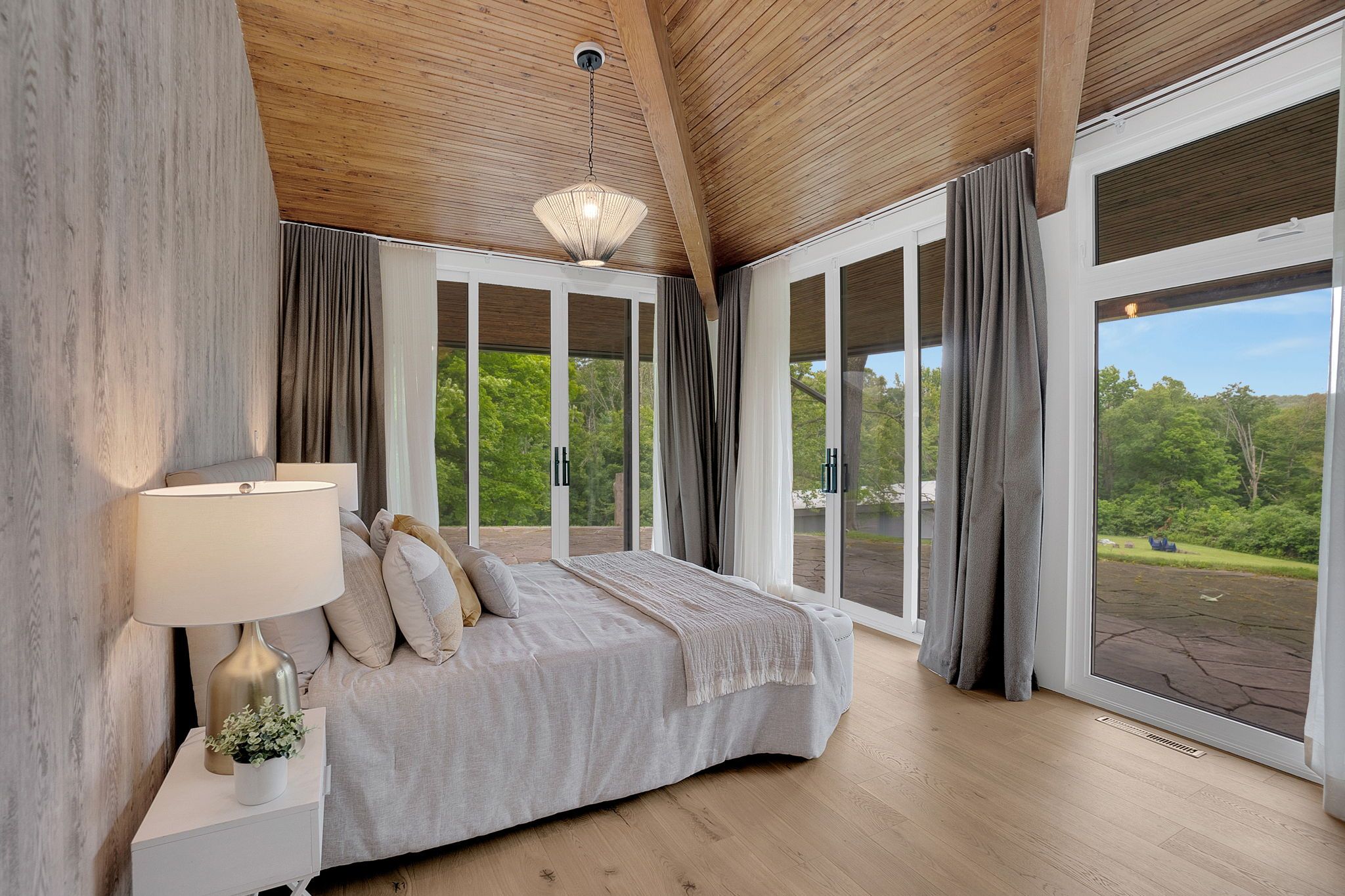 Welcome to an extraordinary estate tucked away behind welcoming stone pillars and a winding forested driveway! This is a work of art designed by the legendary grant whatmough and gardiner cowan, with distinctive frank lloyd wright style of architecture. This iconic mid-century modern residence is gracefully integrated into 32 acres of majestic land, where nature and architecture exist in perfect harmony. From the moment you approach the stunning entry door, you're drawn into a world of timeless design and serene beauty. This home is lovingly maintained with extensive renovations, while preserving the character and soul of this home, including floor-to-ceiling windows bring the outdoors in, stone fireplaces indoor and out, original stone walls and impressive wood beams throughout. Spanning approximately 5,000 sq ft, the main residence features 6 bedrooms, 7 bathrooms, an office, a meditation room, and a separate nanny suite. Multiple terraces and decks surround the home, offering breathtaking views of the land, and a tranquil lake creating the feel of a private luxury retreat. This property features a rare second home- fully renovated and approximately 3,500 sq ft-offering 3 bedrooms, 4 bathrooms, and a massive loft space! This second home is ideal for an extended family! There is an additional yoga studio with an outdoor shower! A detached garage/ workshop, a charming cedar cabin with sauna and cold plunge, a covered cabana for entertaining or relaxing on the property. This is a once-in-a-lifetime opportunity to own an architecturally significant estate in the prestigious king township. With unmatched privacy, lush surroundings, and two beautifully appointed homes, this property is truly a timeless work of art. Don't miss it!