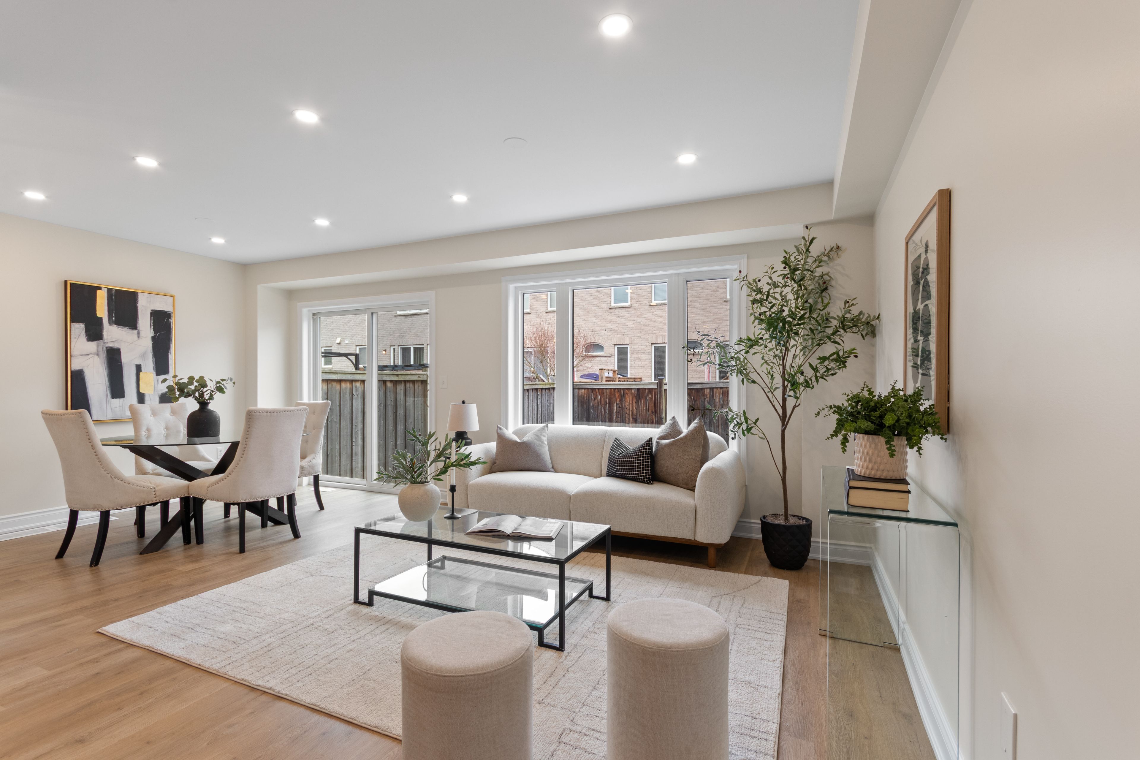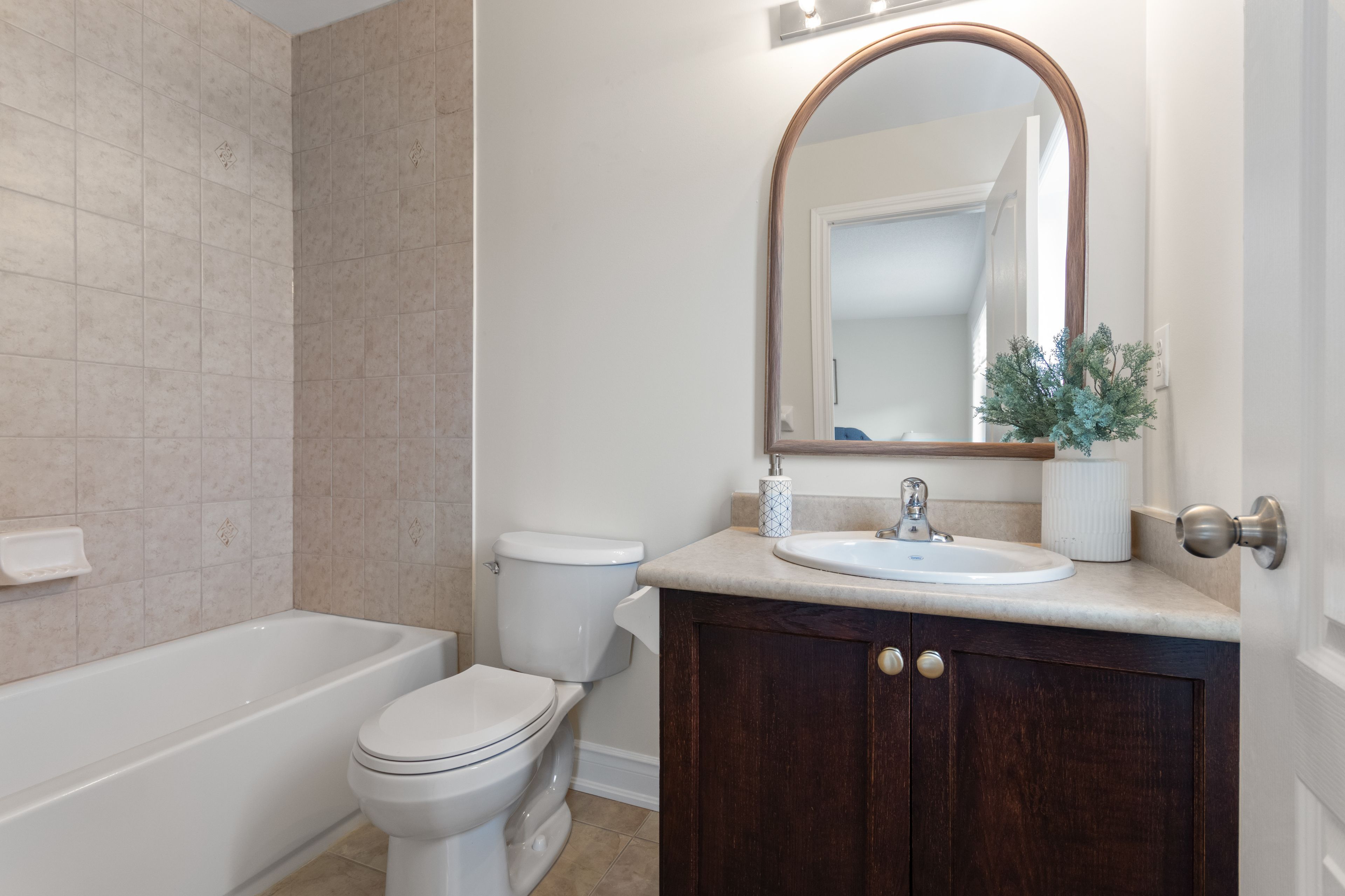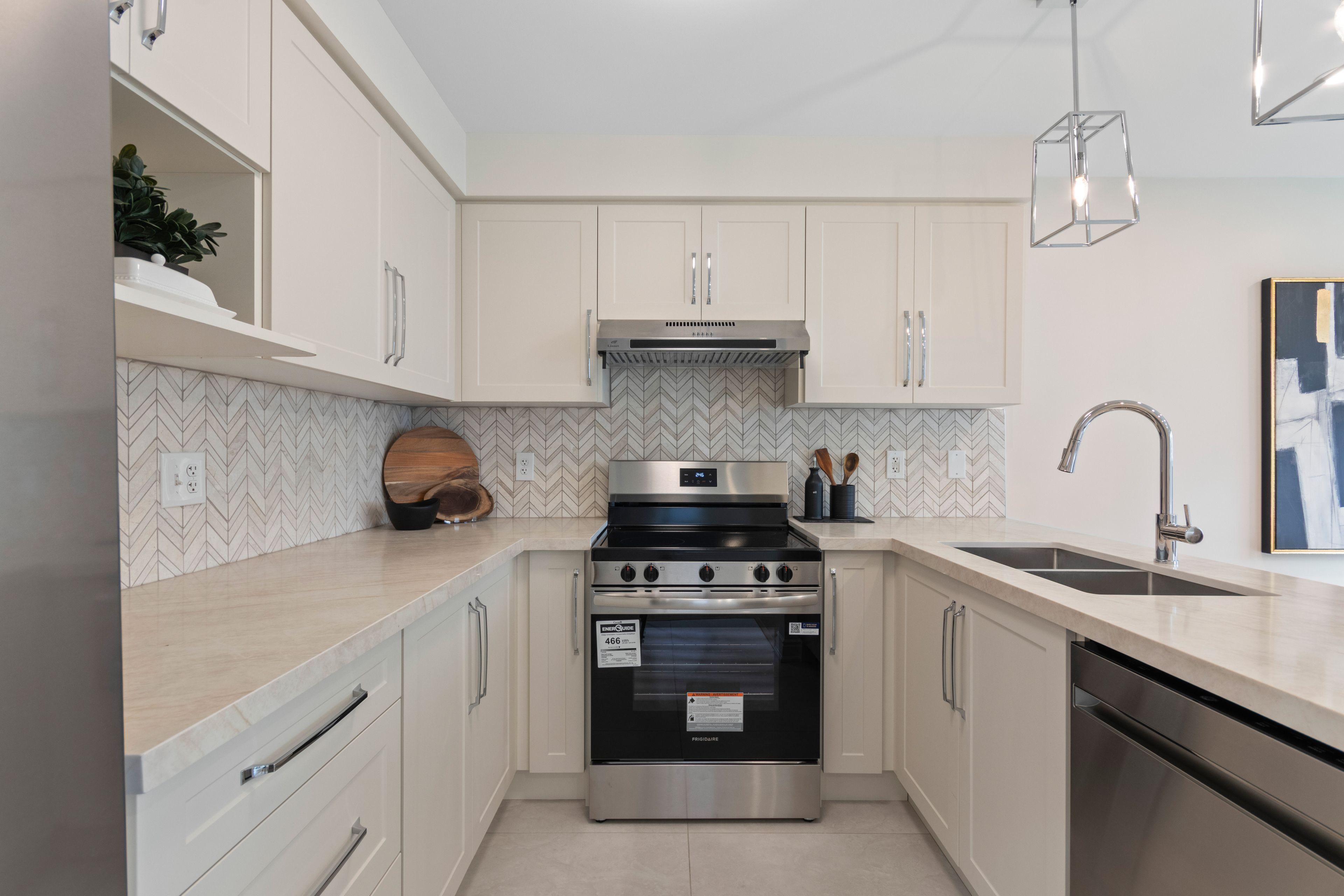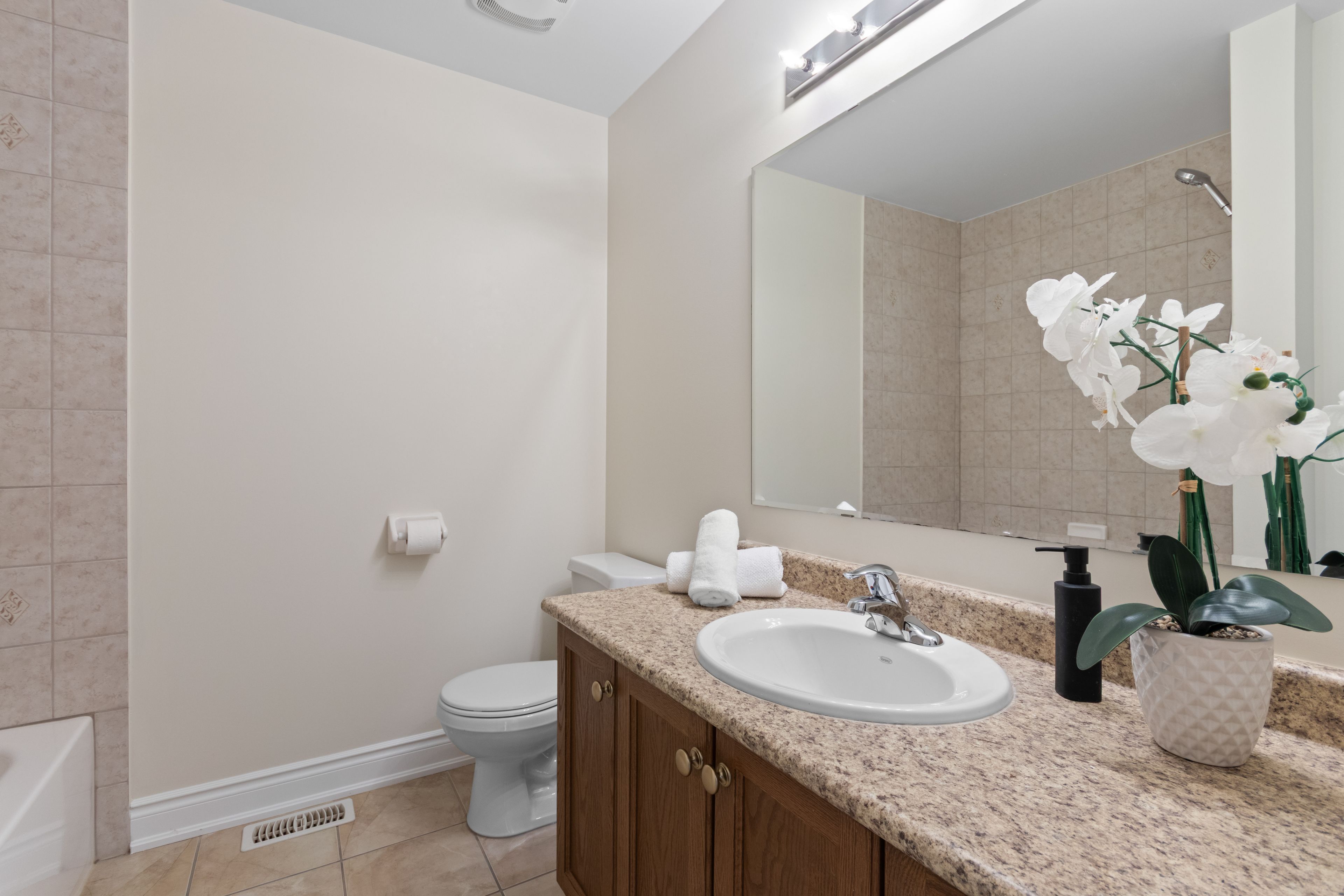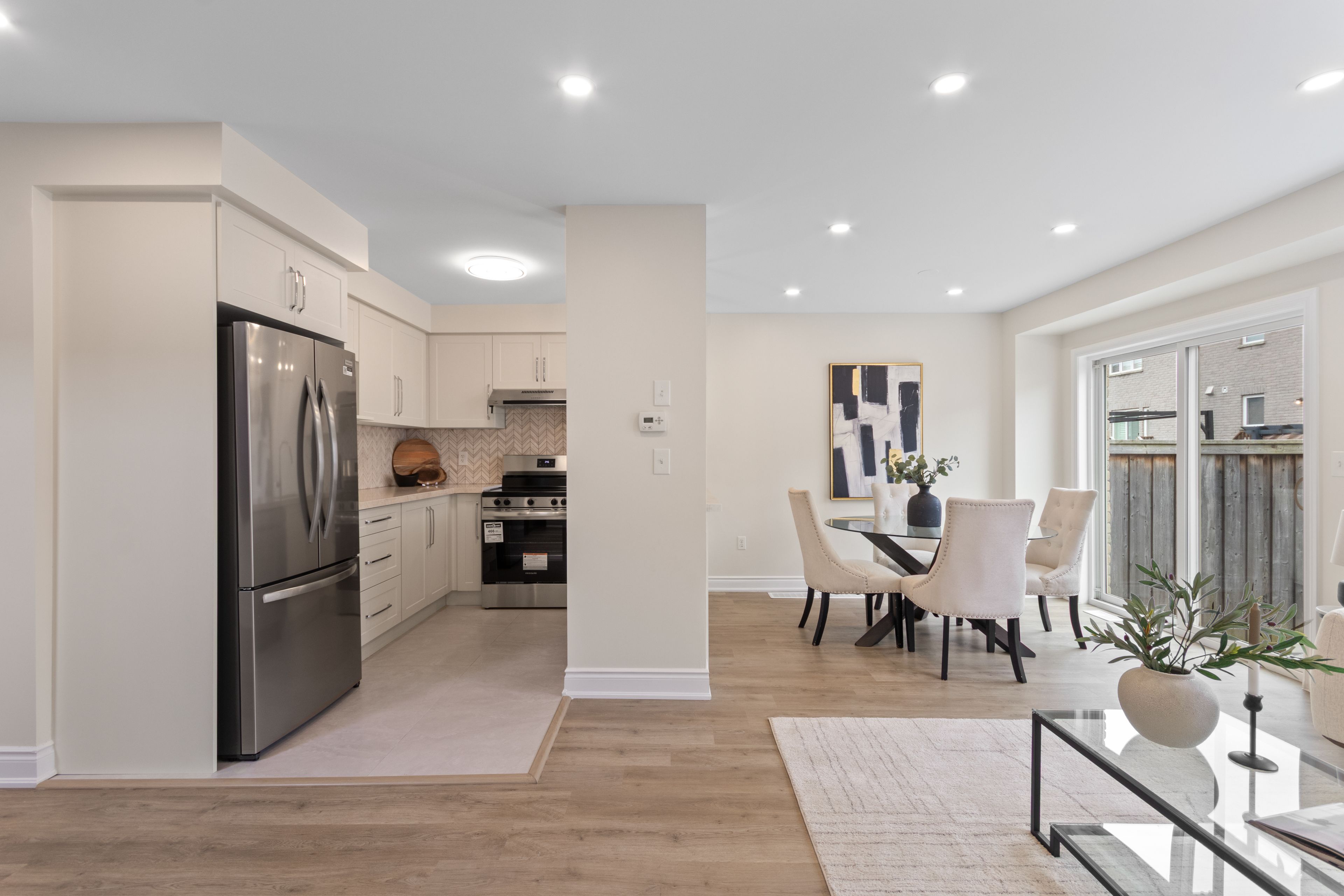 • Entirely carpet-free with modern tile and vinyl plank flooring throughout.