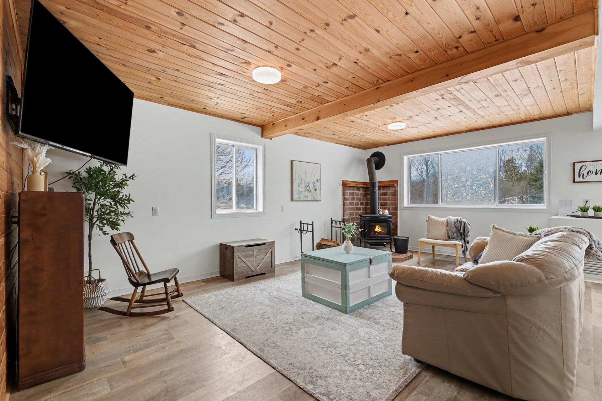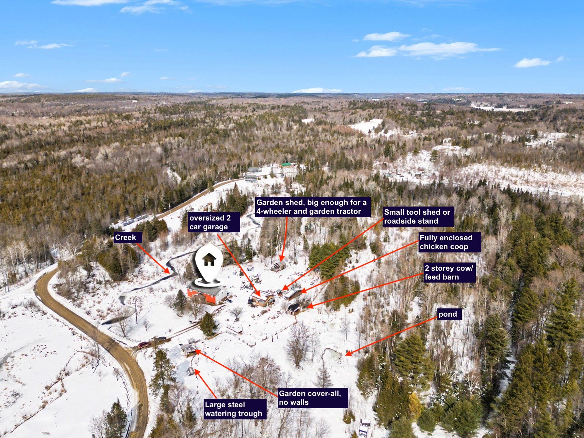 Welcome to 4237 bell line road, a country lover's dream and the perfect setting for those seeking a peaceful, self-sufficient lifestyle with hobby farm potential. Ideally located on a quiet road yet only 5 minutes from highway 7, this beautiful property offers the best of rural living with convenient access to nearby amenities. Set on 13. 6 acres of rolling hills and mature forest, the property features stunning rock outcroppings, a private pond, and a gentle creek flowing alongside the land. Enjoy collecting fresh eggs from the chicken coop or harvesting vegetables from your private garden, while nearby recreational trails offer endless opportunities for year-round outdoor enjoyment. The home offers 2400+ sq ft as per listing floor plan, 4 bedrooms and 2 full bathrooms, second level laundry room with deck access, plus a large den used as an office and recreation space on the second level. The bright, open main floor features a welcoming country kitchen, dining area with yard access, and a cozy living room with wood stove. A full bathroom and utility room/basement complete the main level. Many areas of the home have been freshly painted with new flooring installed on stairs and den as well as in the laundry room. The home can be heated with an exterior wood furnace, with wood easily harvested from the property; an additional propane furnace was installed in 2026. Outside you'll find a large garage, utility shed, a two storey cow/feed barn, and two chicken coops. School bus service stops right at the driveway, and the road is prioritized for winter maintenance as part of the bus route. Located just 10 minutes from sharbot lake, where you'll find grocery, pharmacy, bank, marina, restaurants, brewery, lcbo, schools, parks, and a beautiful public beach. If you are looking for space, privacy, and a connection to nature without sacrificing convenience, 4237 bell line road offers a rare opportunity to enjoy the very best of country living.