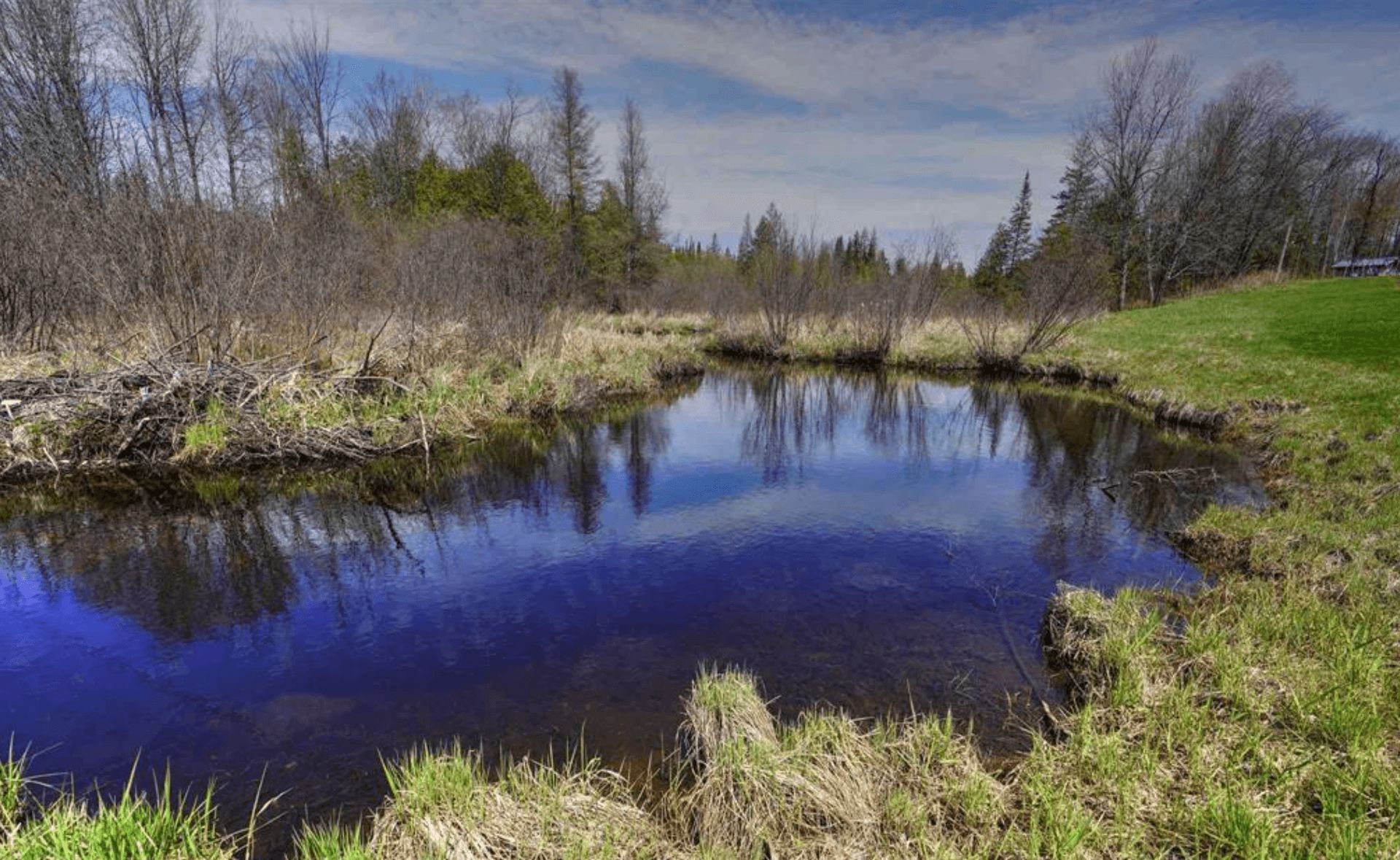 • Located on 13.6 acres with rolling hills, mature forest, and a creek.