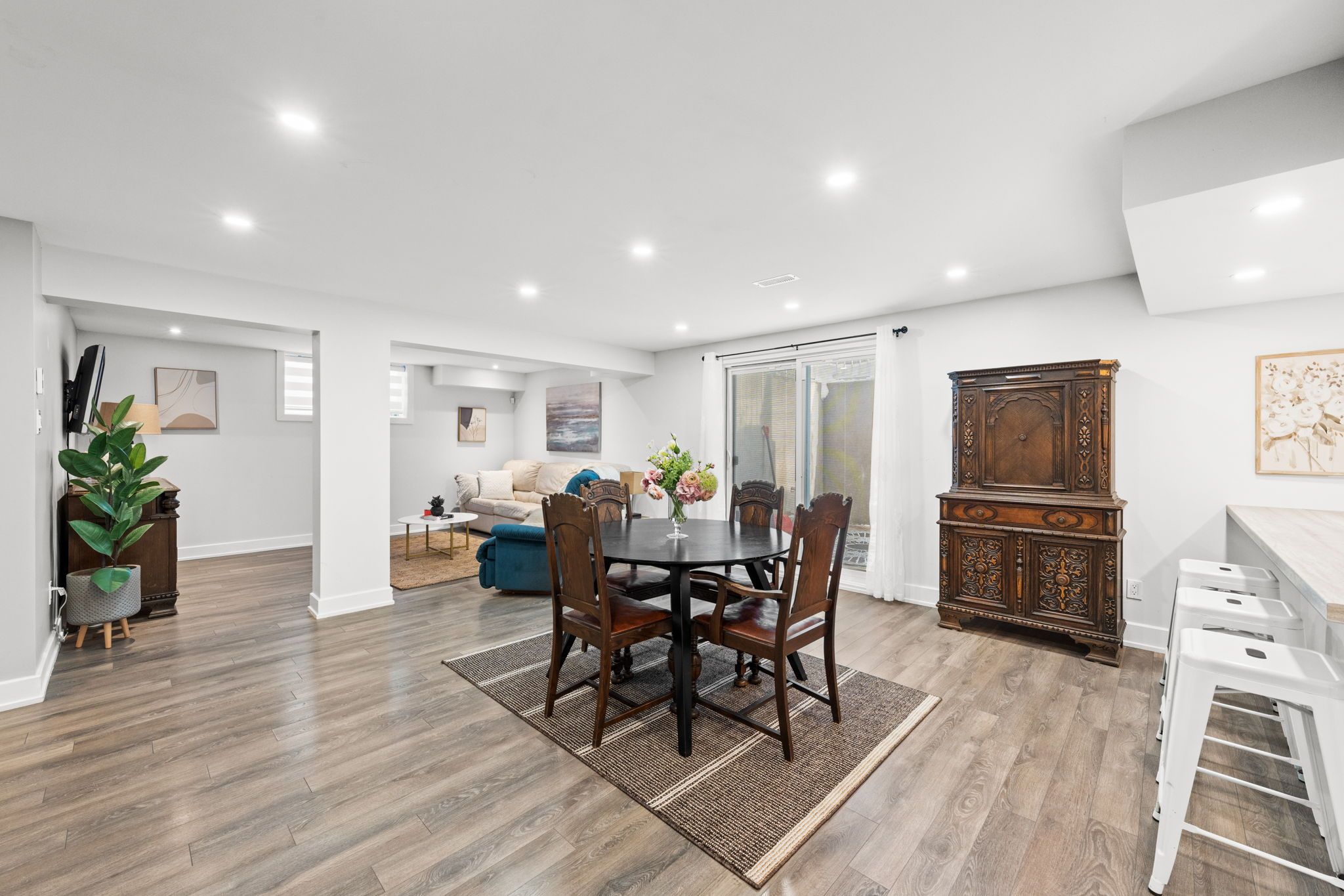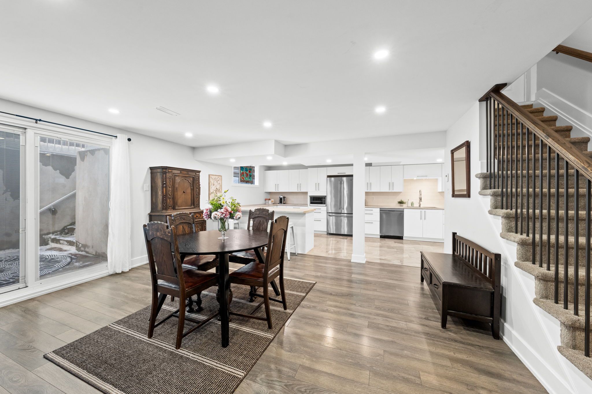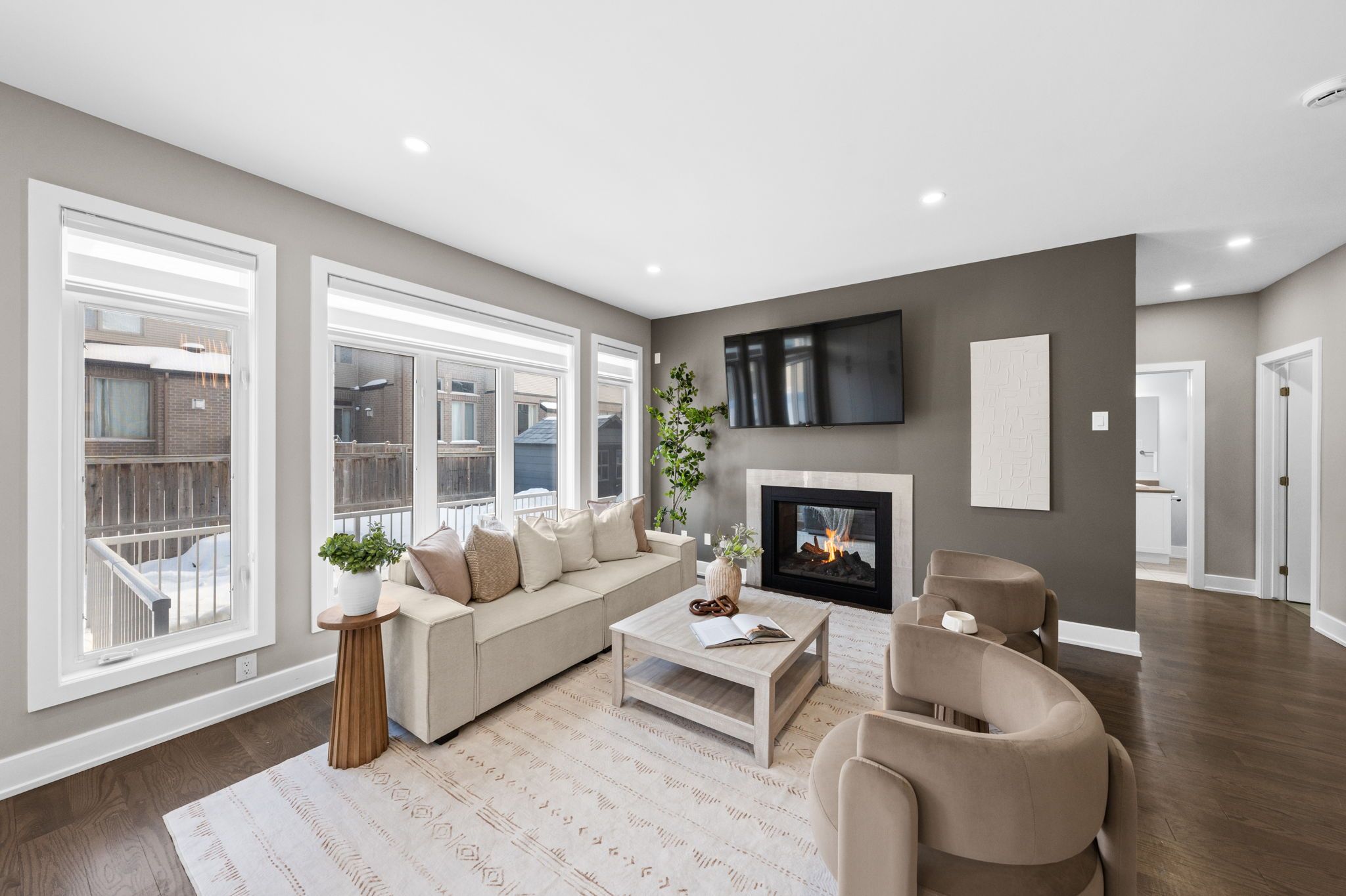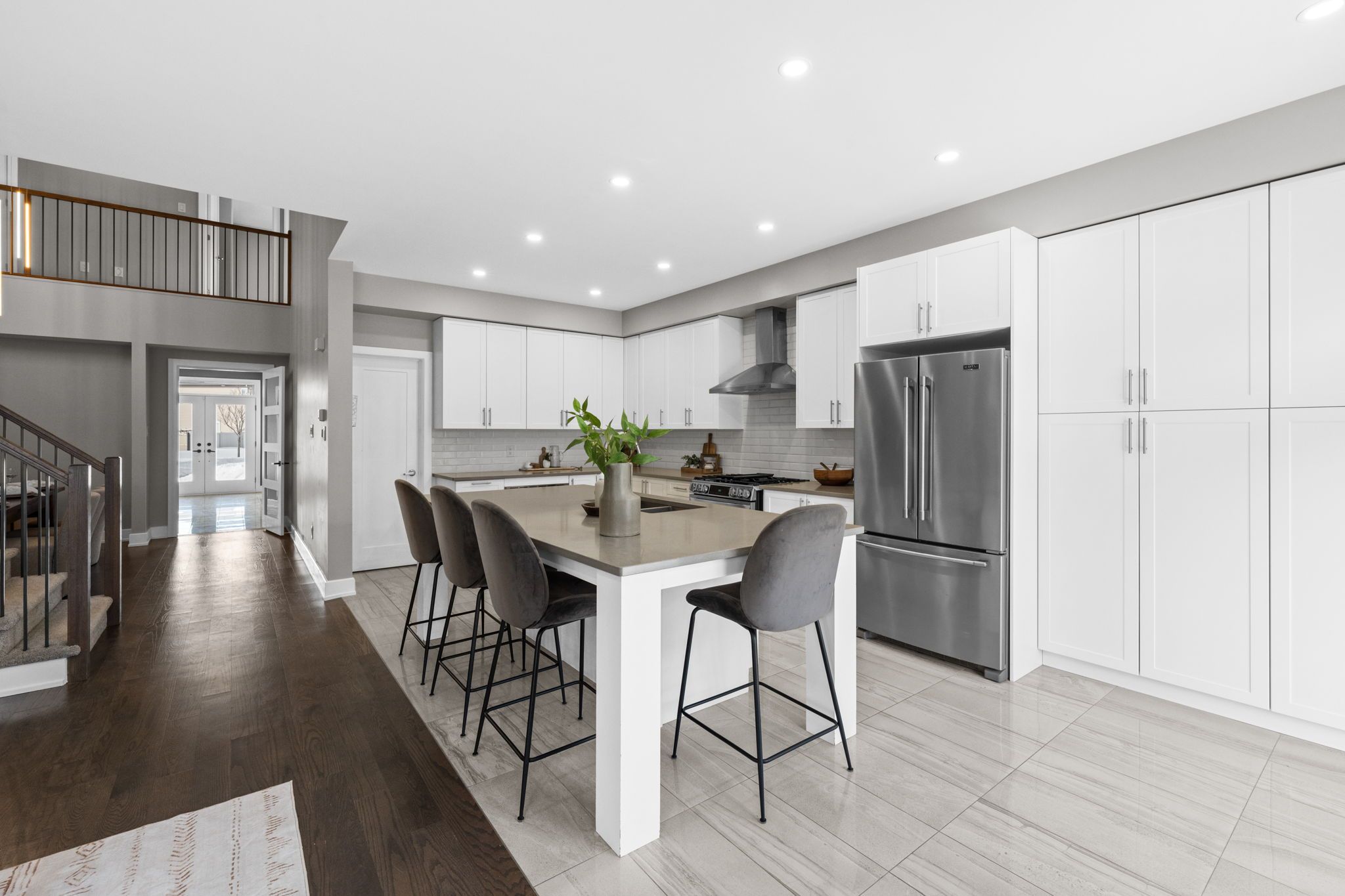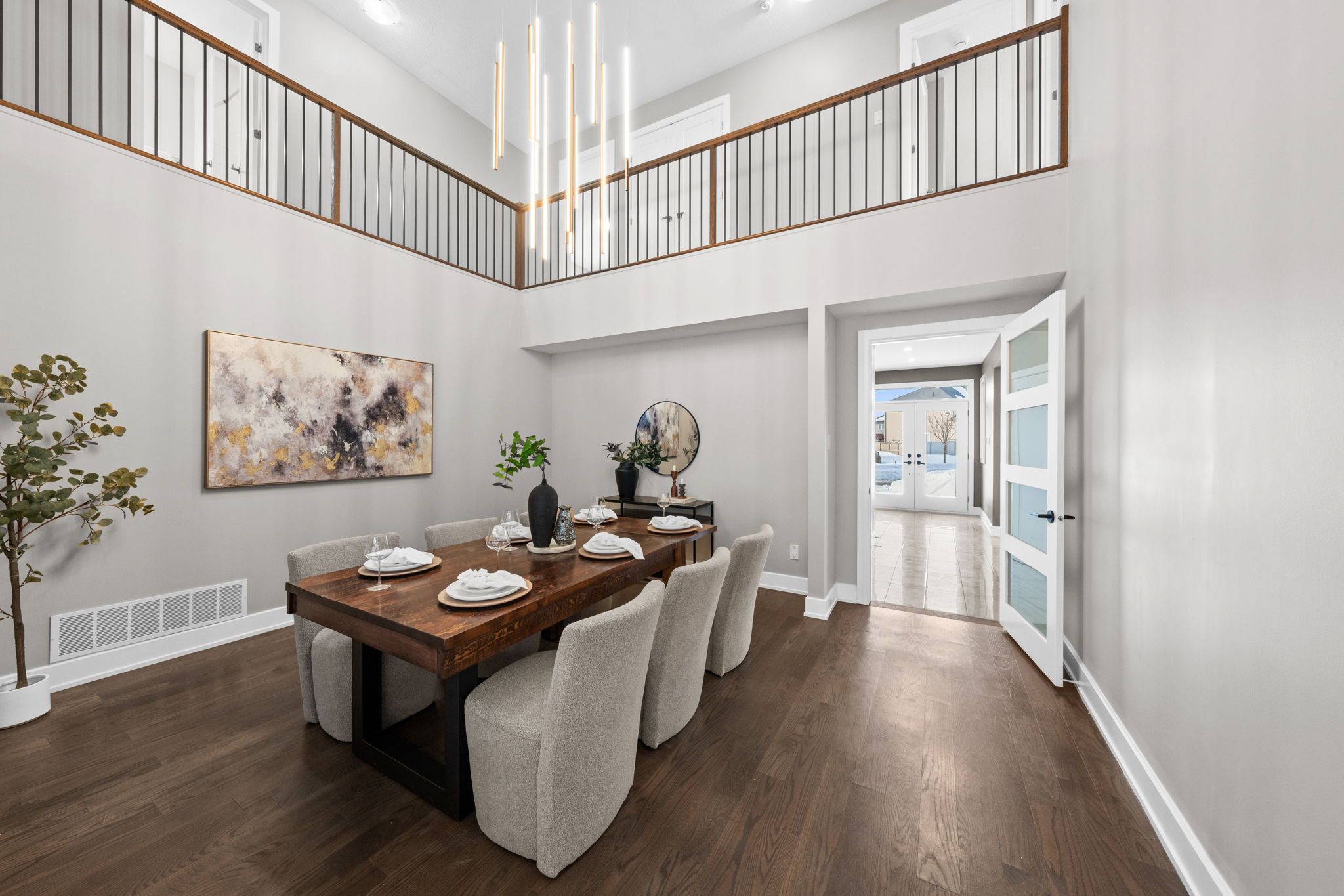 Welcome to 424 golden springs drive, offering over 5,400 sq. Ft. Of finished living space on a premium pie-shaped lot in sought-after riverside south. Designed for sophistication, functionality, and multigenerational living, homes of this size and versatility are rare. A grand entrance opens to an expansive main floor with soaring ceilings and a smart layout. A private enclosed flex space is ideal for a home office, gym, or formal living room. The open-concept kitchen features quartz countertops, stainless steel appliances, abundant cabinetry, an oversized island with seating, and a large walk-in pantry, flowing into the dining and family rooms with a double-sided gas fireplace. An additional flex space off the family room offers versatility as a playroom, office, or lounge. A spacious mudroom and laundry area with garage access and a separate side entrance add convenience and direct lower-level access. The second level offers five generous bedrooms and three full bathrooms. The primary suite includes a large walk-in closet and spa-inspired ensuite with soaker tub and glass shower. One bedroom features a jack and jill bath, another has a private ensuite, and four bedrooms include walk-in closets. The fully finished lower level offers a legal secondary dwelling with separate entrance, two bedrooms, two bathrooms, a full kitchen, living and dining areas, separate laundry, radiant floor heating, and ample storage, ideal for extended family or income potential. The pool-sized pie-shaped lot includes a deck and gazebo, welcoming front porch, extended stone walkway, and extra parking. Located steps to parks, schools, trails, and minutes to shopping and amenities, this exceptional riverside south home combines space, comfort, and flexibility.