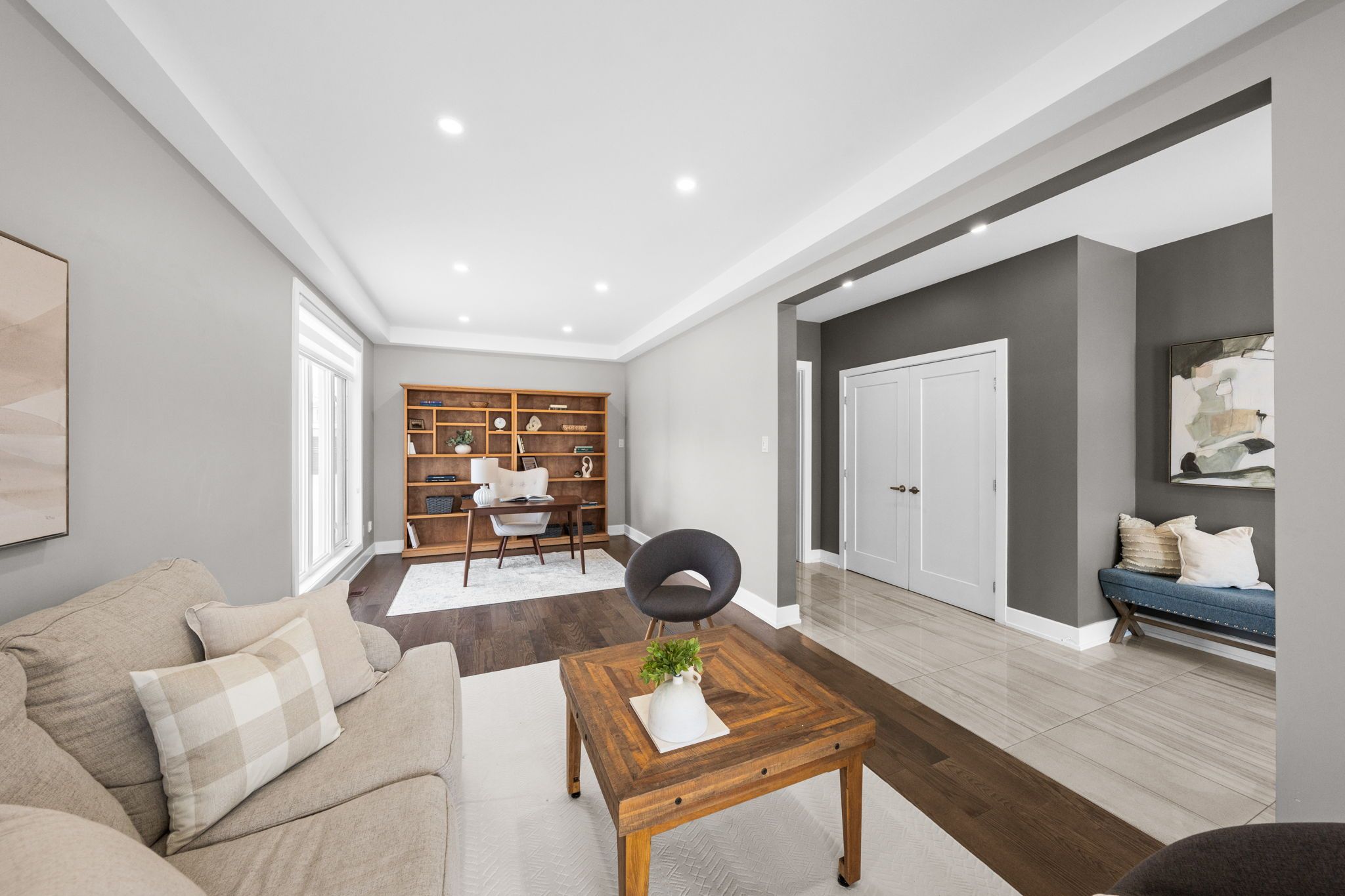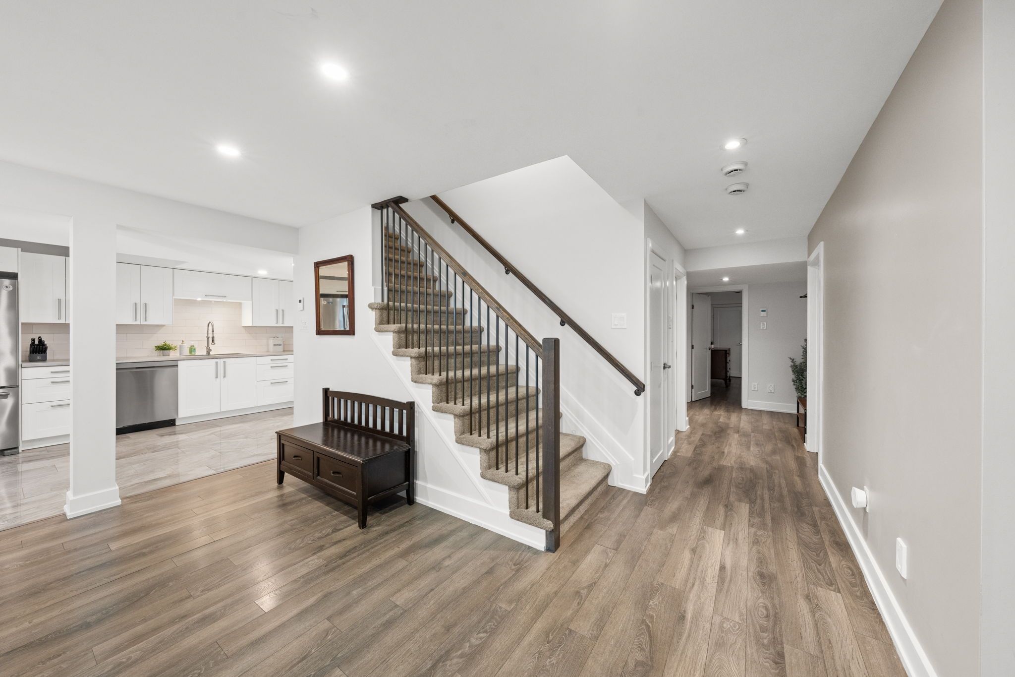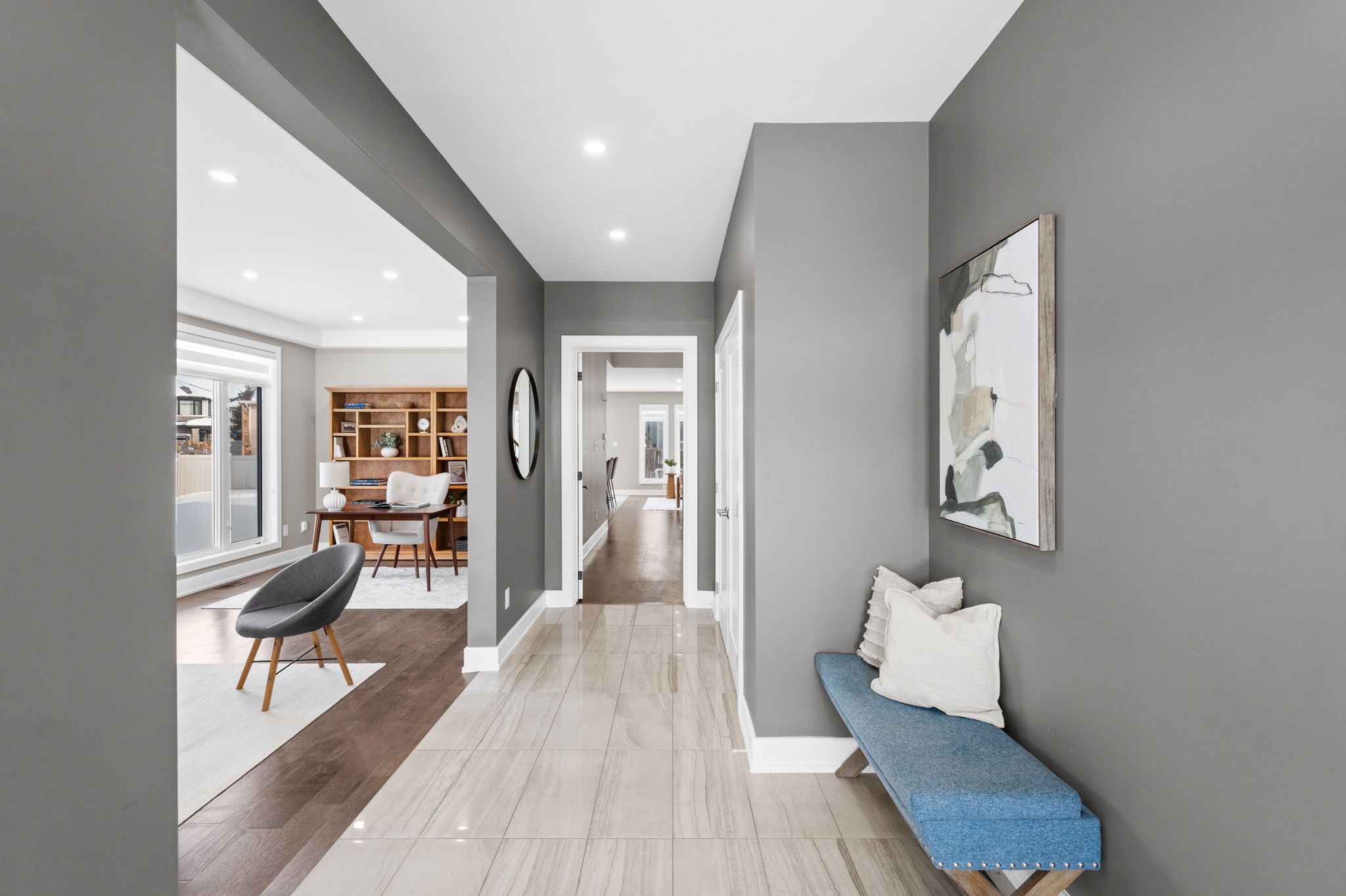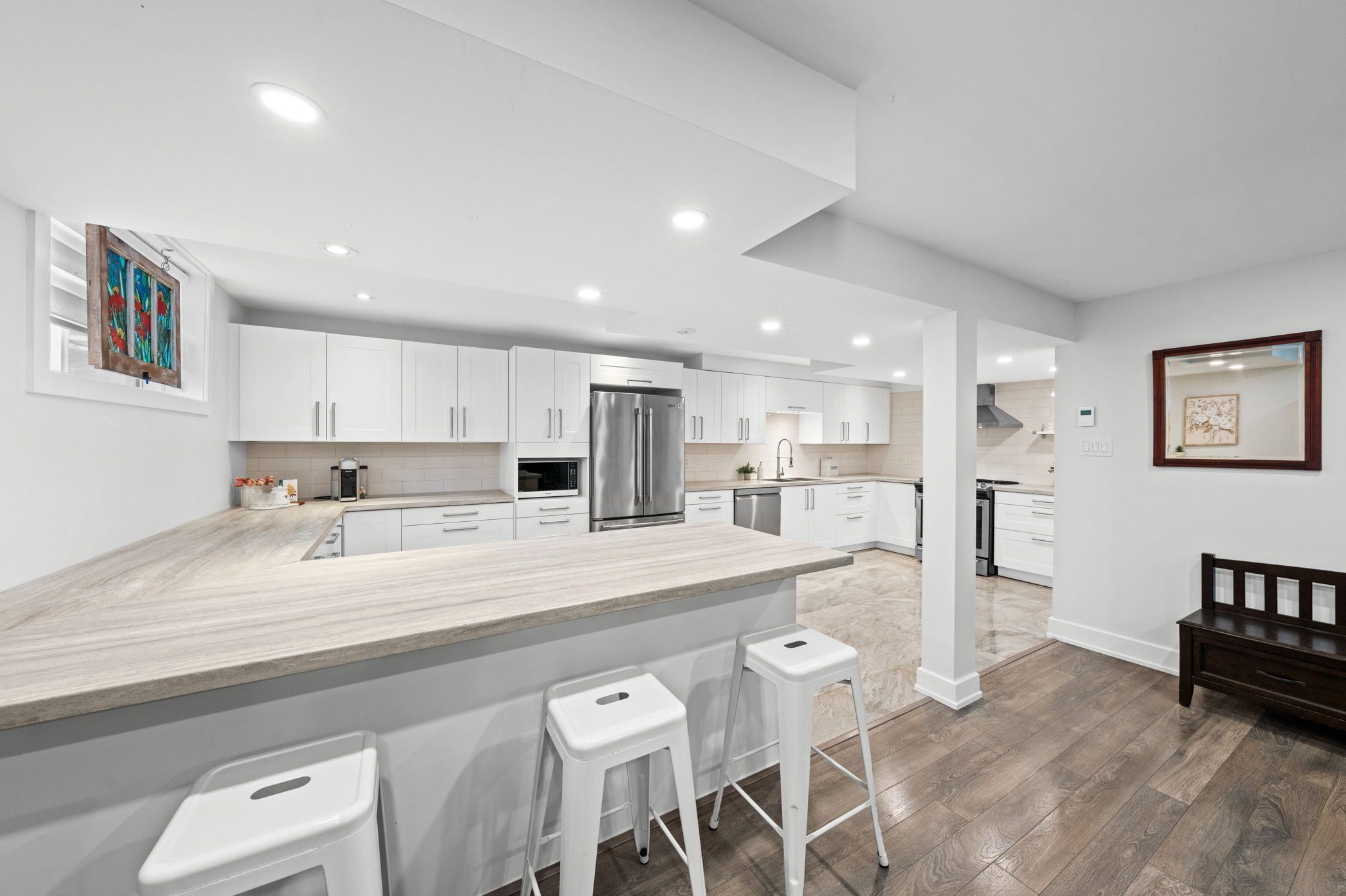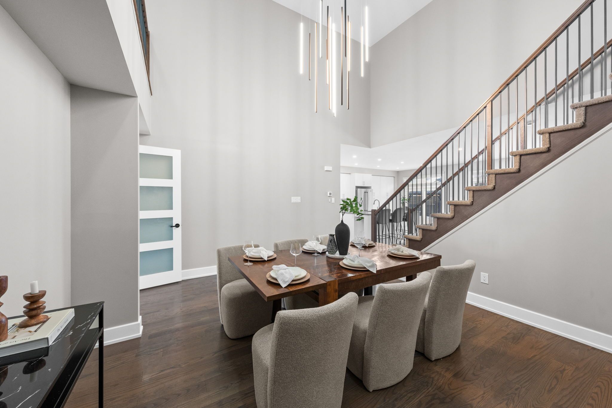 Welcome to 424 golden springs drive, offering over 5,400 sq. Ft. Of finished living space on a premium pie-shaped lot in sought-after riverside south. Designed for sophistication, functionality, and multigenerational living, homes of this size and versatility are rare. A grand entrance opens to an expansive main floor with soaring ceilings and a smart layout. A private enclosed flex space is ideal for a home office, gym, or formal living room. The open-concept kitchen features quartz countertops, stainless steel appliances, abundant cabinetry, an oversized island with seating, and a large walk-in pantry, flowing into the dining and family rooms with a double-sided gas fireplace. An additional flex space off the family room offers versatility as a playroom, office, or lounge. A spacious mudroom and laundry area with garage access and a separate side entrance add convenience and direct lower-level access. The second level offers five generous bedrooms and three full bathrooms. The primary suite includes a large walk-in closet and spa-inspired ensuite with soaker tub and glass shower. One bedroom features a jack and jill bath, another has a private ensuite, and four bedrooms include walk-in closets. The fully finished lower level offers a legal secondary dwelling with separate entrance, two bedrooms, two bathrooms, a full kitchen, living and dining areas, separate laundry, radiant floor heating, and ample storage, ideal for extended family or income potential. The pool-sized pie-shaped lot includes a deck and gazebo, welcoming front porch, extended stone walkway, and extra parking. Located steps to parks, schools, trails, and minutes to shopping and amenities, this exceptional riverside south home combines space, comfort, and flexibility.
