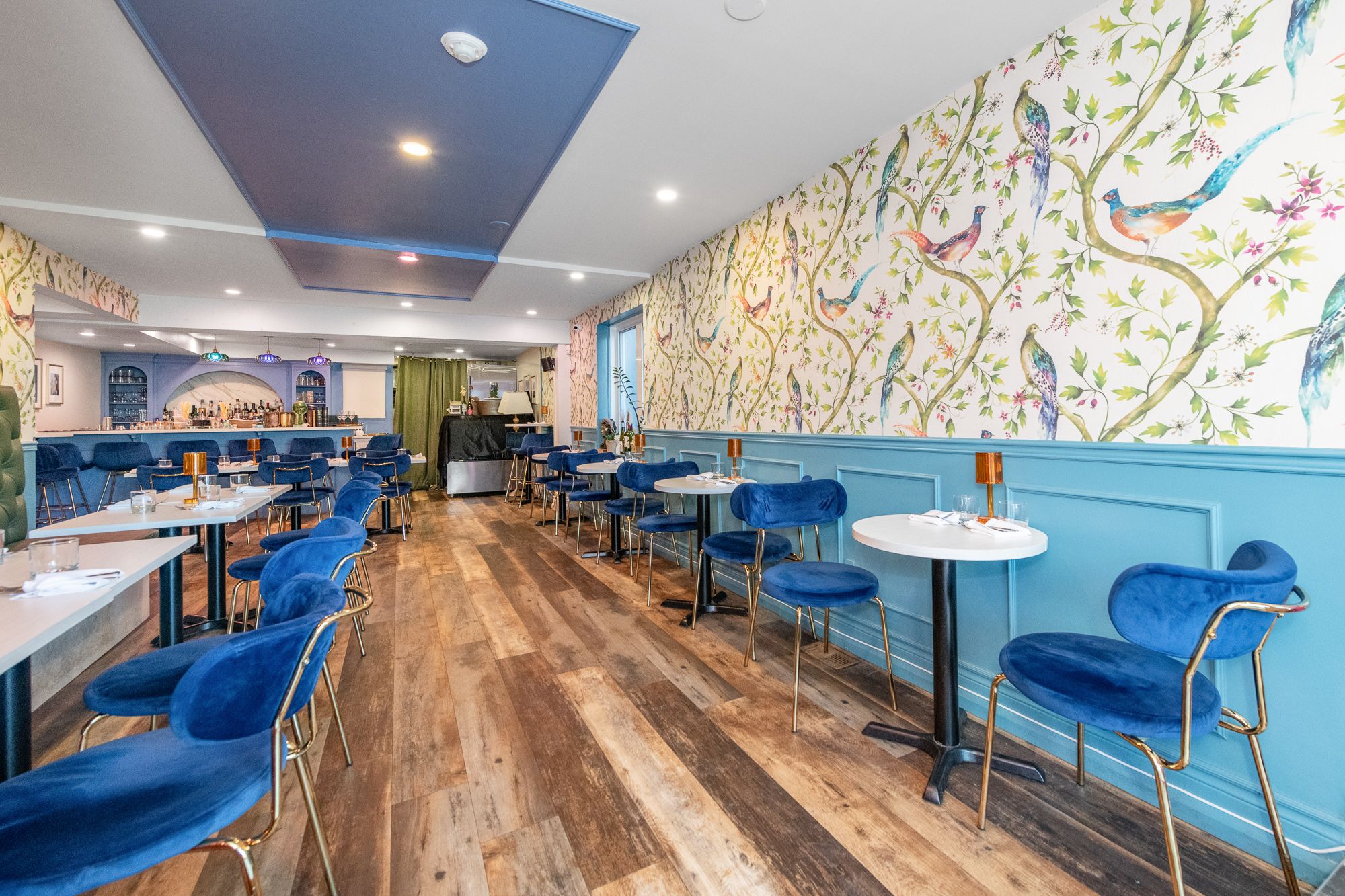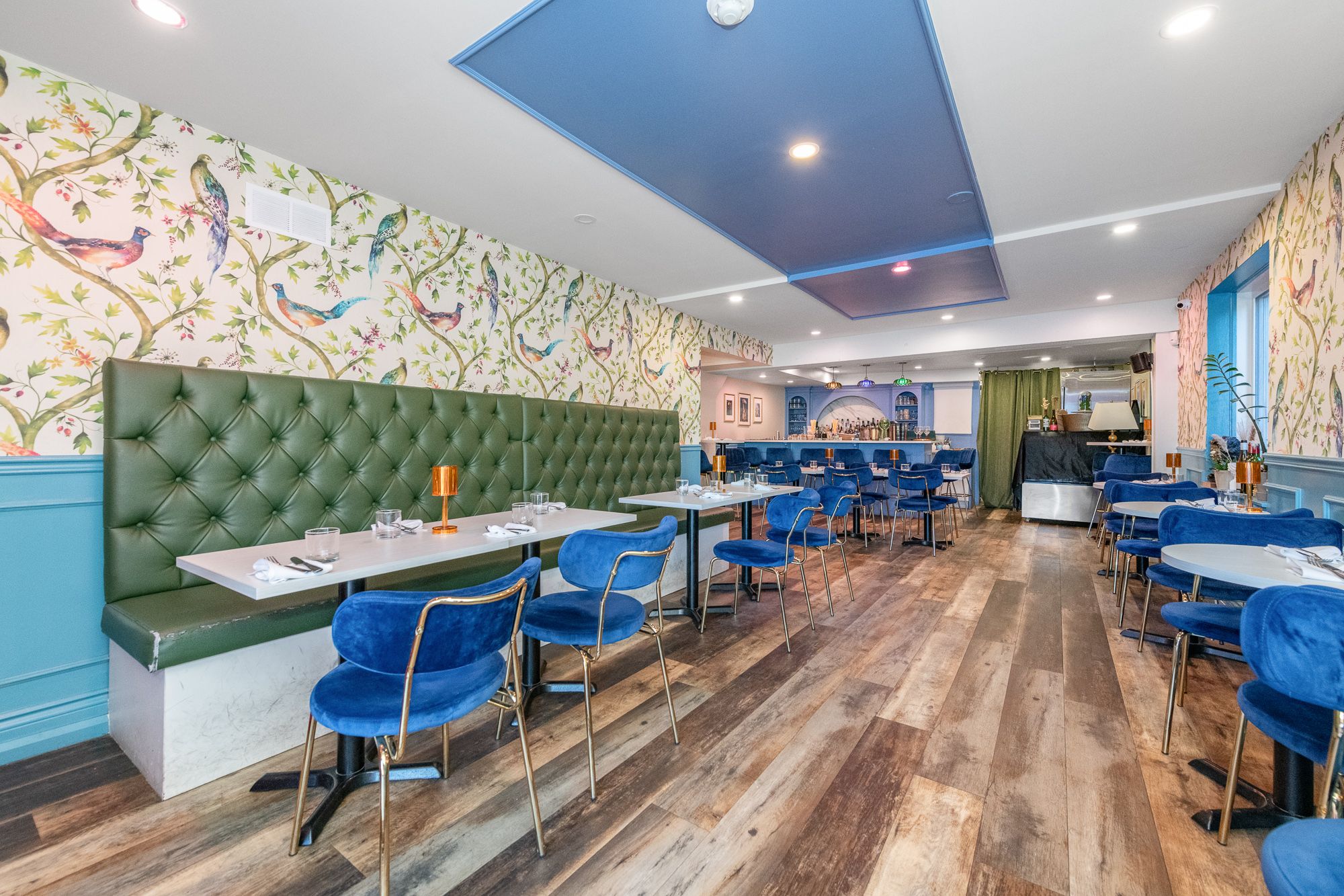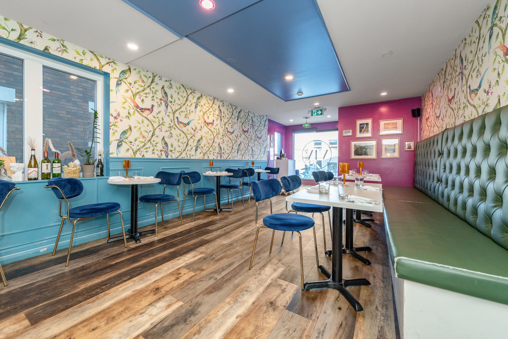 • Spacious interior with seating for 35 guests and a trendy bar.
