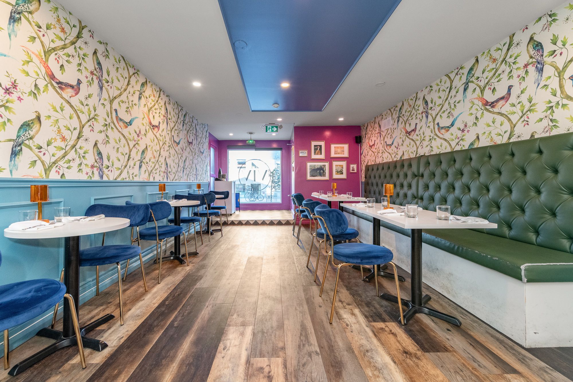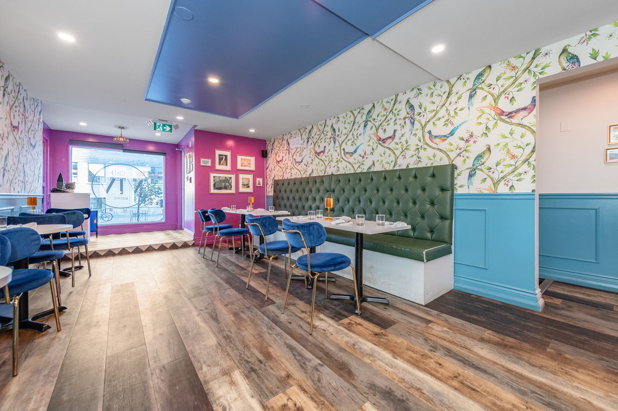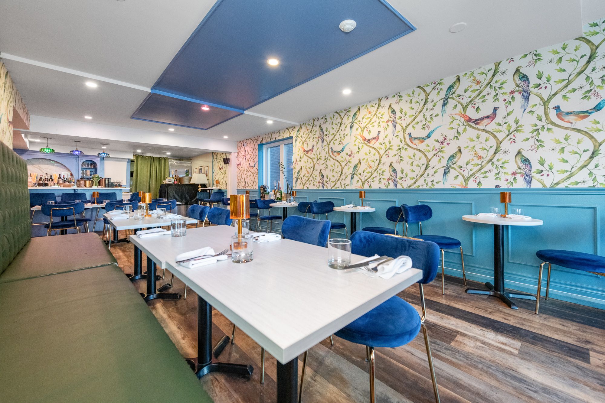 • Spacious interior with seating for 35 guests and a trendy bar.