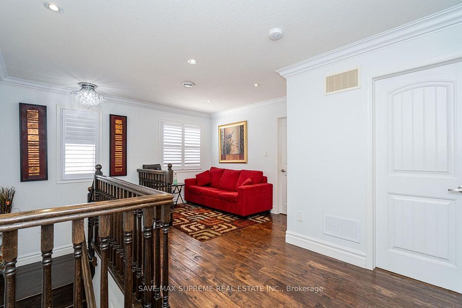 Designer home in most sought neighborhood of scott in milton. Stunning upgrades in this ever popular huxley model. Exquisite wrought iron inserts in front door. Great size combined living and dinning room. Bright and spacious main level offering 9ft ceilings, pot lights, impressive crown molding, designer series hardwood flooring thru out. Family room awaits you with stone accent wall and cosy gas fireplace which opens to chefs dream kitchen. Custom designed with rich maple hardwood cupboards, island , granite counters, backsplash w medallion, italian tile flooring. Built in oven/microwave, wolf gas cook top, bosch dishwasher, top of the line sirius series rangehood overlooking a sunny eat in area with patio access to large deck with iron spindles. Main floor also features ugraded laundry area, garage access and side entrance to basement. A beautiful dark hardwood staircase takes you to the upper level with cosy loft perfect for office/music or play area. Double entry master bedroom with a magnificent ensuite featuring a free standing soaker tub and luxurious glass grohe jets separate shower. 4th bdrm offers semi ensuite. Beautifully landscaped front yard with big parking which can accommodate 5 cars not including double garage. Impressive in the evening with exterior pot lights front, back and sides of home. 2 bedroom legal basement apartment best for inlaw suit or can be rented to help for the mortgage. Close to all milton has to offer, schools, parks, shopping.