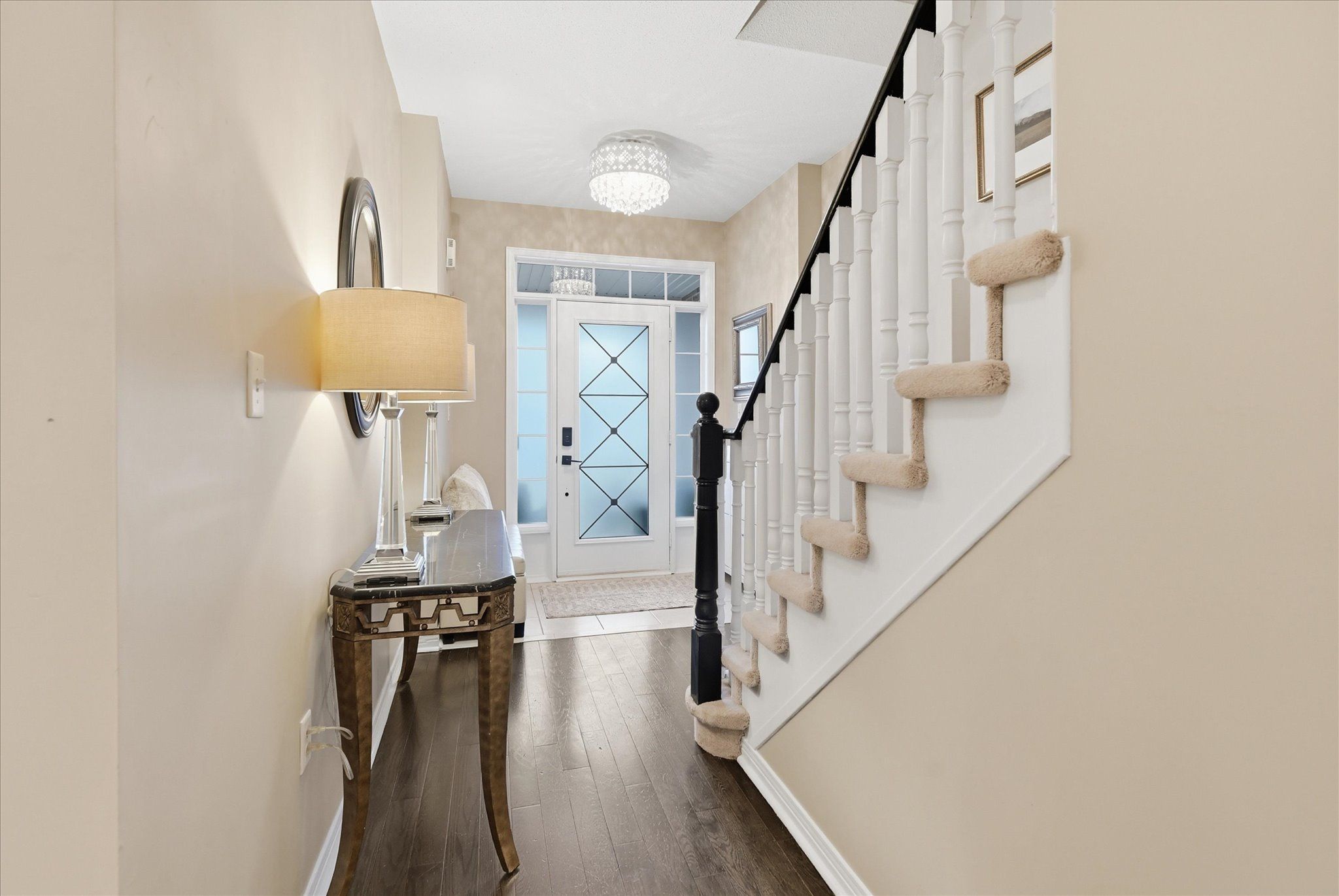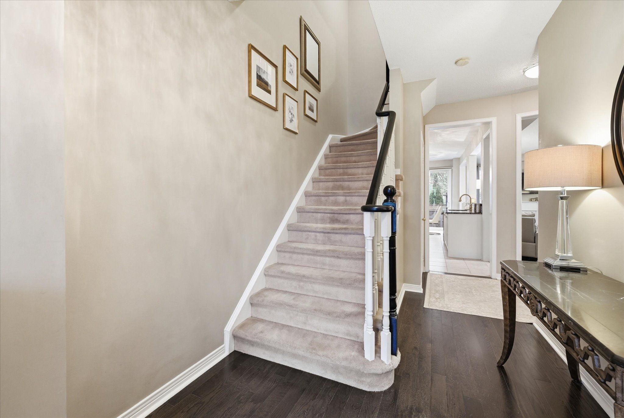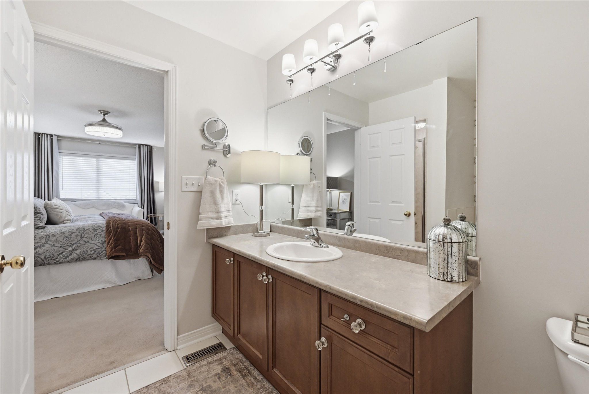 The "heart" of millcroft - 2,246 sq. Ft. Of total finished living space! Experience the pinnacle of luxury in this rare, freehold-with-road-fee townhome, boasting an expansive 2,246 total total sq. Ft. Of meticulously finished living area. Perfectly positioned on a scenic, horseshoe-shaped cul-de-sac, unit 41 offers a level of tranquility and prestige simply unavailable in higher-density complexes. Nestled amidst a sophisticated mix of bungalow towns and directly adjacent to the golf tee, this is the interior millcroft sanctuary you've been waiting for. The main level is designed for connection, featuring an airy open-concept dine-in kitchen that flows seamlessly into the beautiful sweeping living area-perfect for hosting guests, entertaining friends and family or keeping an eye on the kids at play. The inviting kitchen features highend stainless steel appliances, a kitchenaid double-oven gas stove, and stone counters. The living room, anchored by a cozy gas fireplace, offers a versatile layout for a large-scale living area or a sophisticated living/dining room combo. The well-appointed upper level features 3 spacious bedrooms and 2 full bathrooms. The primary retreat is a true standout, boasting a spacious walk-in closet with chandelier and its own window for natural light and an elegant 4-piece ensuite, complete with a separate glass shower and a deep soaker tub. Two additional bedrooms are generously sized and share a second full 4-piece bathroom. The bright finished lower level adds an additional 671 sq. Ft. Of versatile living space-ideal for a recreation room, gym, home office, media room, or combination. Step outside to a private, fully fenced backyard featuring perennial perimeter gardens and a convenient gas bbq hookup. Located within walking distance to top-ranked charles r. Beaudoin public school (french immersion & gifted) and sacred heart catholic school. This is the complete package in millcroft's most serene enclave!
