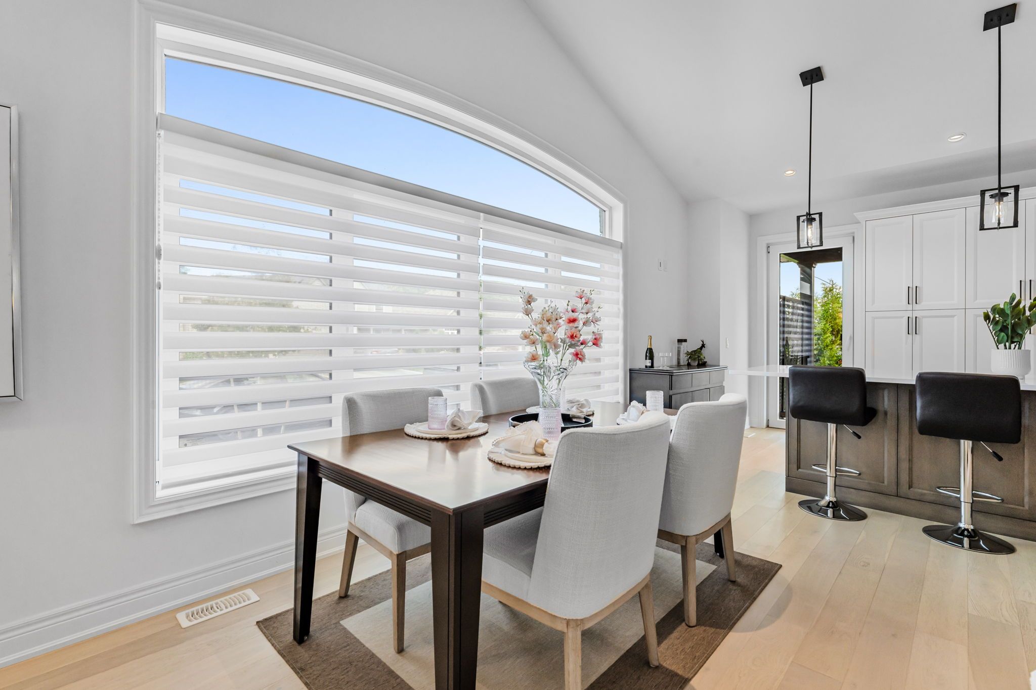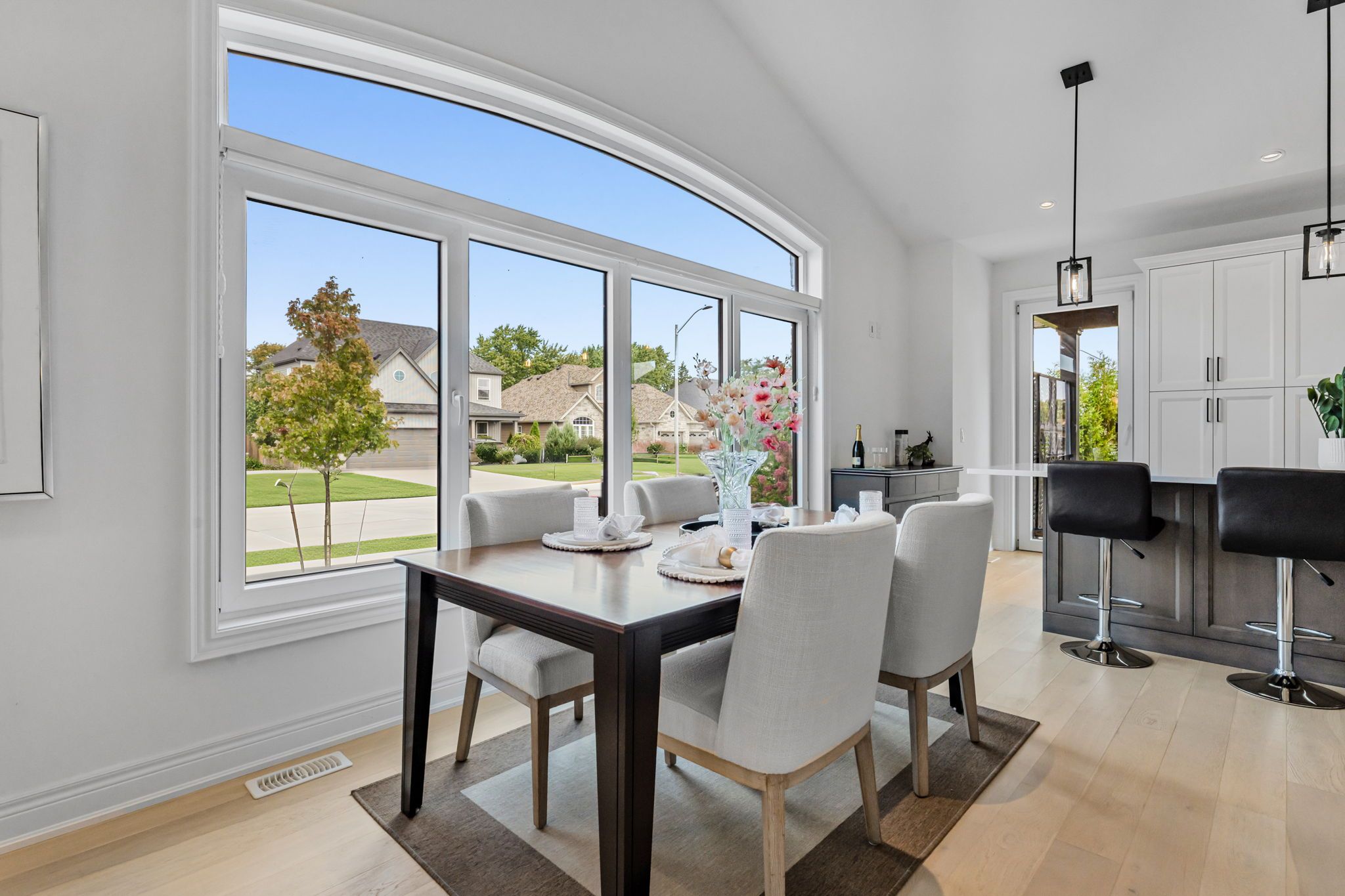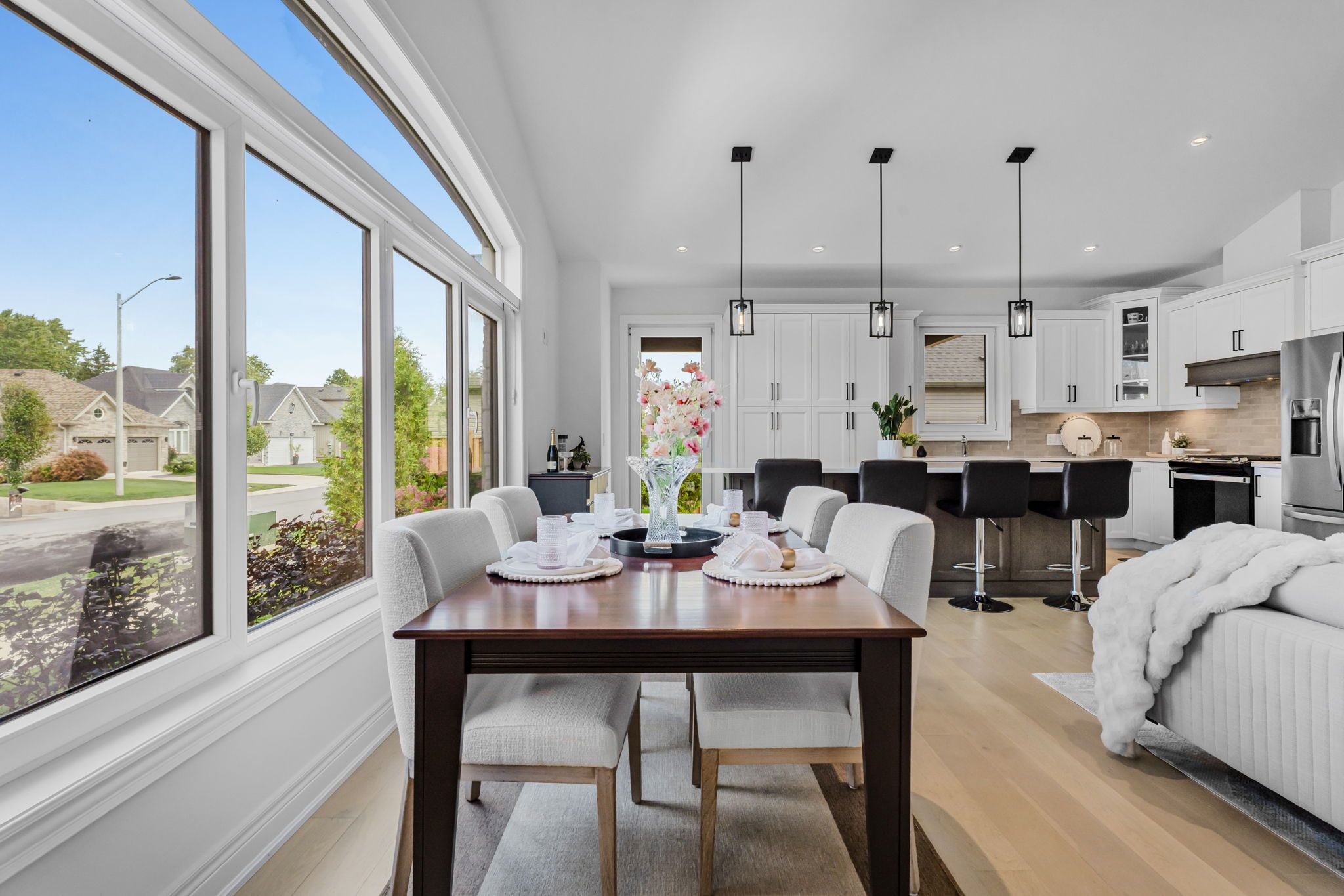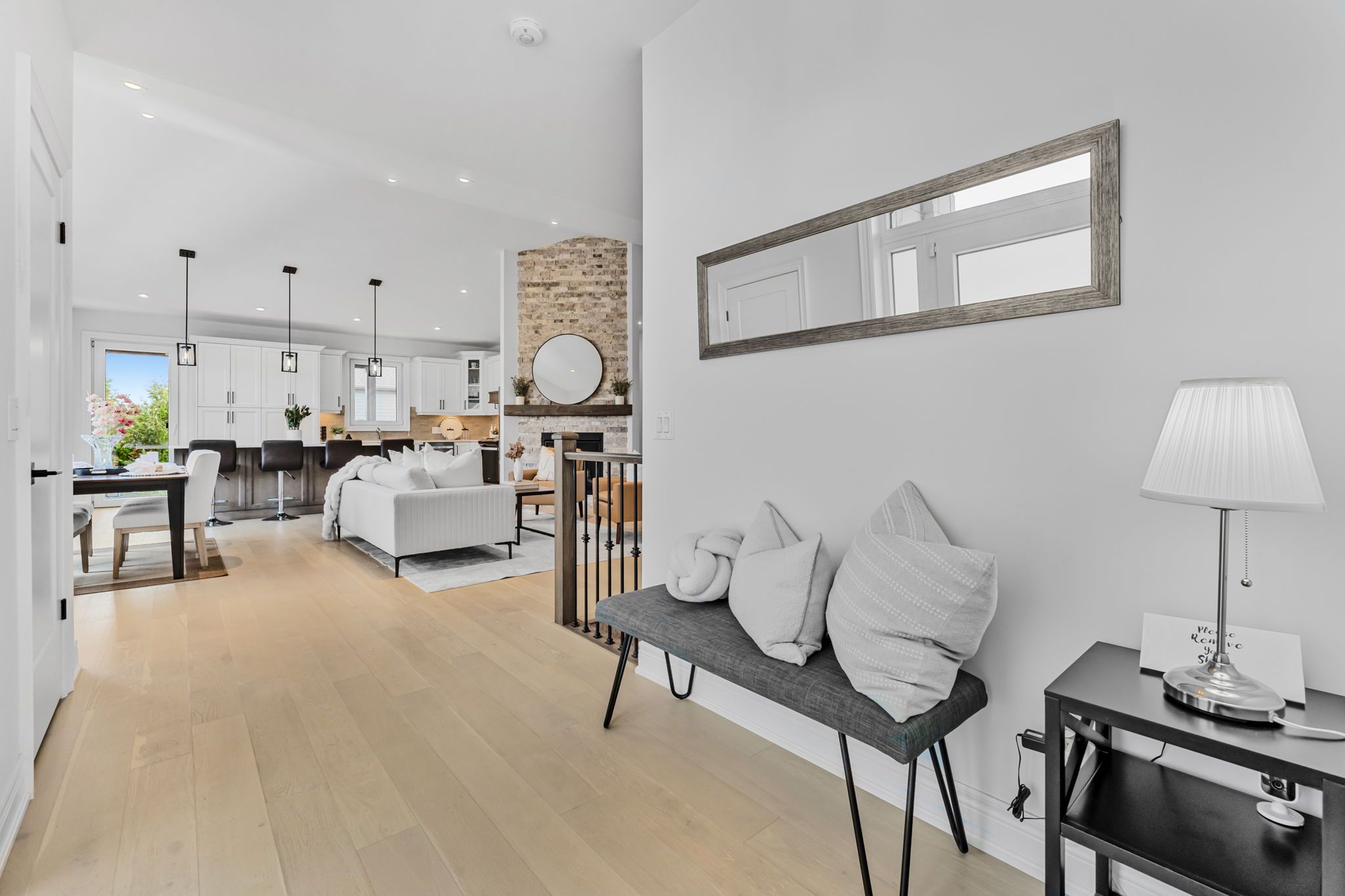 • Open-concept great room with cathedral ceilings and hardwood flooring.
