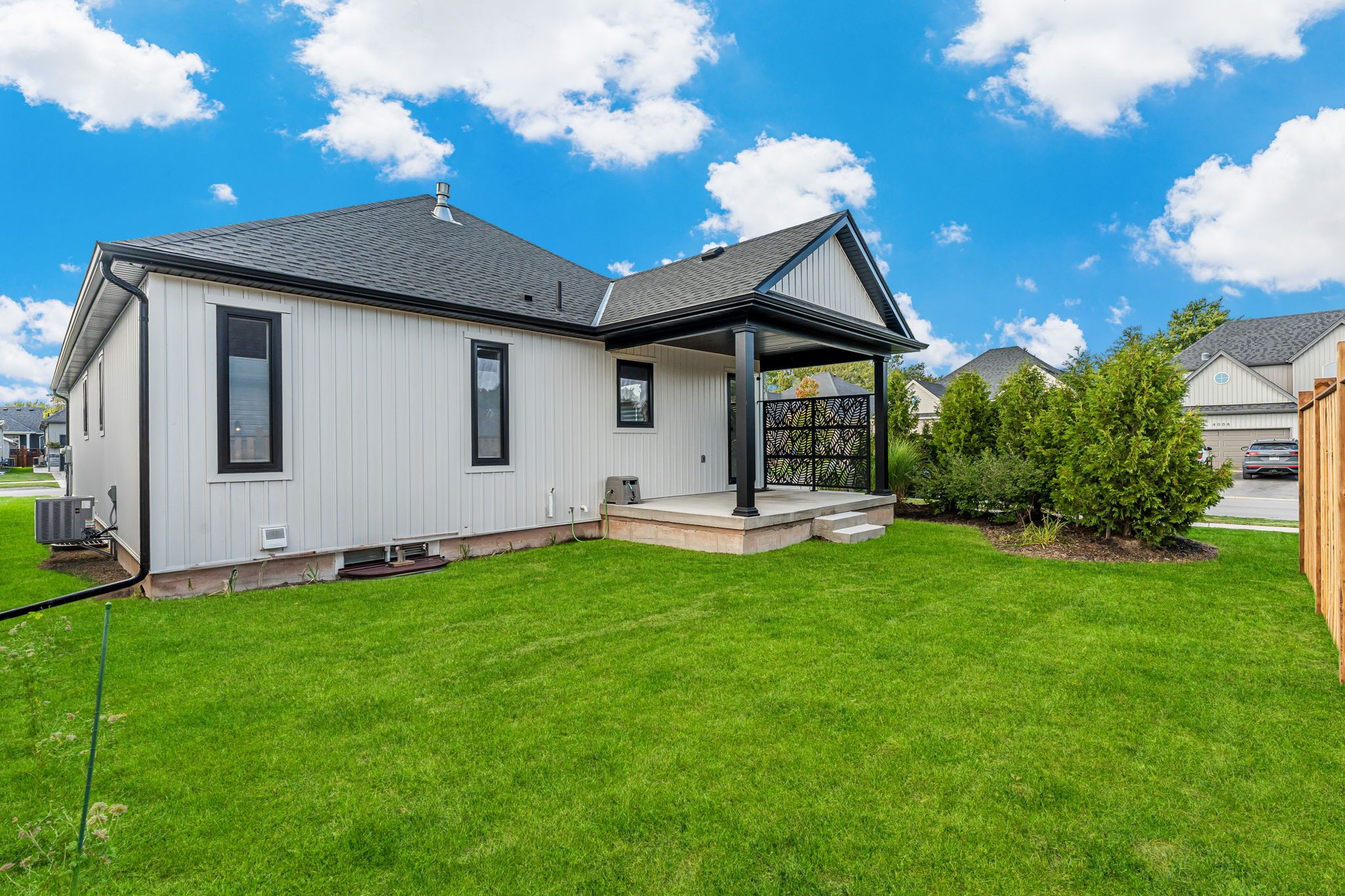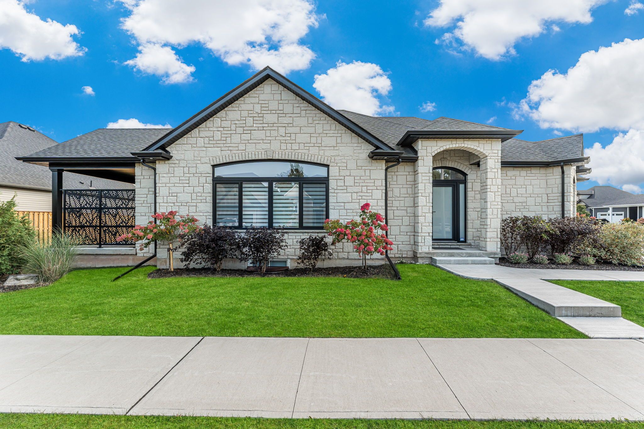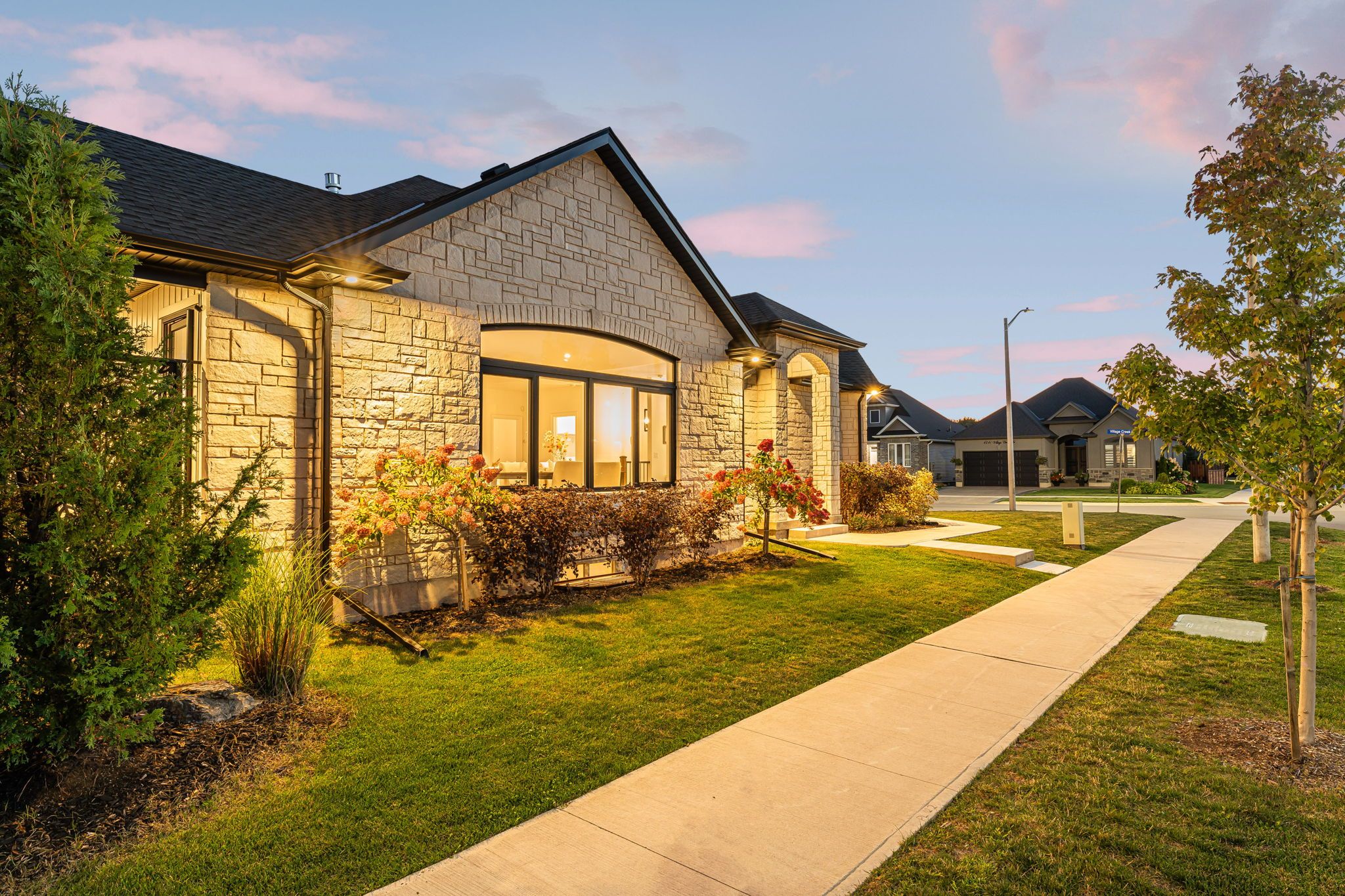 The home you have been waiting for! Welcome to 4242 village creek drive, an exquisite custom-built bungalow in 2022 nestled in the highly desirable village creek community of stevensville. Offering over 2,400sqft of beautifully finished living space, this 3+2 bedroom, 3 bathroom home is a seamless blend of craftsmanship, elegance and modern design. Step into a sunlit open-concept great room with soaring cathedral ceilings, engineered hardwood flooring and sleek european tilt-and-turn windows and doors that elevate both style and functionality. The gourmet kitchen is a true focal point featuring quartz countertops, upgraded cabinetry, premium appliances and a stunning 10-foot island perfect for entertaining. The main floor boasts 9-foot ceilings throughout with a gas fireplace, floor to ceiling stone feature wall and a douglas fir mantle adding warmth and timeless sophistication. The luxurious primary bedroom offers a spa-inspired ensuite with upgraded toilets and walk-in closet, while the fully finished basement adds two bedrooms, a full bathroom and flexible space ideal for a home theatre, gym, office or guest suite. Retreat to the covered back patio for serene mornings or quiet evenings in a beautifully landscaped setting. A concrete driveway leading to a double-car garage provides ample storage and convenience. Set in the charming and peaceful community of stevensville, this family-friendly neighbourhood offers close proximity to the qew, safari niagara, parks, scenic trails, excellent rated schools and the amenities of nearby niagara falls and fort erie. Ideally located just minutes from the new state-of-the-art hospital currently under construction. Whether you're looking for a refined family home or a graceful downsizing opportunity, this exceptional property checks every box. Over 3 years of tarion warranty remains. Book your showing today!