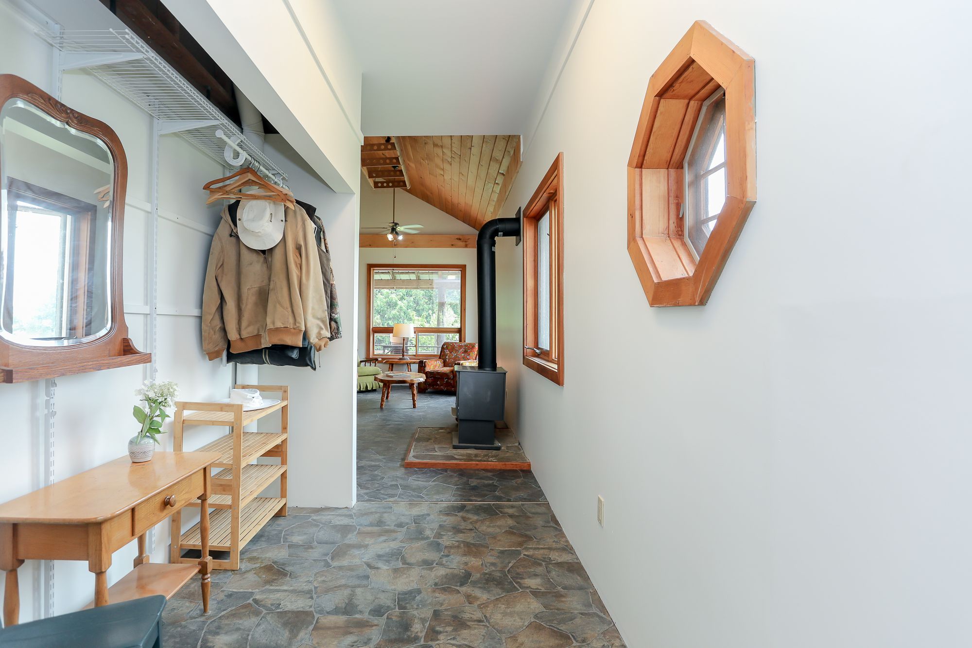 • Grand main floor with 28' ceiling and cozy free-standing gas fireplace.