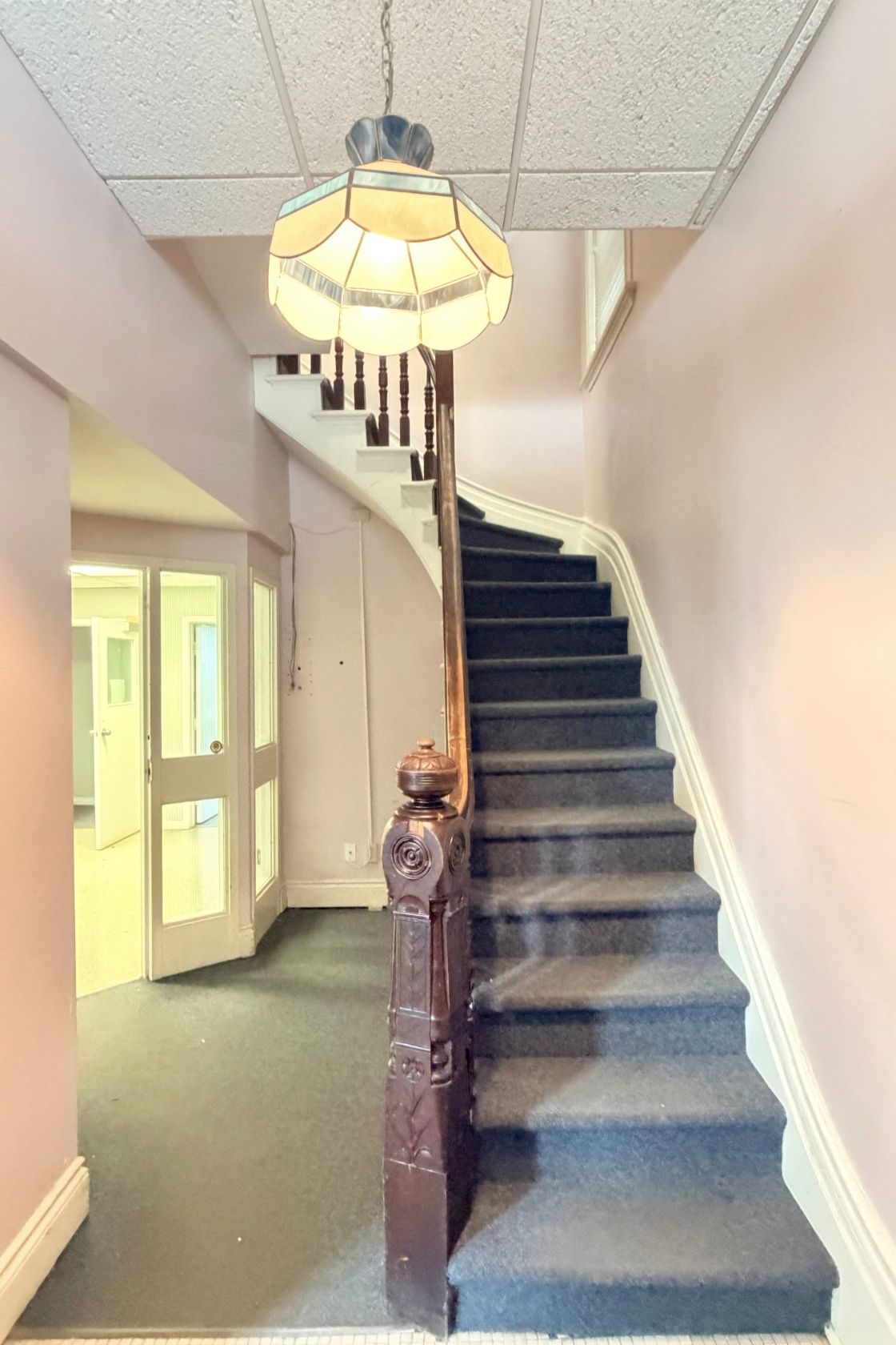 425-427 william street offers a rare opportunity to acquire a distinctive, fully functional multi-level commercial property in the heart of london with exceptional flexibility for future use. The building features unique architectural character highlighted by a rare central carriageway "tunnel" connecting both sides of the property and providing access to a centrally located accessible entrance with elevator. Spanning three levels, the property is configured with over 17 offices, 4 clinic rooms with sinks, multiple common areas, and 4 bathrooms, supporting a wide range of professional, medical, or institutional uses. The main floor includes a reception area, treatment rooms, accessible elevator vestibule, three entrances, and an accessible washroom. The second floor offers 8 offices, a full kitchen, separate men's and women's washrooms, and common space, while the third floor features 5 additional offices, a common area, and a 3-piece bathroom. A fully operational elevator (inspected 2026) and dual staircases provide efficient access throughout. Additional highlights include a flex space for an office, studio, or storage located in the rear yard, 4-6 parking spaces at the front with potential for more at the rear, and updated mechanicals including furnaces (~6 years) and recent fire system inspections (2026). Zoned bdc/or (business district commercial / office residential), the property allows for a wide range of uses including offices, clinics, retail, restaurants, residential units, and mixed-use development, with strong potential for residential or live/work conversion into multiple units. Not heritage designated and located just outside the east woodfield heritage conservation district, this is a rare opportunity to secure a high-functioning, well maintained century building with strong conversion and redevelopment potential in a central london location.