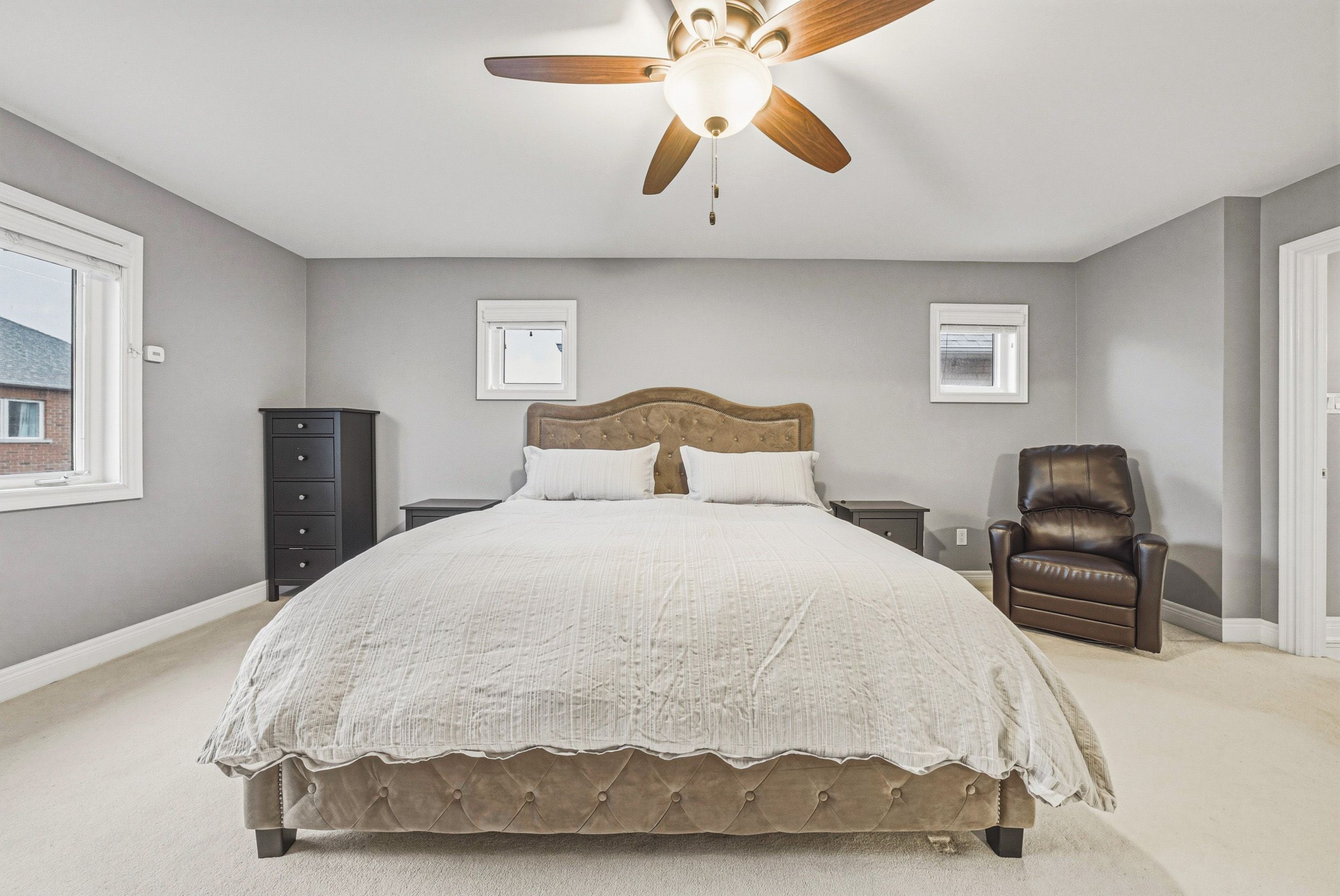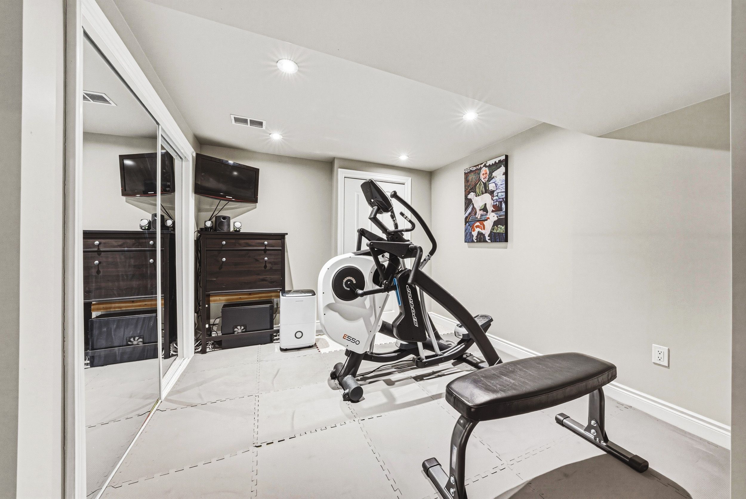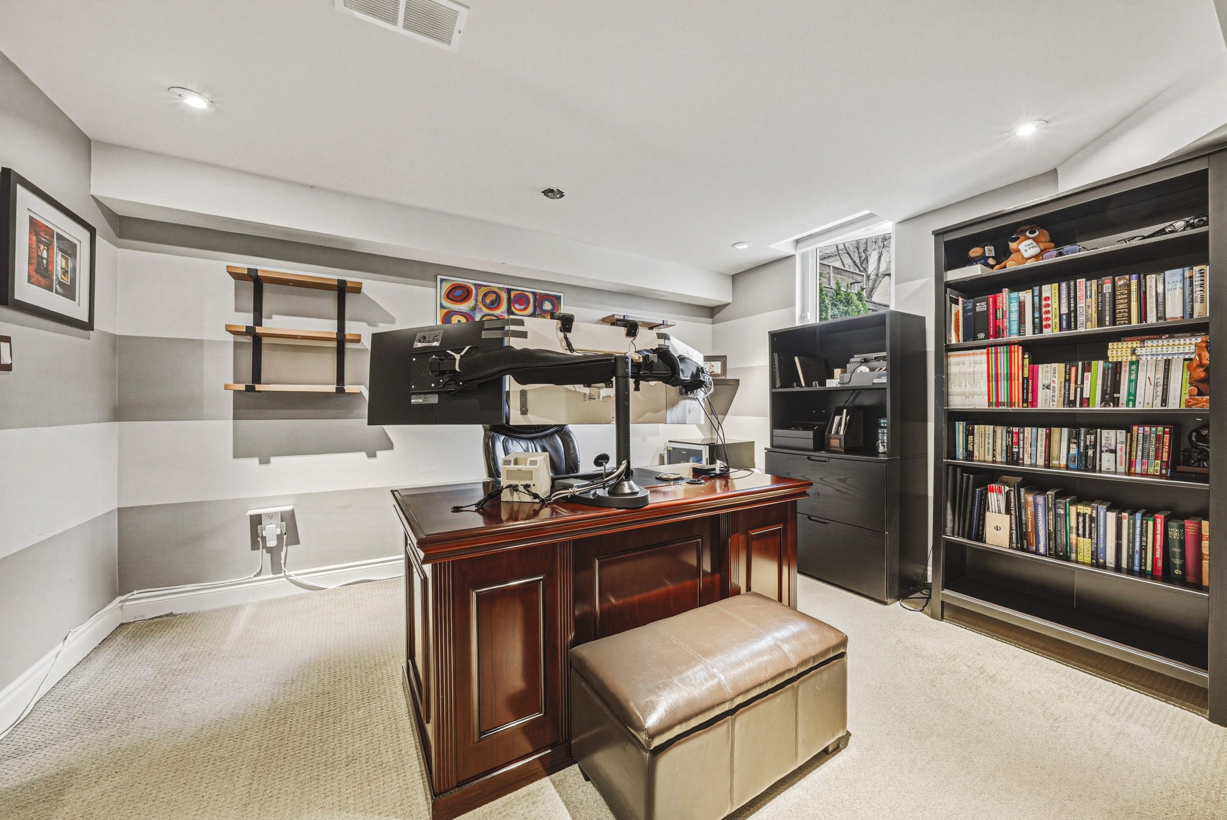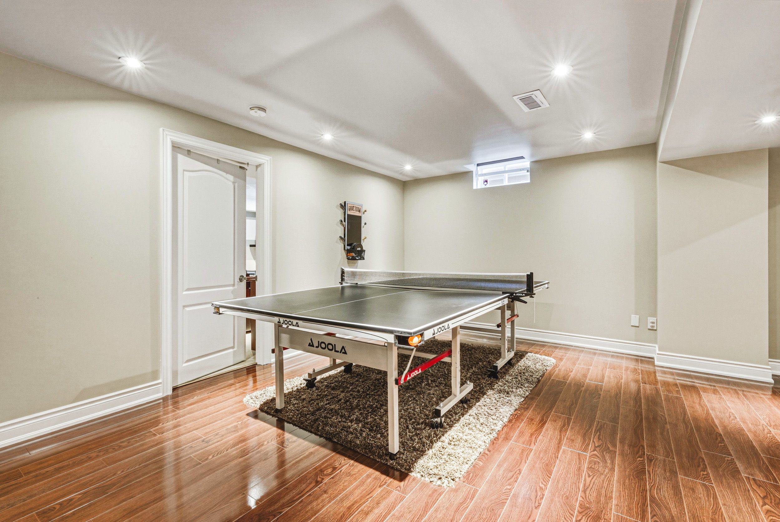 • Finished lower level includes recreation room, fifth bedroom, and extra storage.