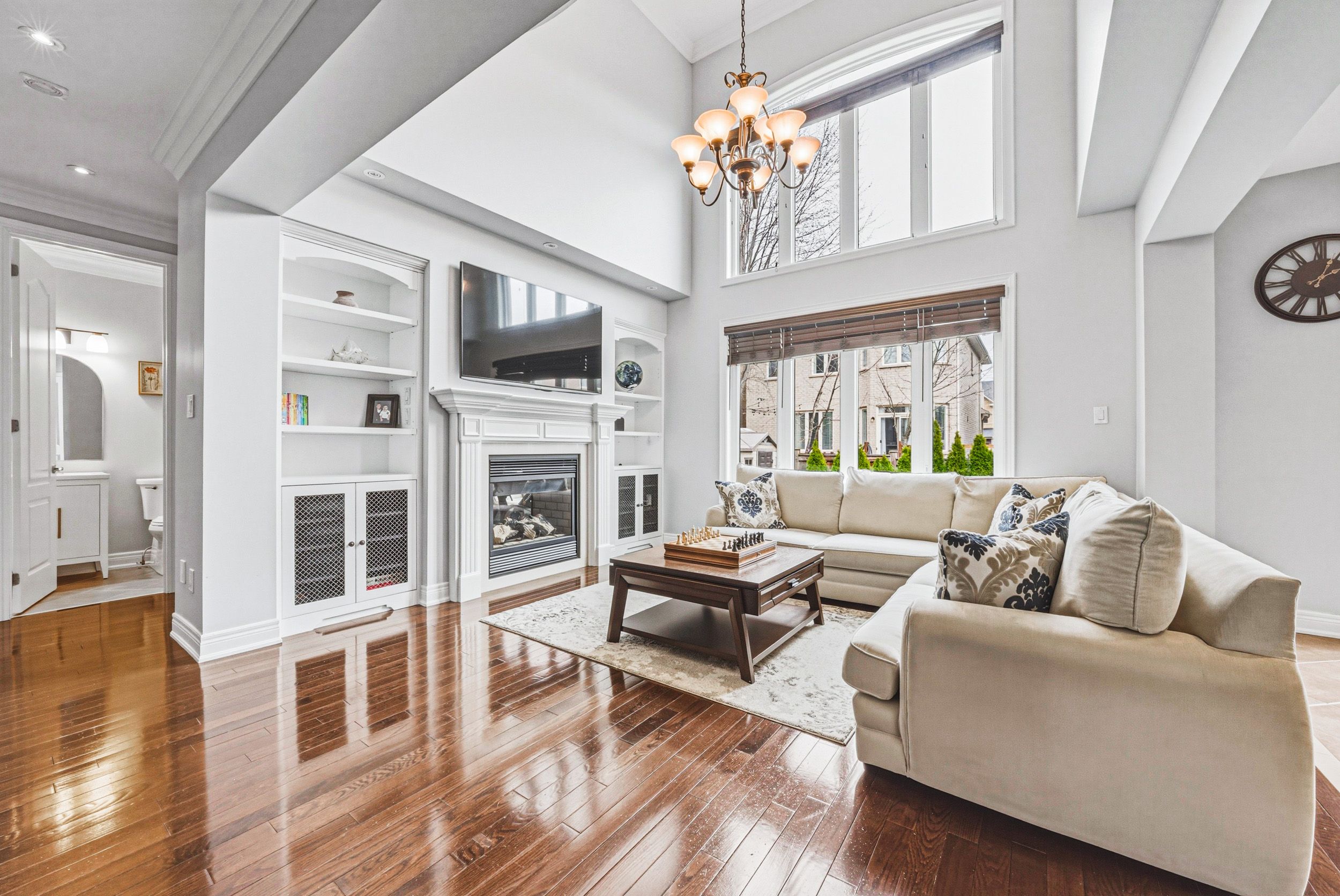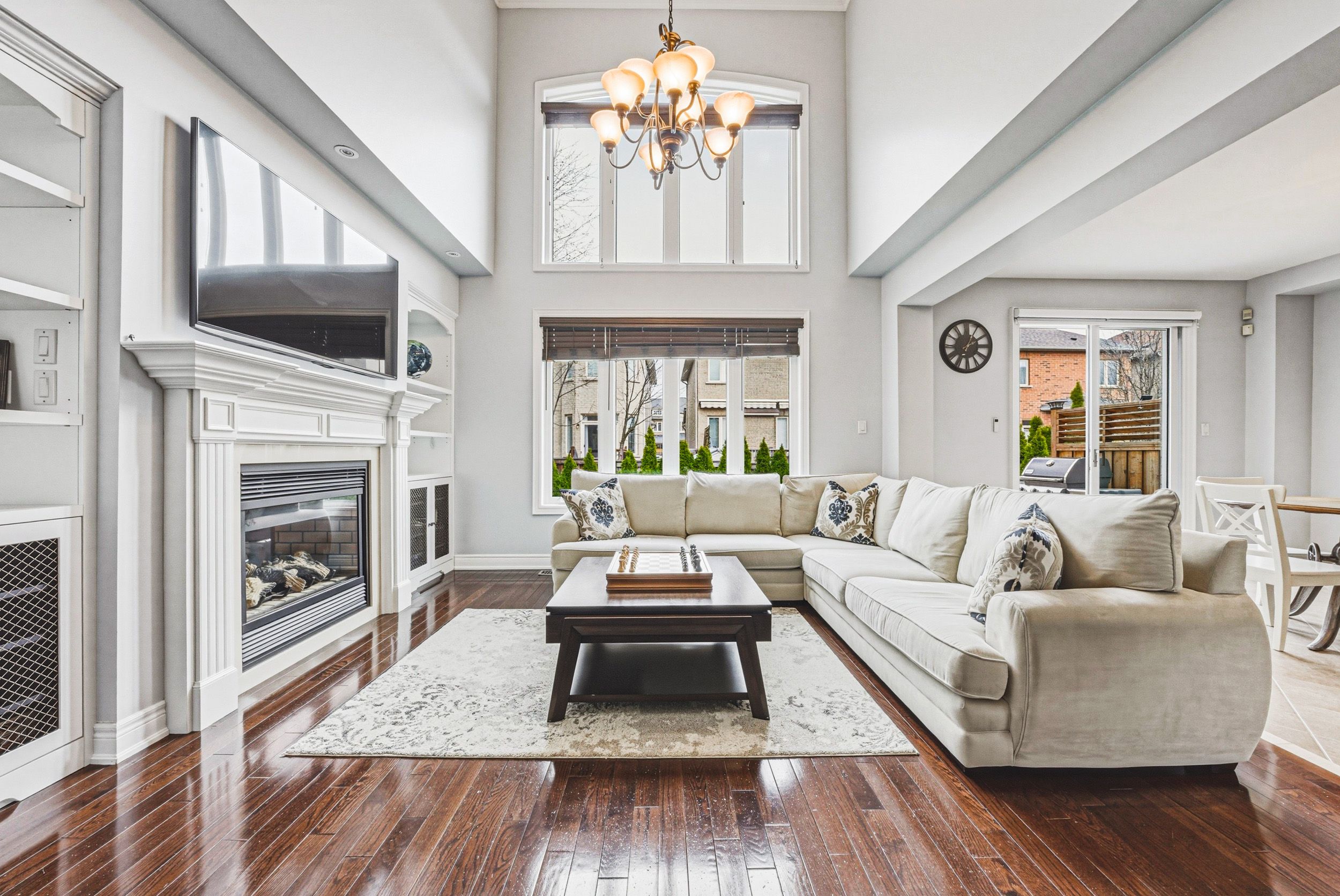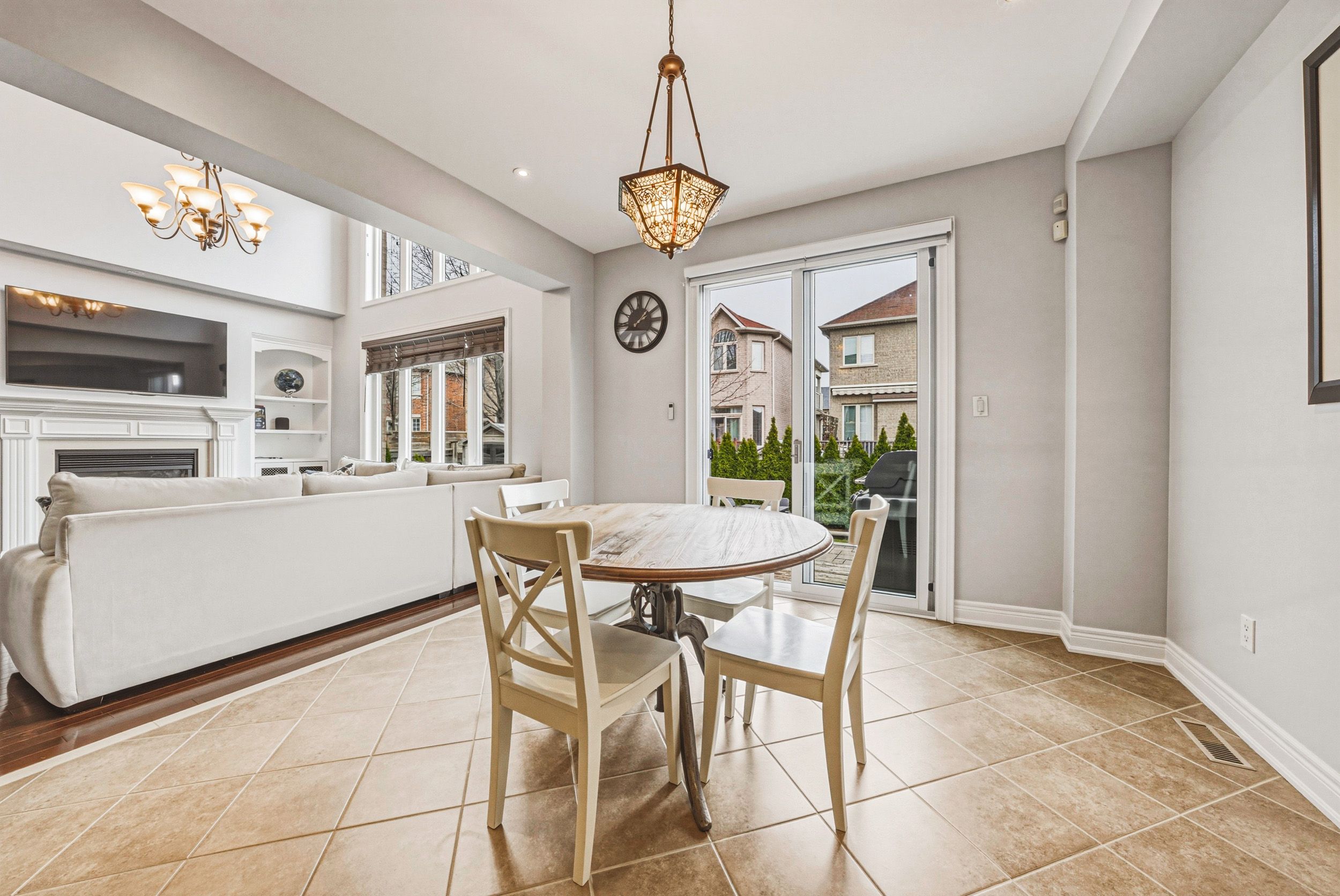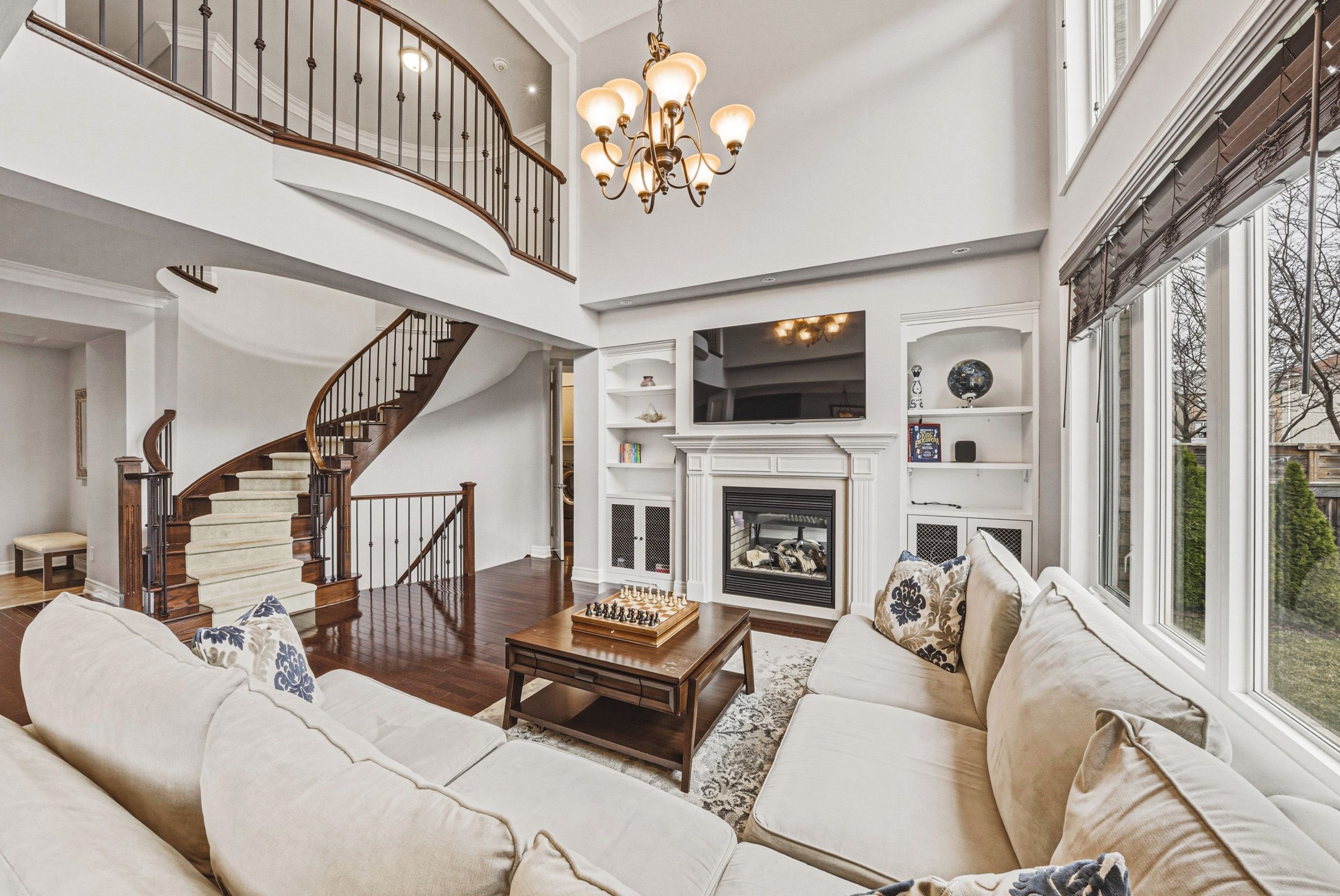 Stunning 4+1 bedroom, 4. 5 bath residence set on a mature lot in lakeshore woods. Offering approx. 3300 sq ft plus a professionally finished lower level, this exceptional home is designed for effortless entertaining and refined everyday living. Impeccably maintained, it showcases quality finishes and a thoughtfully designed floor plan. The open-concept main level features 9' ceilings and rich hardwood flooring throughout. A dramatic family room impresses with soaring two-storey ceilings, a gas fireplace and an abundance of natural light. The chef-inspired eat-in kitchen is beautifully appointed with granite counters, a generous island, solid wood cabinetry and stainless steel appliances. A formal dining room, private office/den and a well-appointed laundry room with garage access complete the main level. The second floor offers 4 spacious bedrooms and 3 full bathrooms. The primary suite is a luxurious retreat featuring a walk-in closet and a spa-like 5-piece ensuite. The finished lower level extends the living space with a large recreation/family room with gas fireplace, a fifth bedroom, separate den, 3-piece bath and ample storage. Outside, professionally landscaped grounds create stunning curb appeal, while the private, low-maintenance backyard offers a beautiful stone patio framed by mature trees and gardens-perfect for outdoor entertaining. Complete with a two-car garage and double-wide driveway for four vehicles. Ideally located close to schools, parks and all amenities.