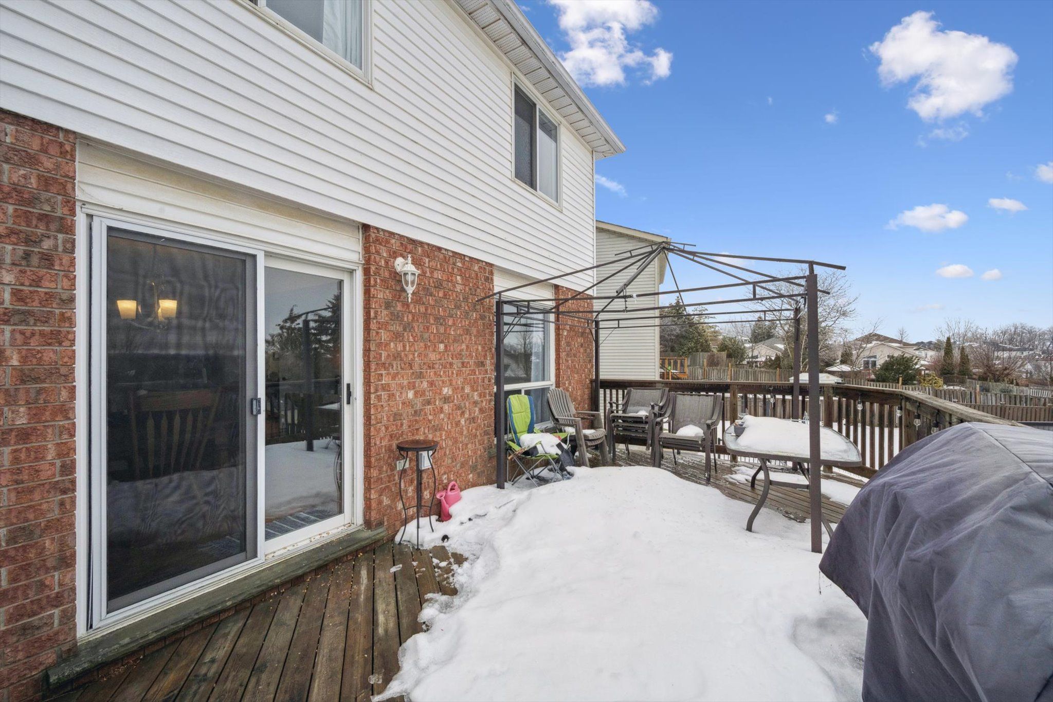 Welcome to a home that truly has it all-style, space, and a backyard you'll never want to leave. This beautifully maintained 2-storey home in kitchener is warm, bright, and completely move-in ready. Offering 3 spacious bedrooms and 2 bathrooms, plus a basement rough-in for a future bath, it provides the flexibility today's families need-with room to grow for years to come. Freshly painted throughout, every space feels clean, modern, and inviting. The finished lower level adds incredible versatility-perfect for cozy movie nights, a home office, gym, or a private guest retreat. A walkout basement enhances the flow of the home, creating seamless indoor-outdoor living. Step outside and discover what truly sets this property apart. The fully fenced, oversized backyard is a private oasis-beautifully landscaped with lush gardens that add colour, charm, and a sense of tranquility. Whether you're entertaining, relaxing, or enjoying quiet evenings, this space delivers. Cool off in the large above-ground pool on warm summer days, then unwind while taking in stunning sunset views. Located just minutes from the scenic trails along the grand river and close to all amenities, this home offers the perfect balance of nature and convenience. Major updates are already taken care of: furnace (2024), a/c (2024), high-efficiency heat pump, and garage door with opener (2024). A move-in ready home that offers not just a place to live-but a lifestyle you'll love.