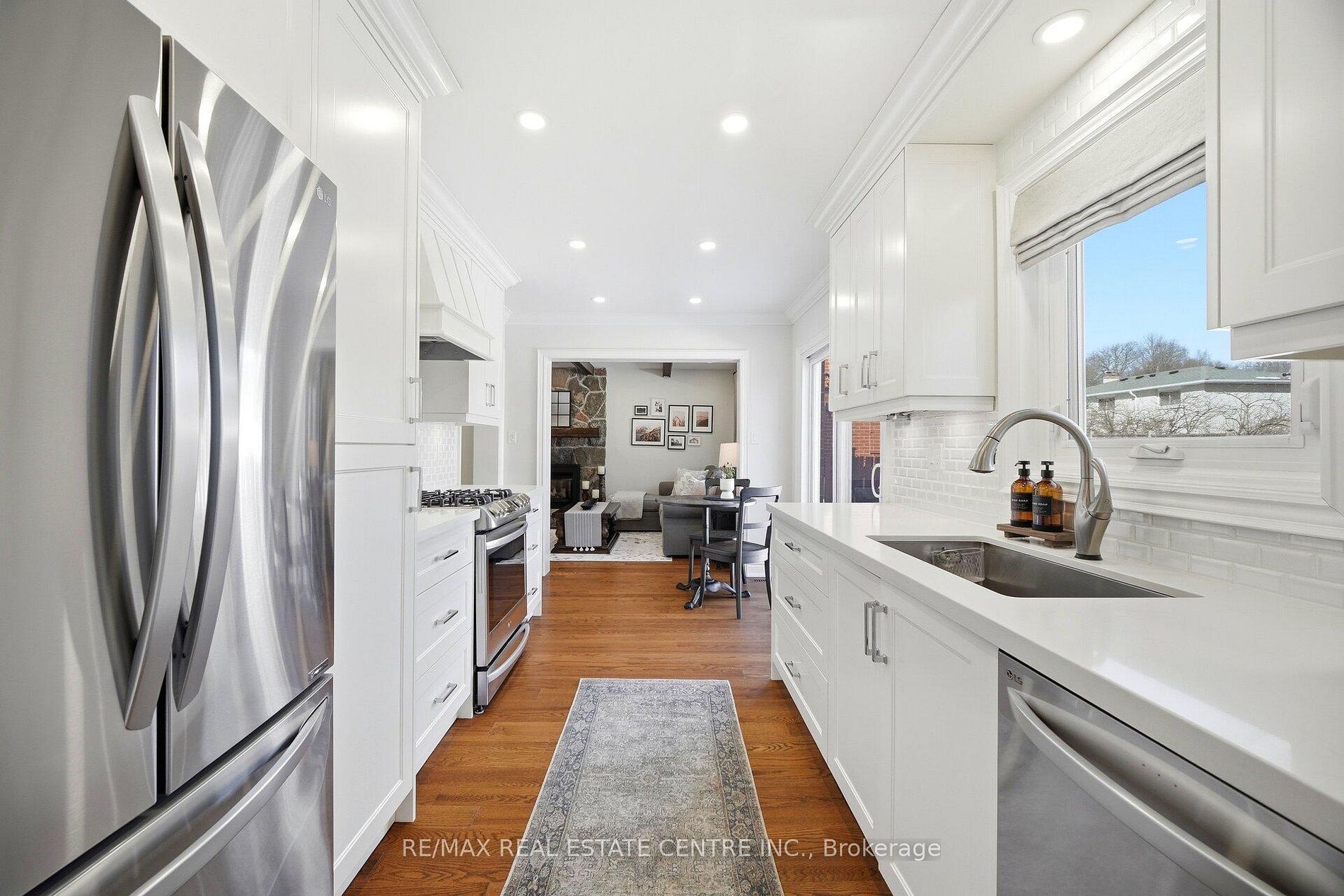 Nestled on a quiet street in the prestigious community known as rockwood village, 4253 marblethorne crt. Is a must see. One of mississauga's most desirable east-end neighbourhoods this beautifully re-imagined 4 bedroom/detached home showcases a complete, top-to-bottom renovation with exceptional attention to detail. Every element of the home has been thoughtfully updated to offer refined style & modern comfort. The designer kitchen features quartz counter-tops, s/s appliances, seamlessly opening to the inviting family room with rich hardwood floors, a striking stone gas fireplace, an elegant beamed ceiling, & custom built cabinetry. In conjunction with a bright and spacious living/dining rm combination, the main floor creates a warm yet sophisticated atmosphere where quality meets functionality. The second floor offers an elegant & inviting retreat, featuring 4 beautifully appointed bedrooms designed for comfort and relaxation. Each room provides generous space & natural light, creating a warm and cozy atmosphere throughout. The serene primary suite serves as a private haven, complete with a stunning three-piece en-suite & w/i closet. The finished basement offers a versatile extension of the home, featuring a spacious rec room along with a dedicated playroom & 2-pc en-suite. With ample room & flexible layout options, there is obvious potential to create a fifth bedroom, making this lower level both practical and full of possibility. Outdoors, a private backyard sanctuary awaits, framed by mature trees and professional landscaping. This family friendly community is known for its great parks, the etobicoke creek trail system, top-rated schools, everyday amenities just moments away, along with a short drive to hwy 401/403/427/410 & the dixie go. If you are looking for a home, where neighbours connect, children thrive, & families grow... 4253 marblethorne crt. May be the home for you.