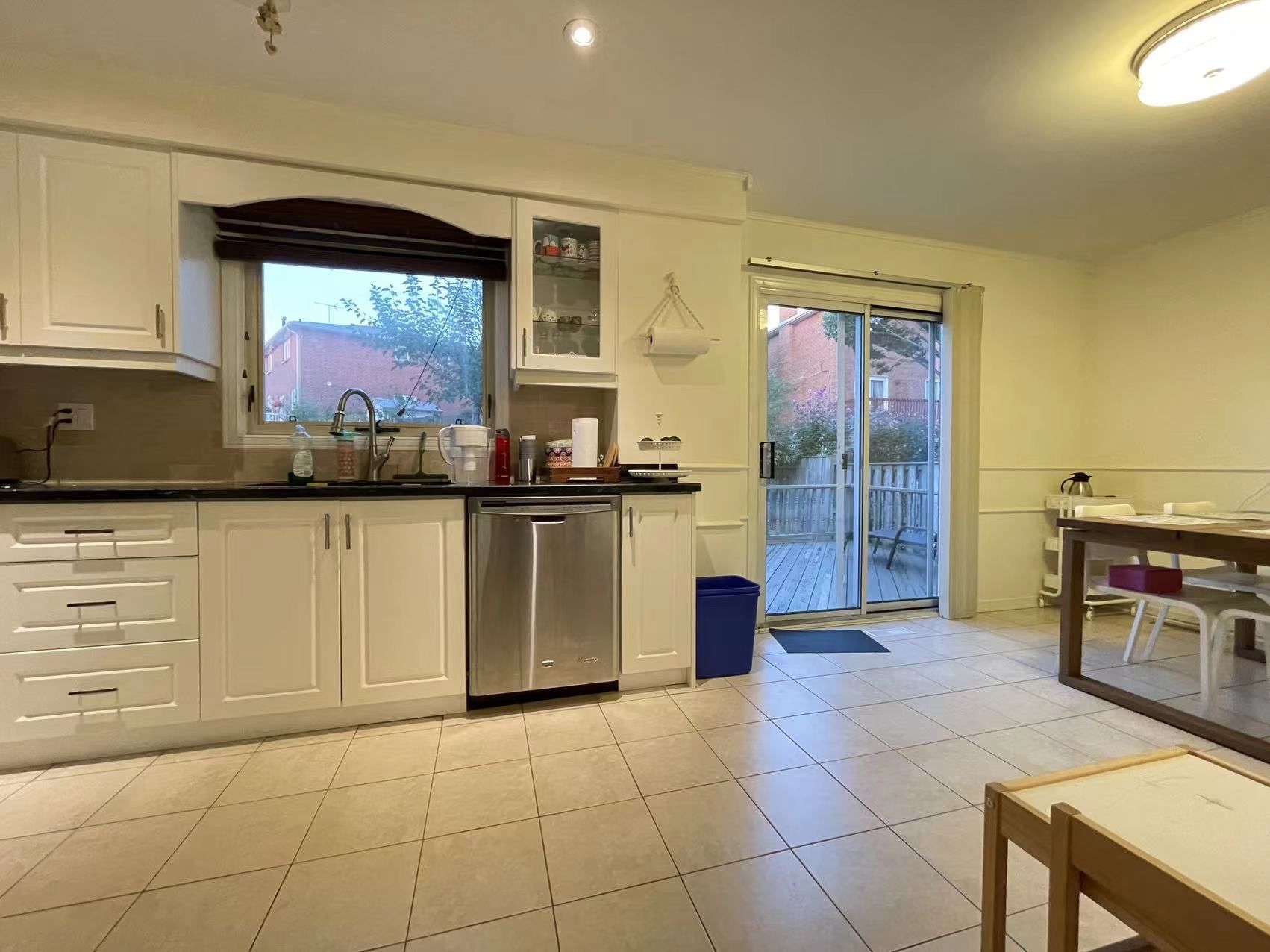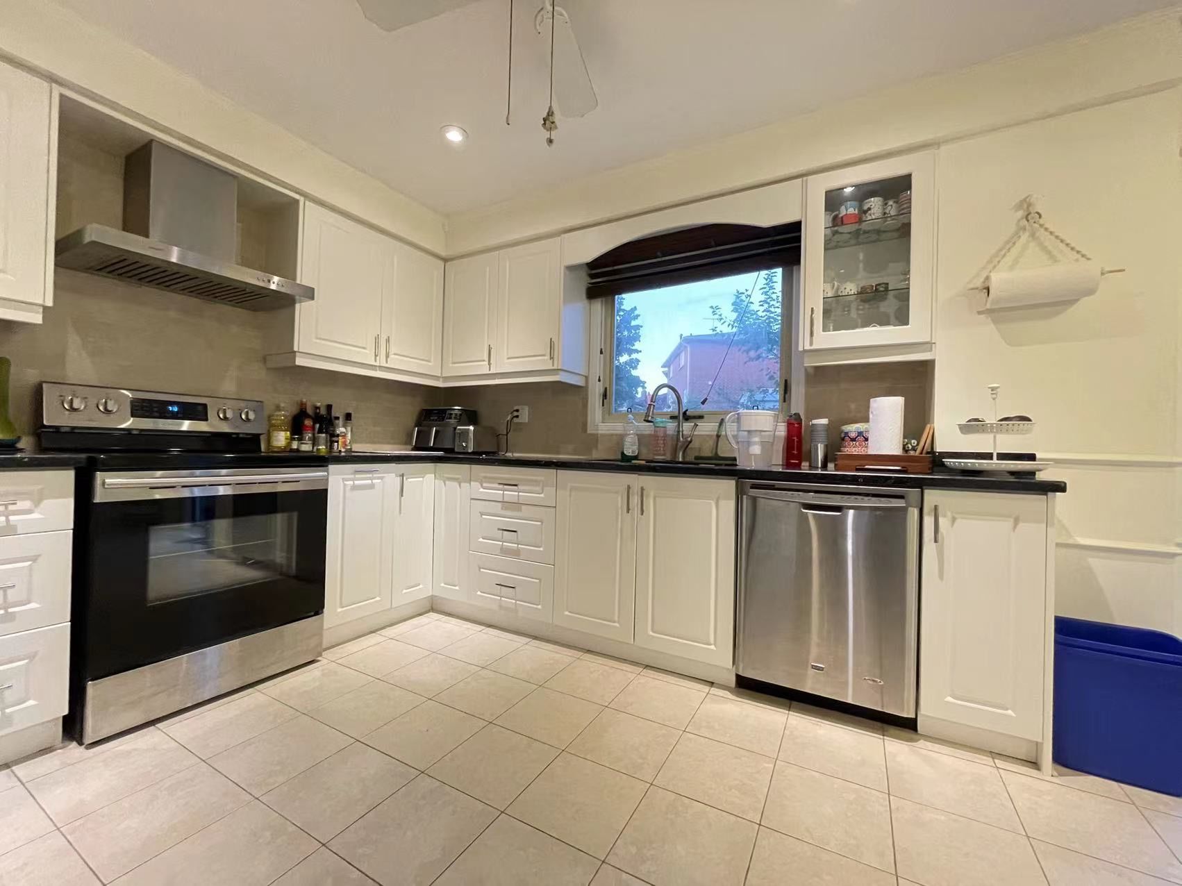 • Modern kitchen features granite countertops for added style.