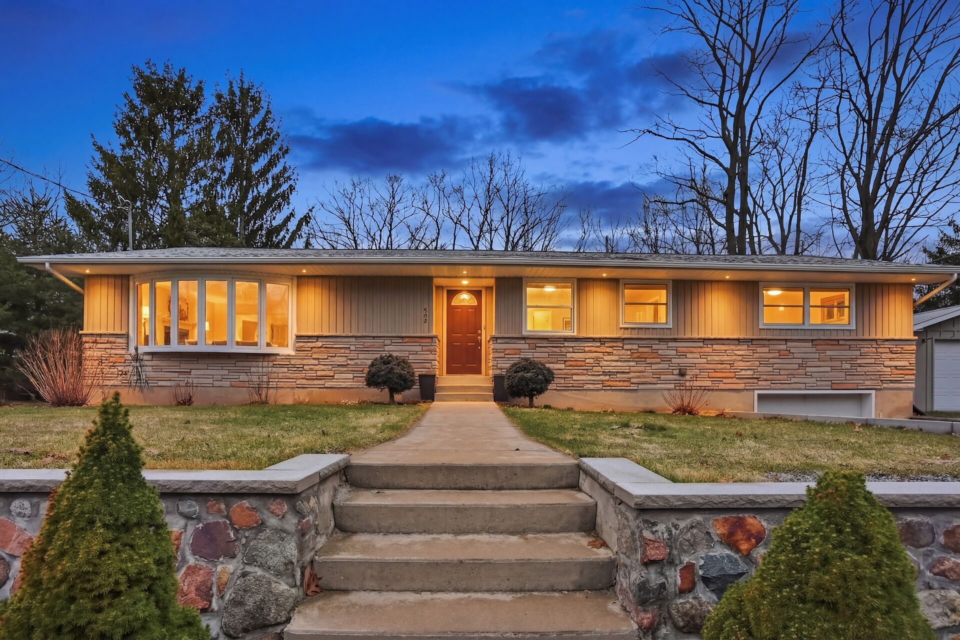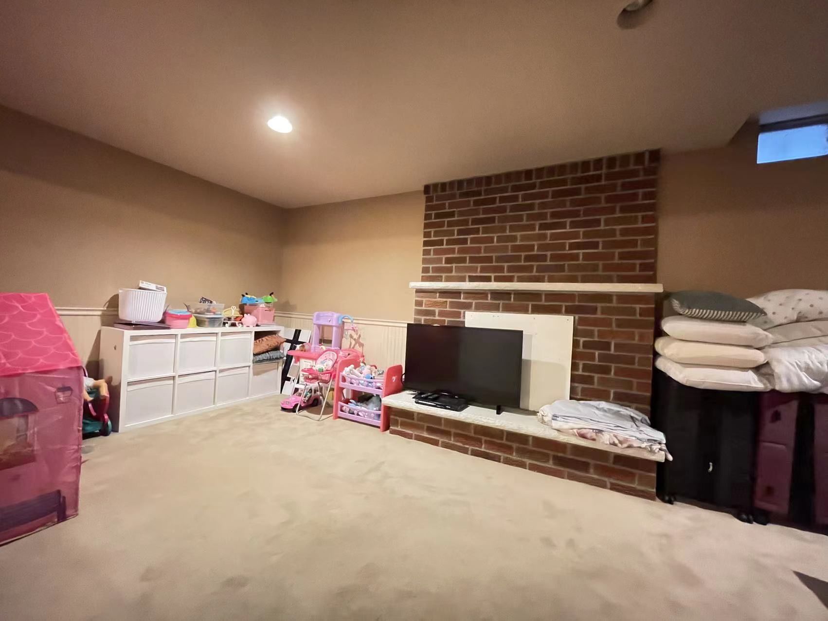 • Includes basement for additional living space or storage.