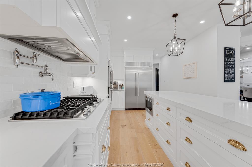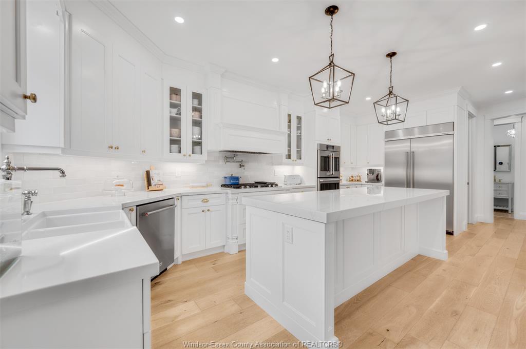 • Gourmet kitchen equipped with high-end stainless steel appliances and quartz counters.