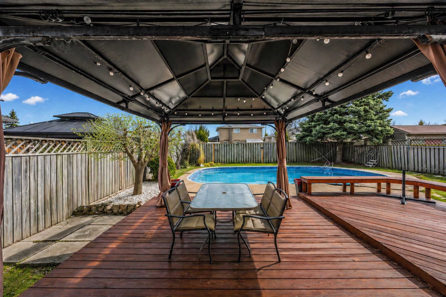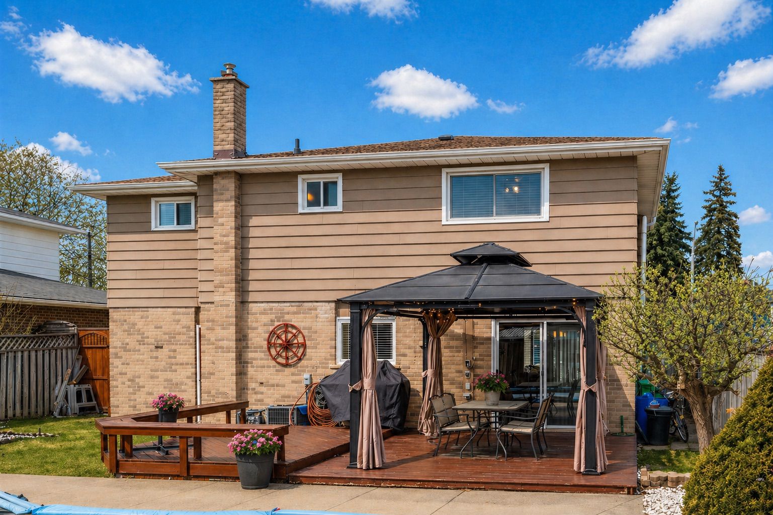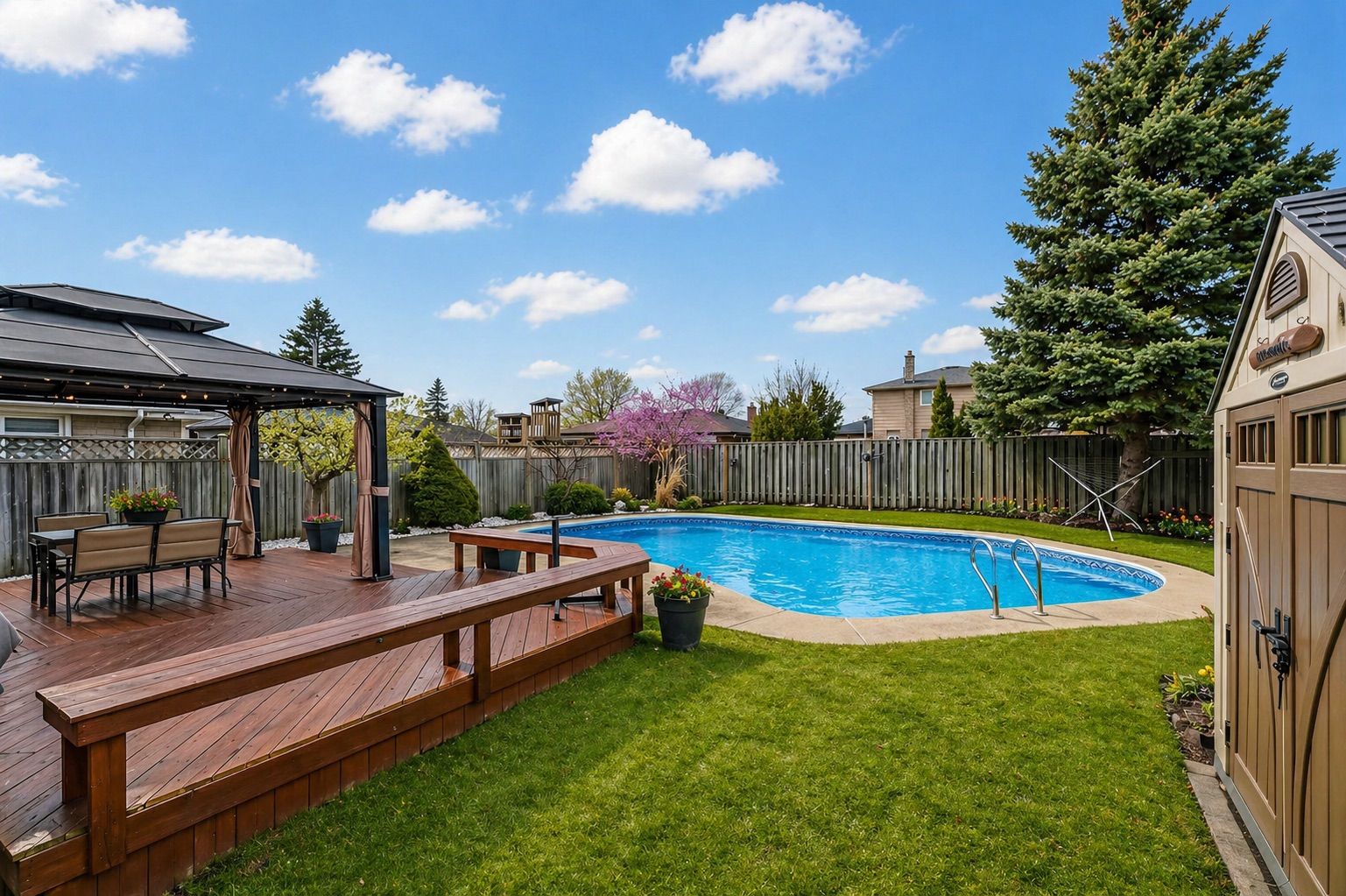 • Large south-facing backyard with in-ground pool, ideal for summer fun.