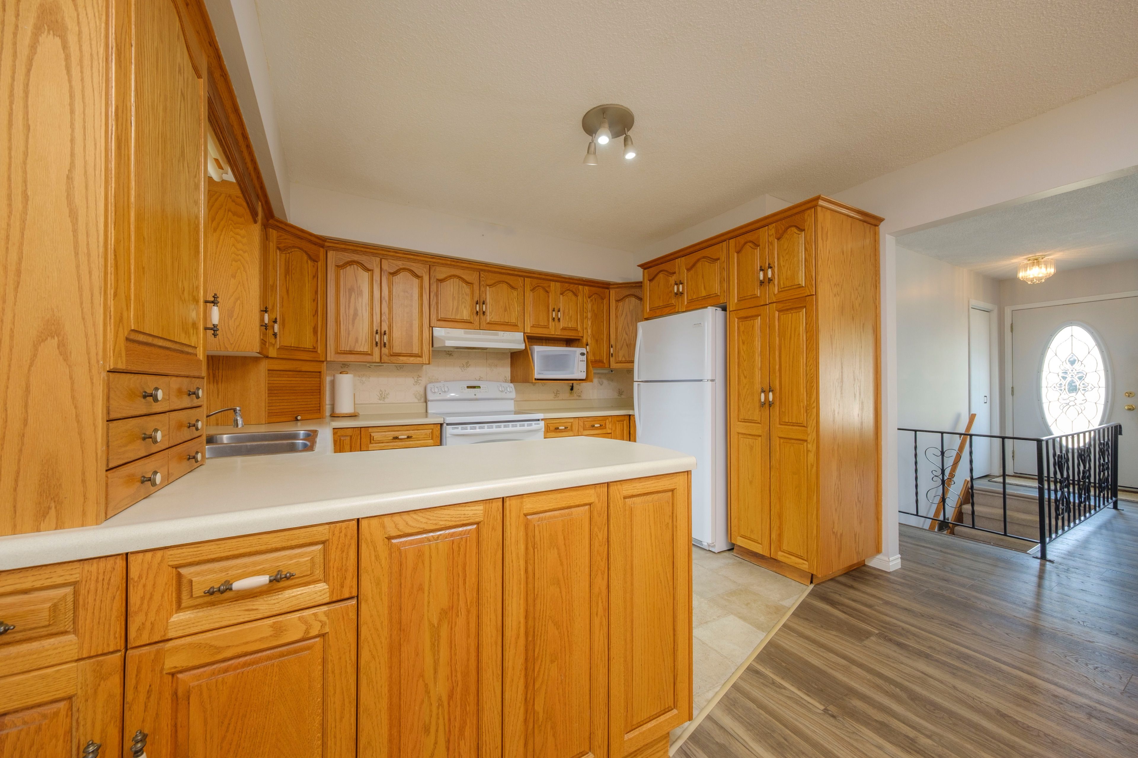 Charming 4-bedroom bungalow with in-law potential. Welcome to this clean and well-maintained 4-bedroom bungalow, perfectly located in a desirable neighbourhood close to parks, amenities, and just steps from the local public school an ideal spot for families. Inside, the home offers a bright & functional, main floor featuring newer appliances, air conditioning, and large windows that bring in plenty of natural light. You'll love the sunroom overlooking the well-kept back yard, perfect place to enjoy the morning coffee or casual entertaining. The lower level boasts a good sized recreation room complete with a cozy fireplace, making it a perfect spot for gatherings, movie nights, or a kids play area. Plus, with side access to the basement, theres excellent potential to create a second unit or in-law suite for extended family or rental income. Additional highlights include an attached garage, a bonus workshop for projects or extra storage, and excellent curb appeal that enhances the property's warm and welcoming vibe . A fantastic opportunity for homeowners and investors alike this home checks all the boxes!