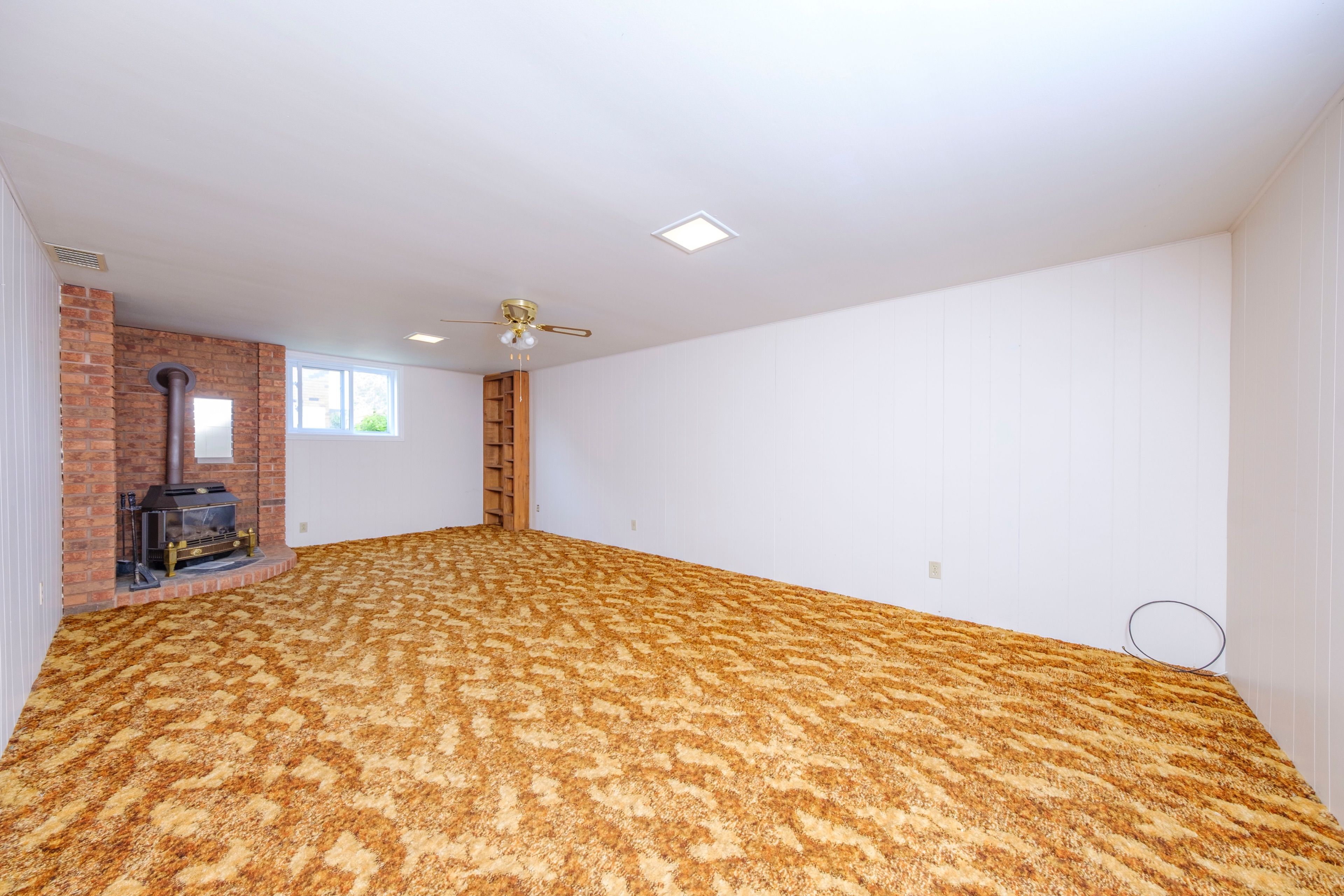 • Cozy lower-level recreation room with a fireplace for gatherings.
