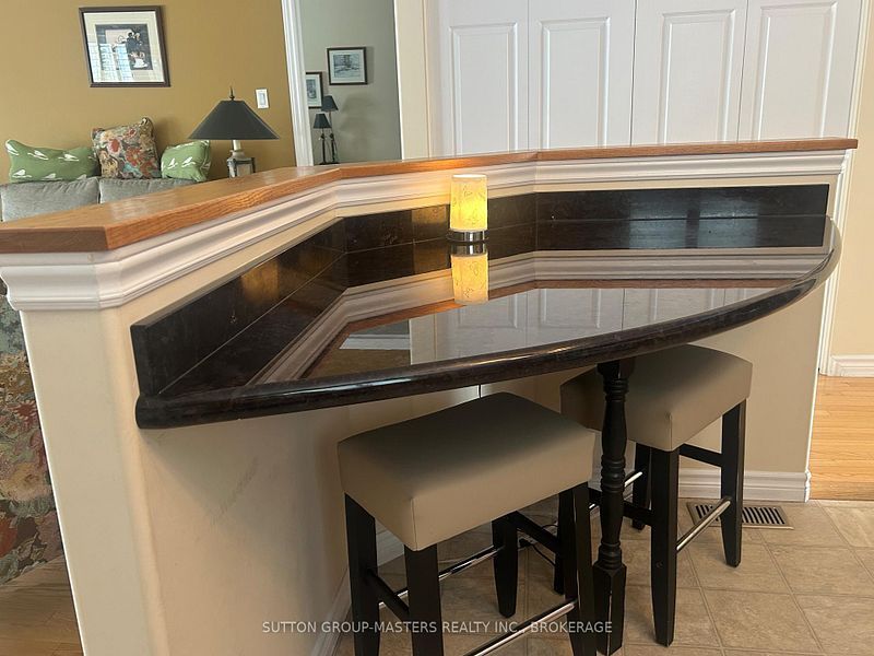 • Granite kitchen countertops with a breakfast island for casual dining.