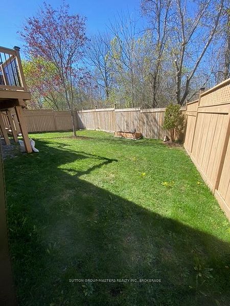 • Fully fenced backyard with raised deck, perfect for outdoor enjoyment.