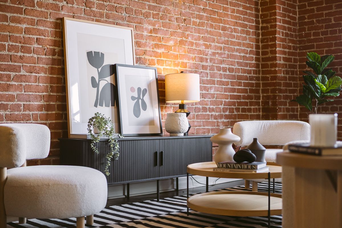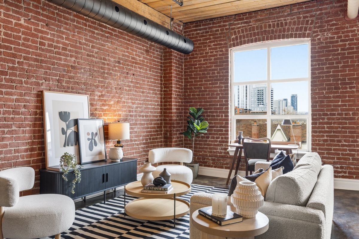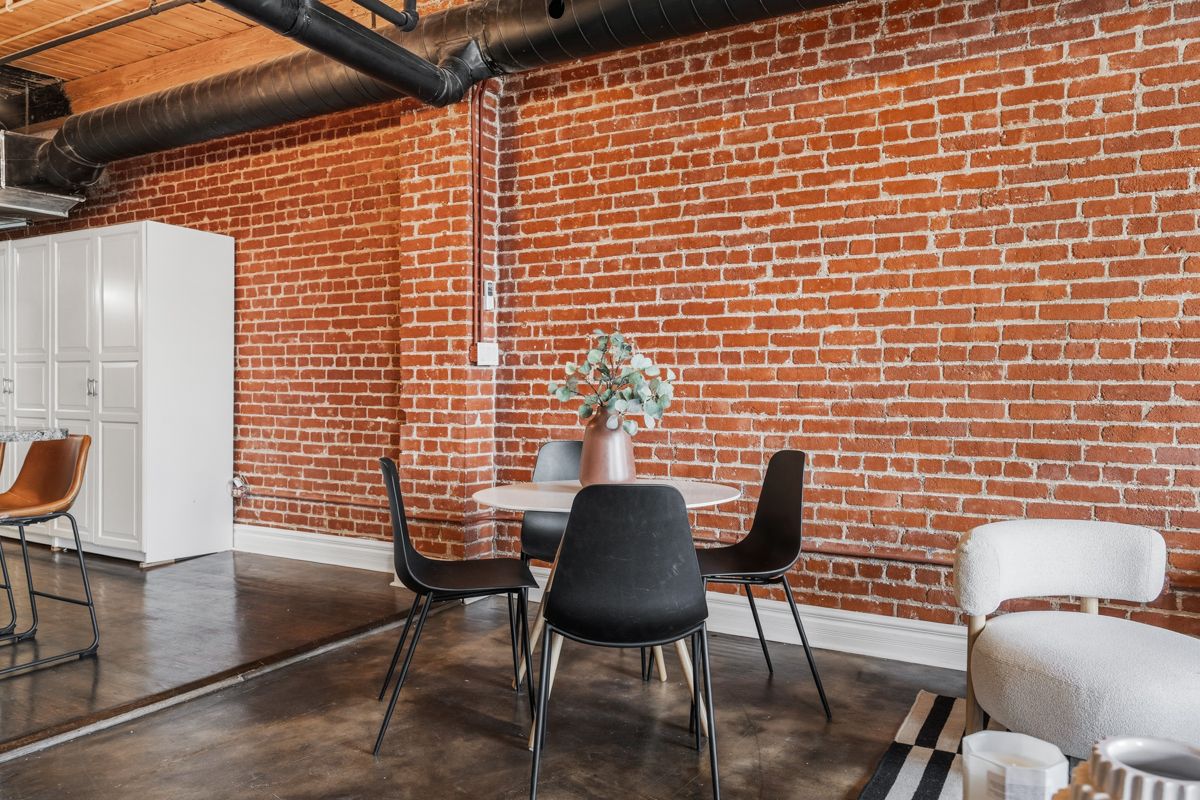 • Unique loft showcasing industrial design with polished concrete and exposed brick.