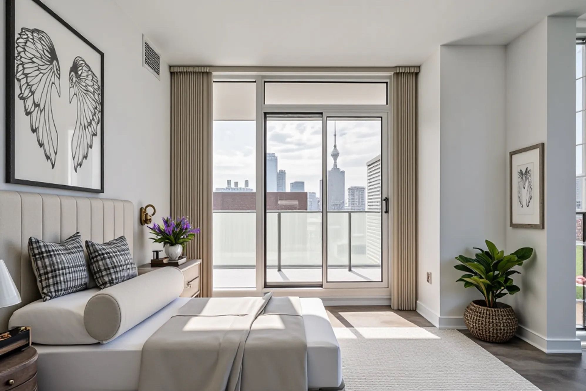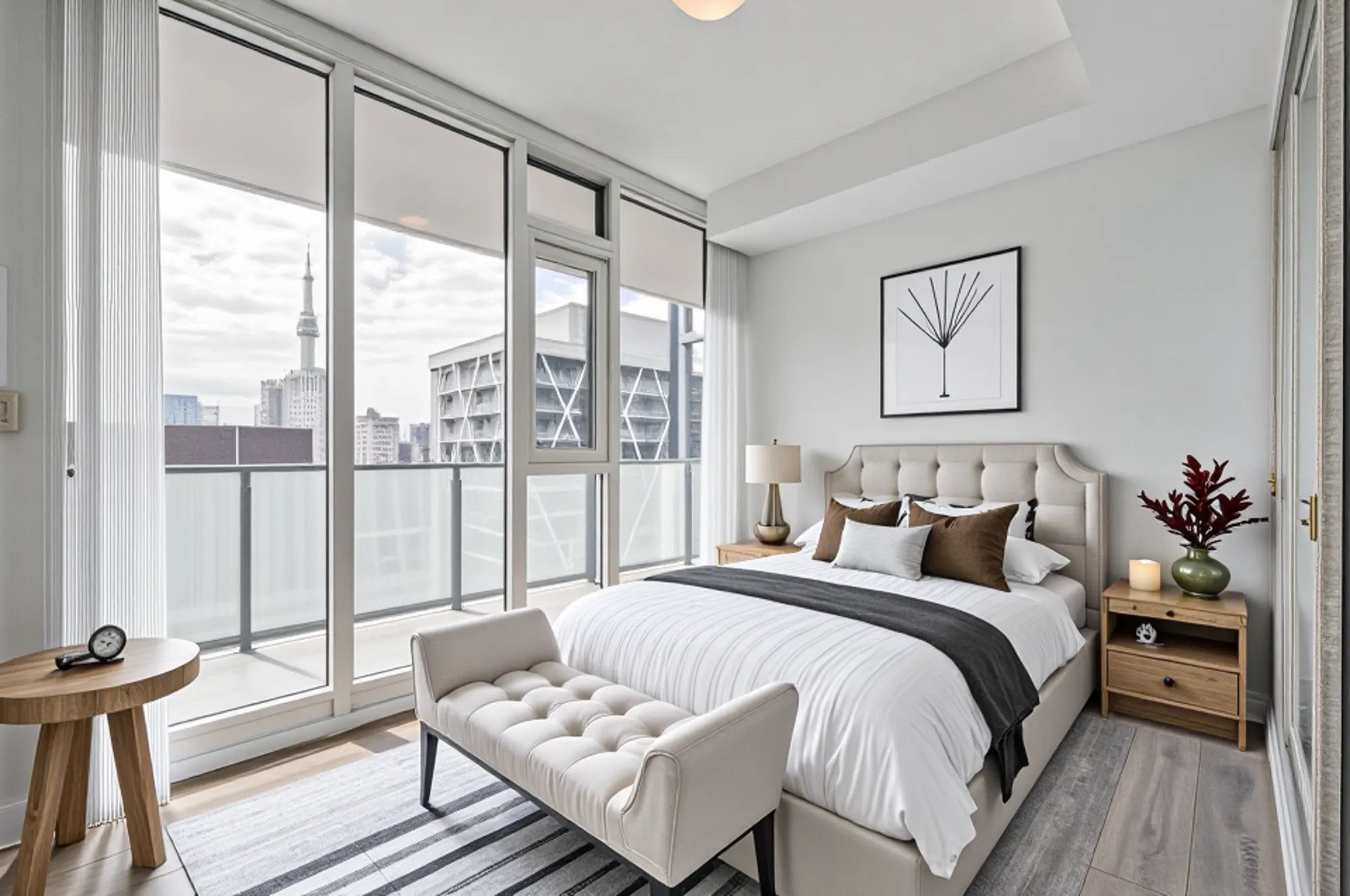 • Spacious corner suite with 2 bedrooms and high ceilings for an open feel.