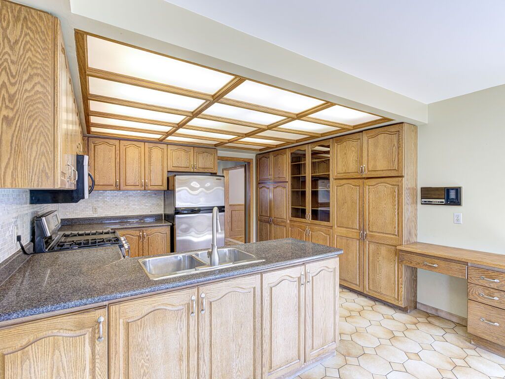• Large kitchen with a deck for outdoor dining and relaxation.